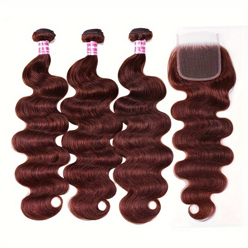 Nadula 12A Reddish Brown Body Wave Human Hair Weave 3 Bundles with 4x4 lace closure, Brazilian Remy Hair Ombre Balayage Human Hair Extension FB30 Highlight Color