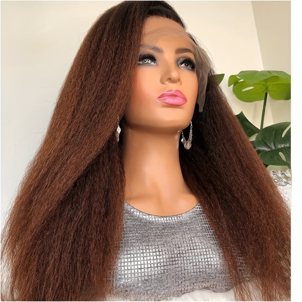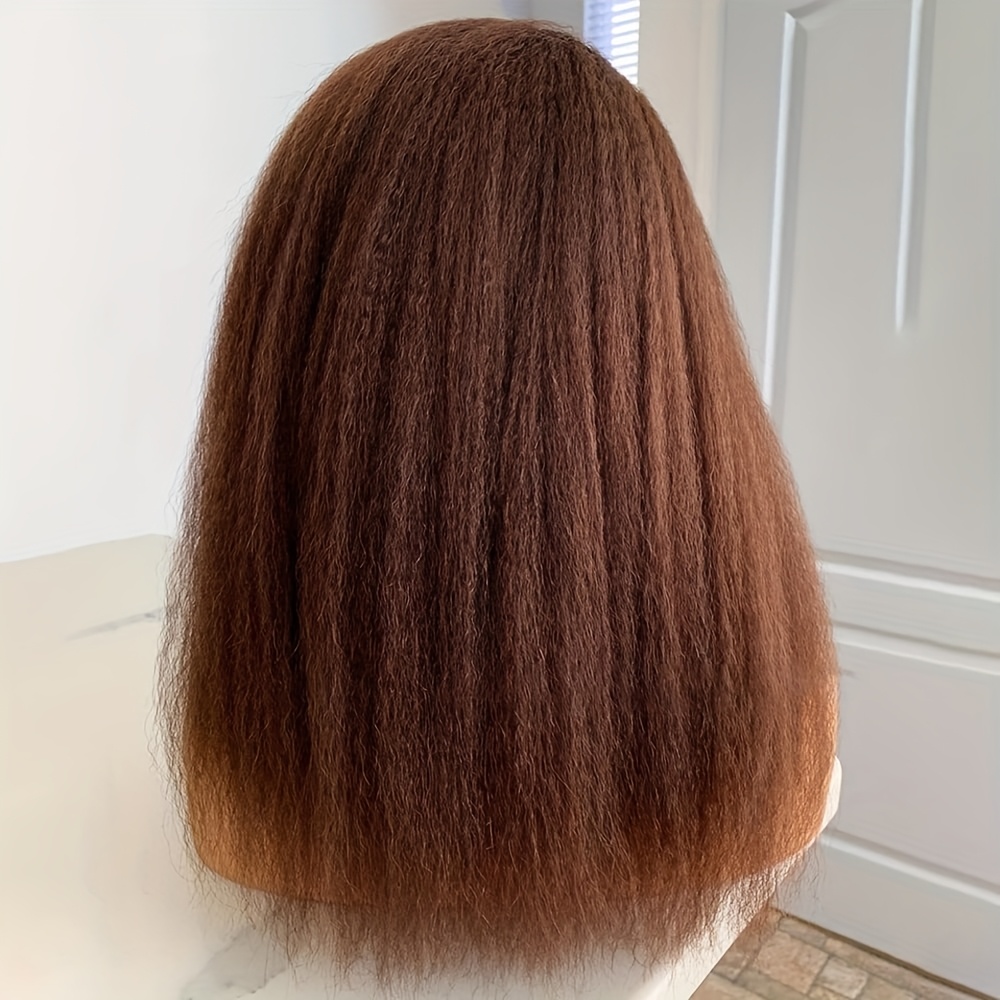 Reddish Brown Italian Yaki Straight Human Hair Wig for - 13x6 Lace Front with Pre-Plucked Baby Hair, 180% Density 32 Inch Natural Look, Elegant Style for All Ethnicities, Versatile Hairpiece | Sleek Hairpiece