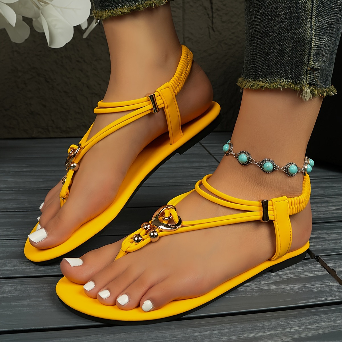Women's Summer Flat Sandals - Boho Style Buckle Decor Elastic Strap Slip On Shoes - Casual Summer Beach Sandals - For Women - Suitable for Summer, Beach, Vacation - Perfect Gift for Fashionable Women