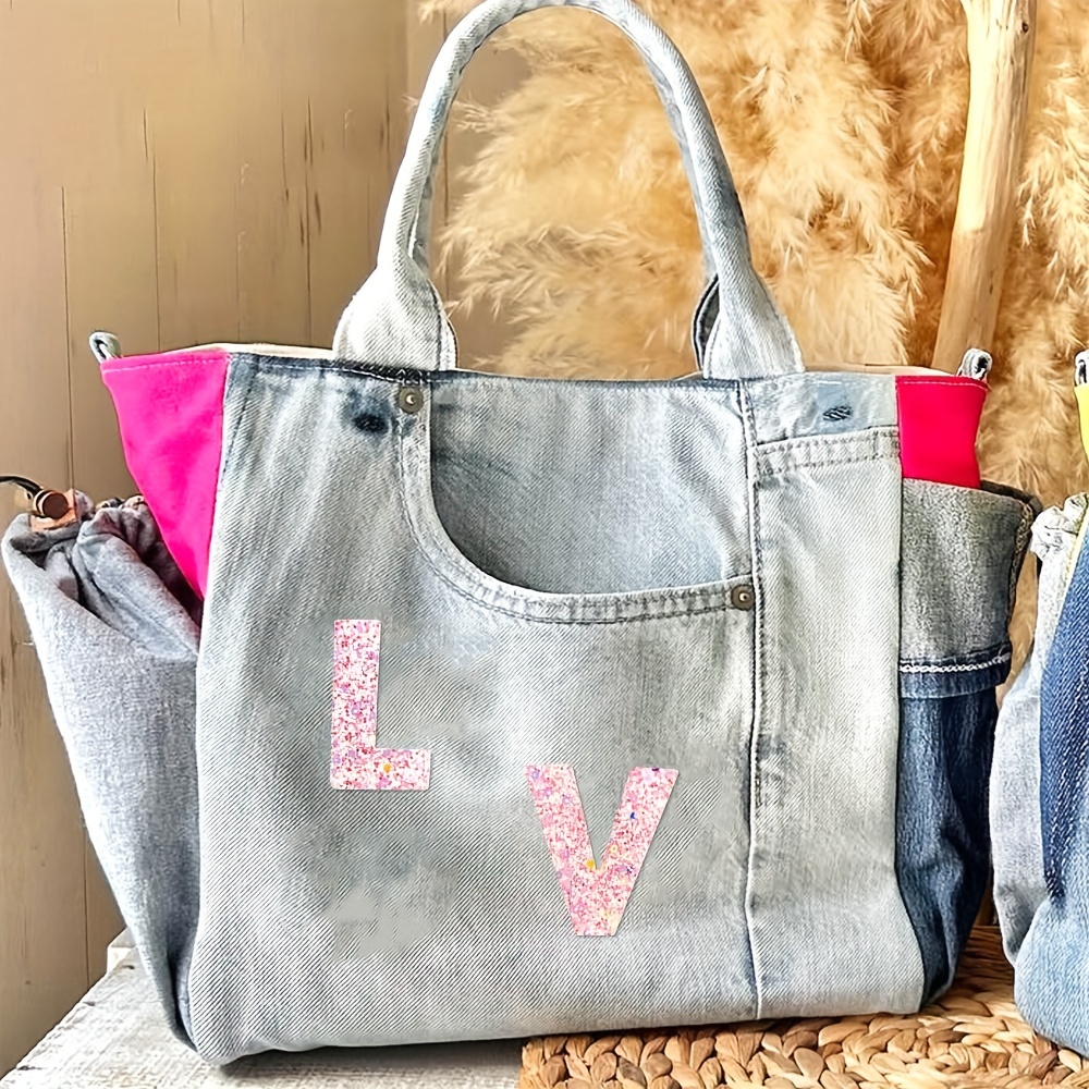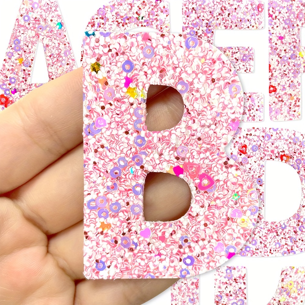 26pcs Pink & Purple Sequin Alphabet Iron-On Patches with Floral Designs – Glittery DIY Decorative Letters for Jeans, Jackets, Bags, Hats, and Clothing Backpacks