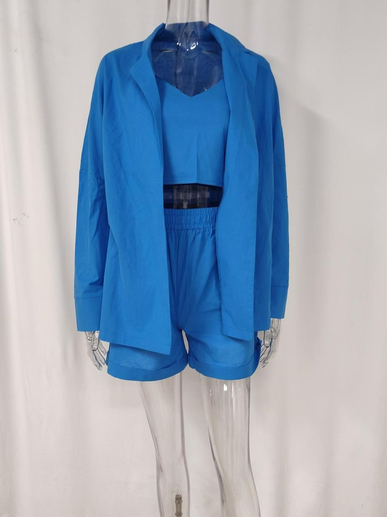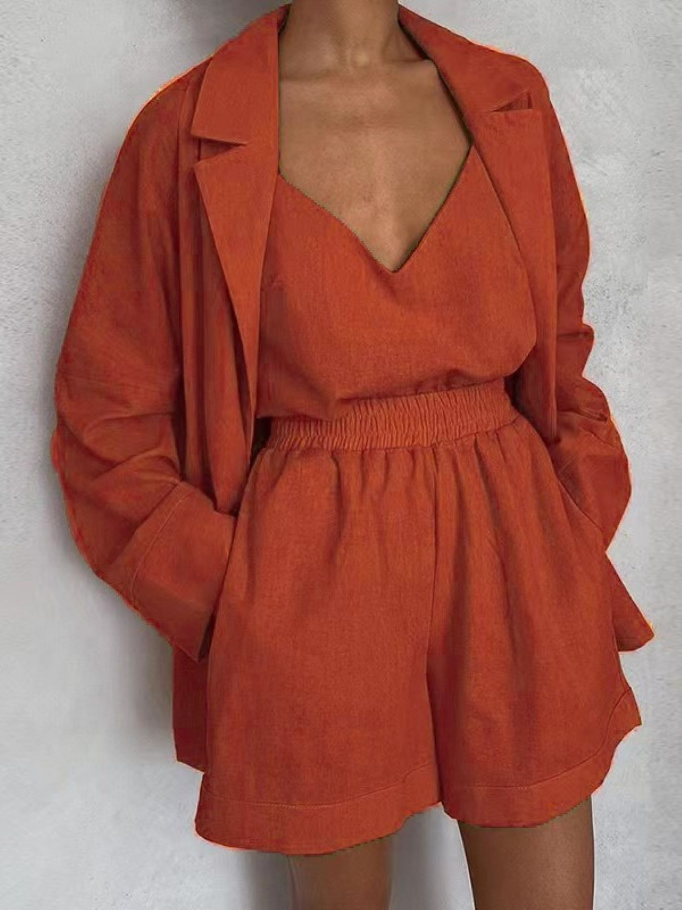 Women's Spring Summer Elegant Vest Blazer and Shorts 3-Piece Set for Casual Office Wear