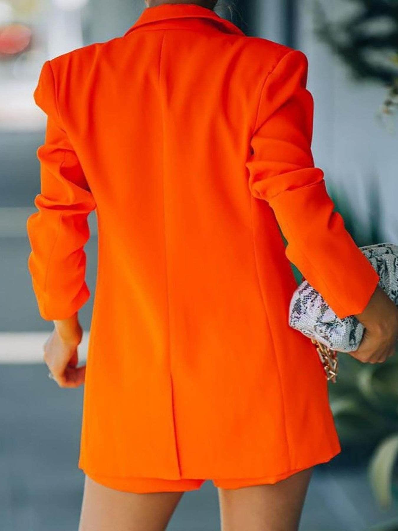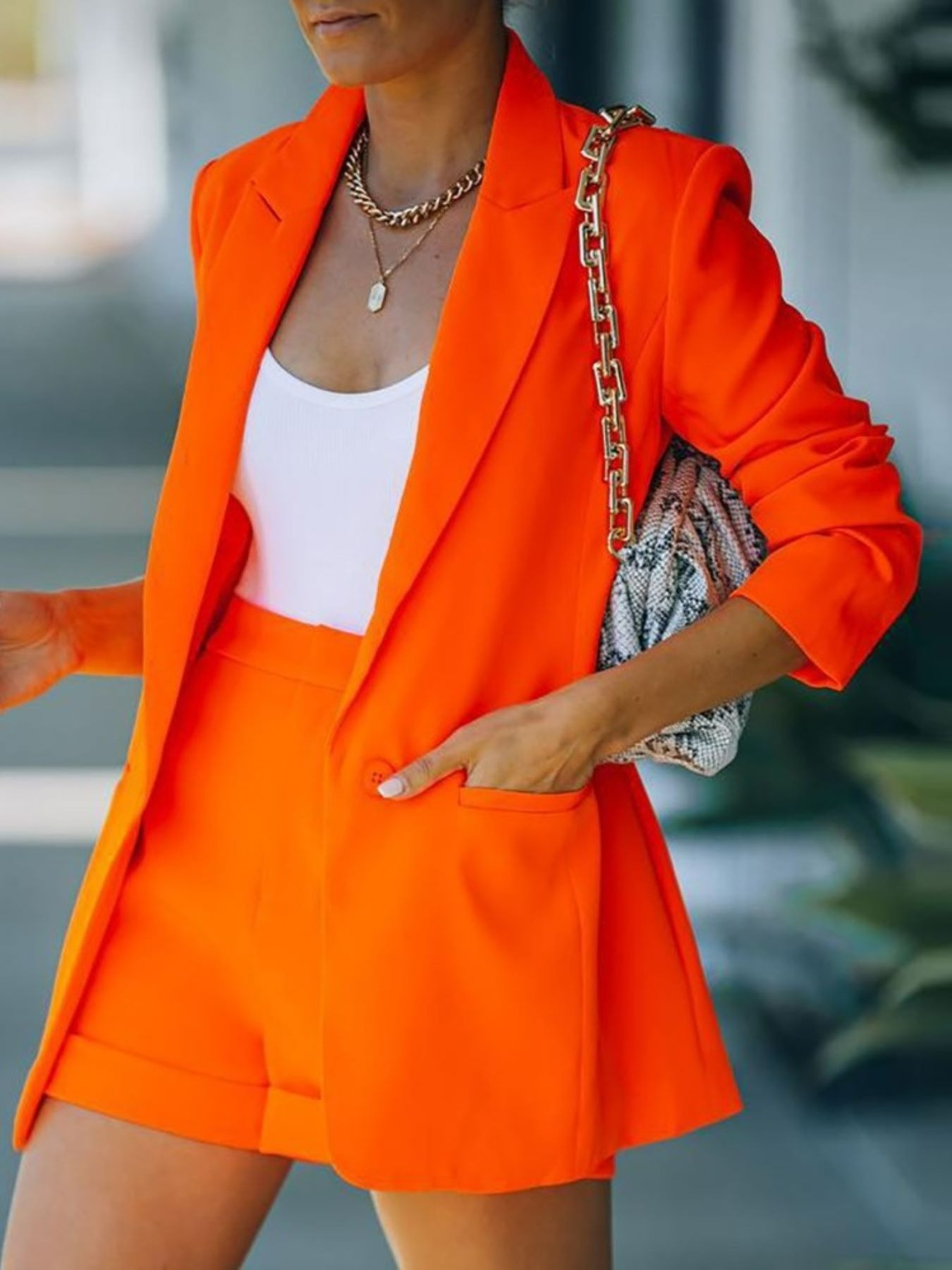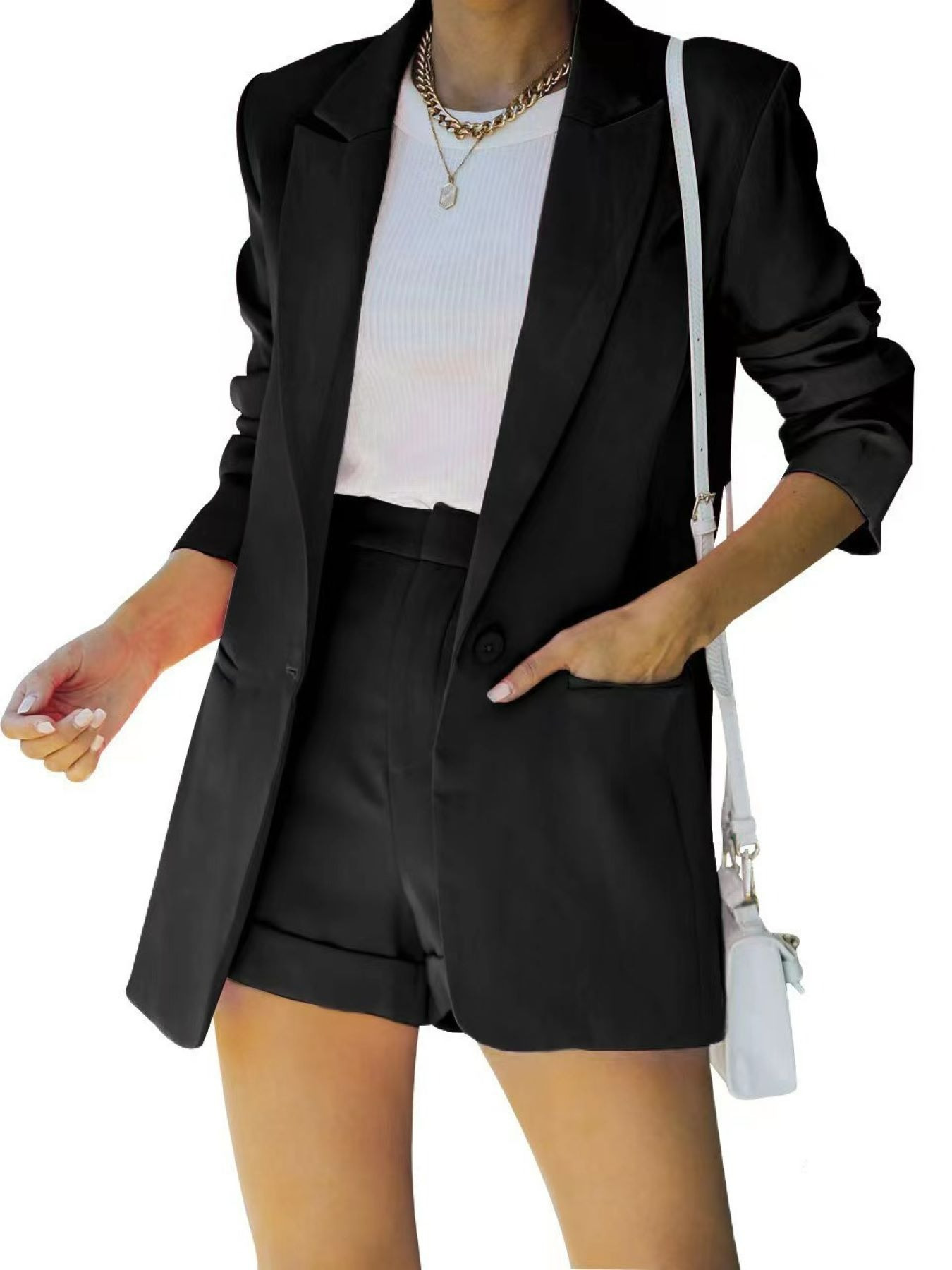 Women's Stylish Two-Piece Blazer Set - Short Sleeve Top & Shorts Suit with Turn-Down Collar, Elegant & Casual
