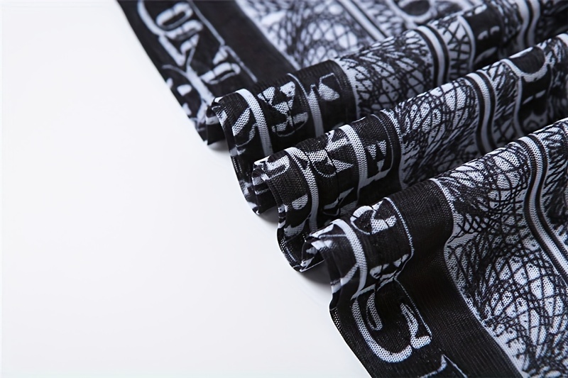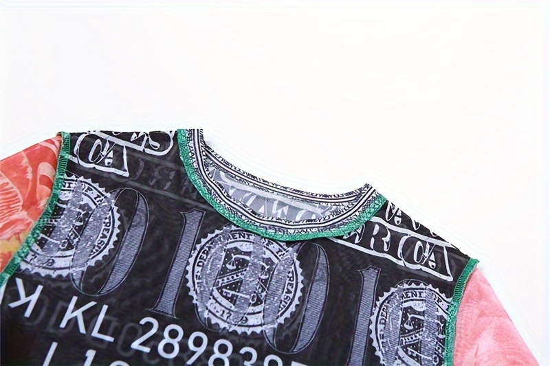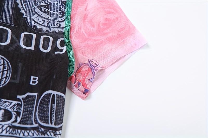 Allover Print Crew Neck T-Shirt, Y2K Short Sleeve Crop T-Shirt For Spring & Summer, Women's Clothing