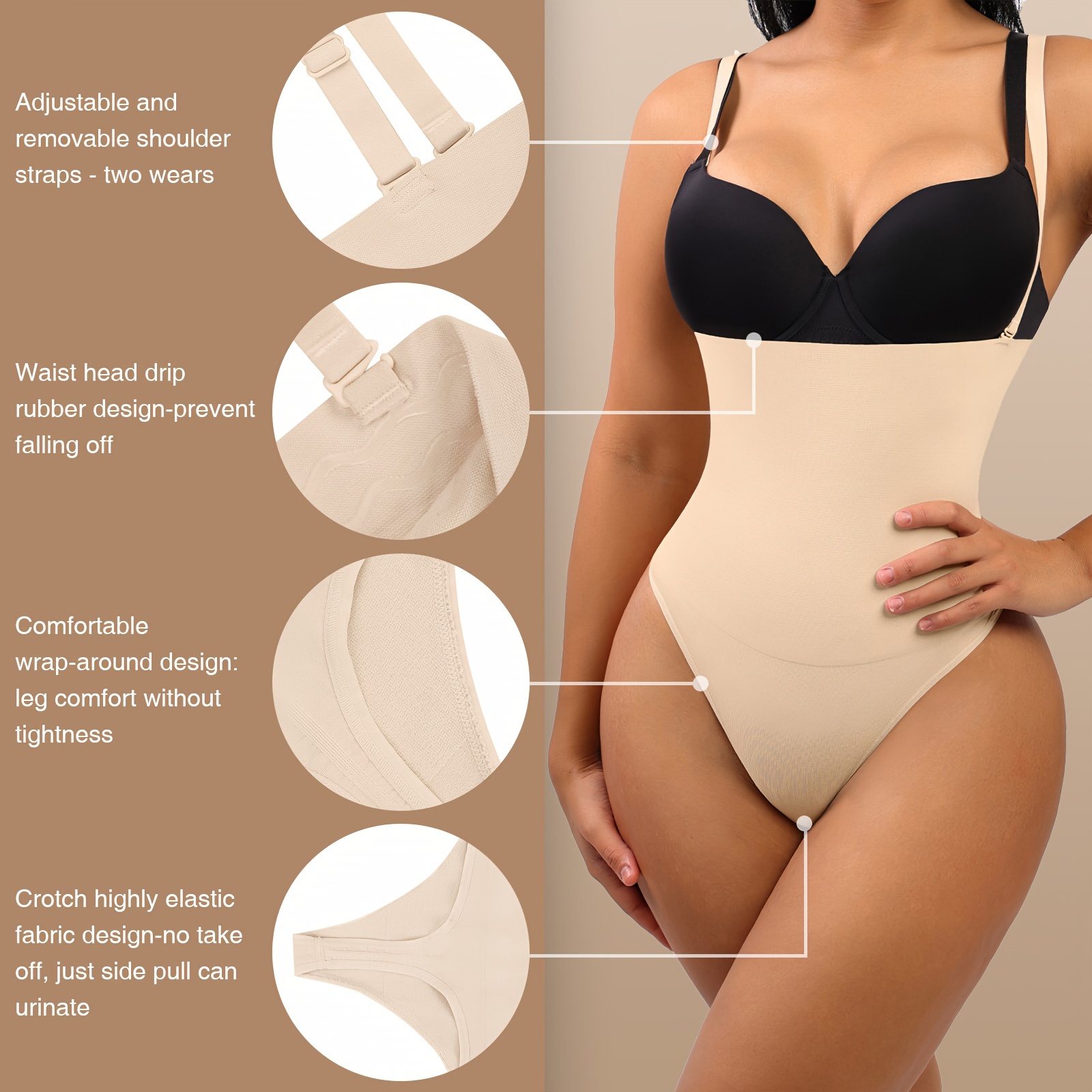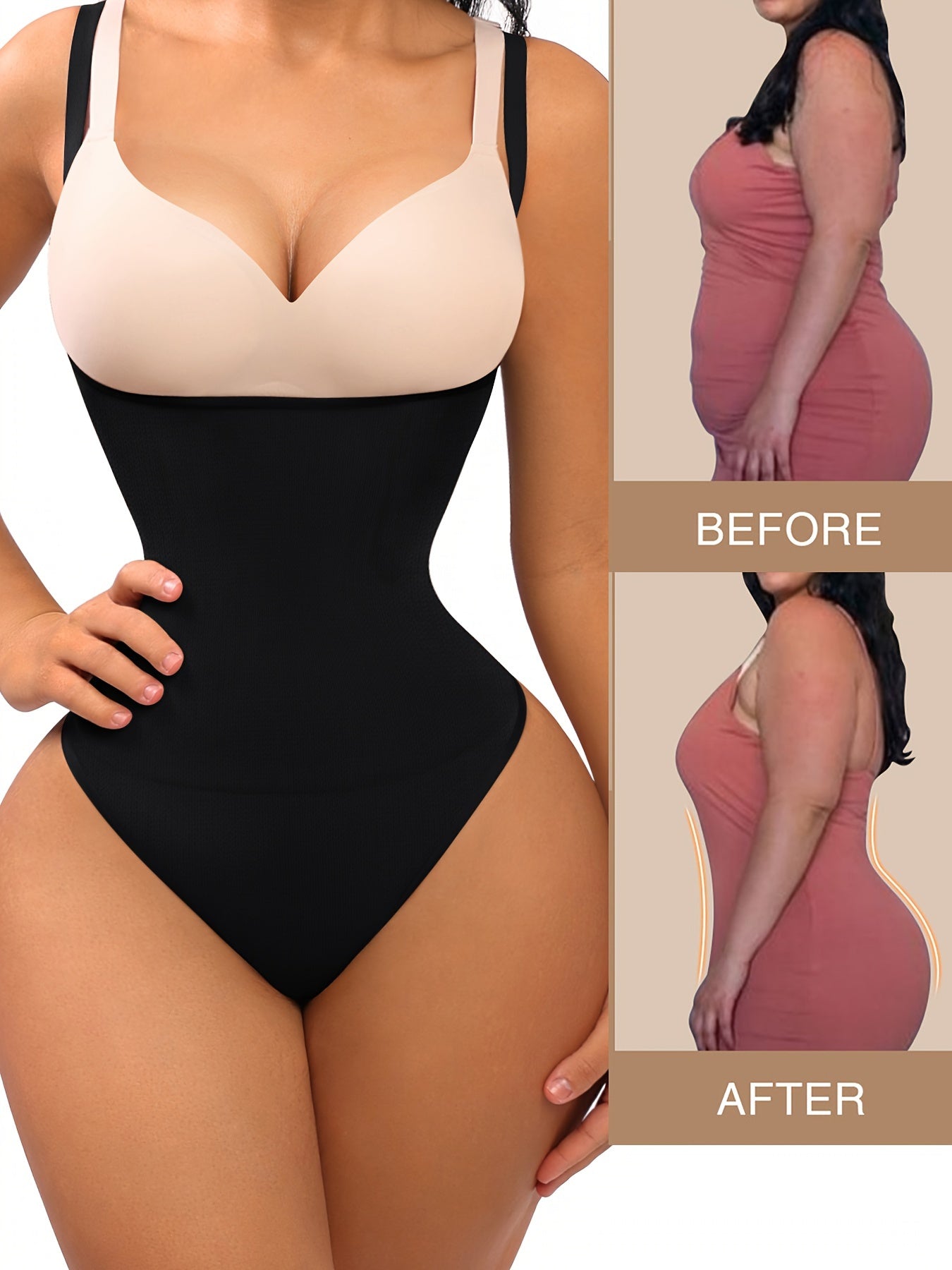 Women's Adjustable Strap Seamless Shaping Panty - Tummy Control, Slimming Body Shaper, Black Nylon-Spandex Blend, Elegant Design, Hand Wash Only, Tummy Control Shapewear