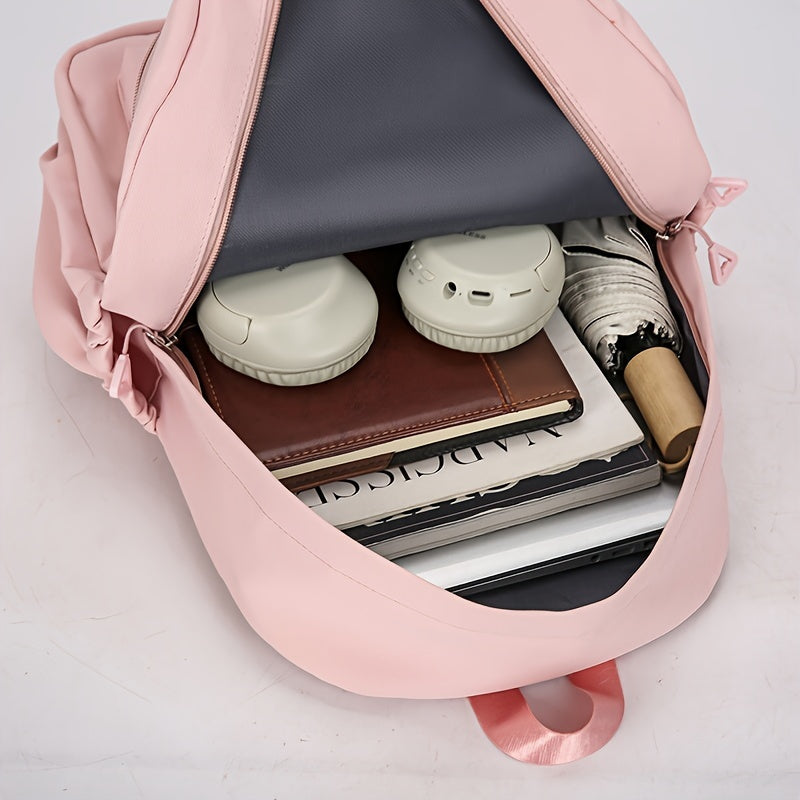 Airline Approved Unisex Carry-On Backpack - Foldable Oxford Fabric with Adjustable Straps, Zipper Closure & Pink Bow Design for College, Travel, Hiking, School (Hand Wash Only), Travel Backpack | Casual Backpack | Durable Bac