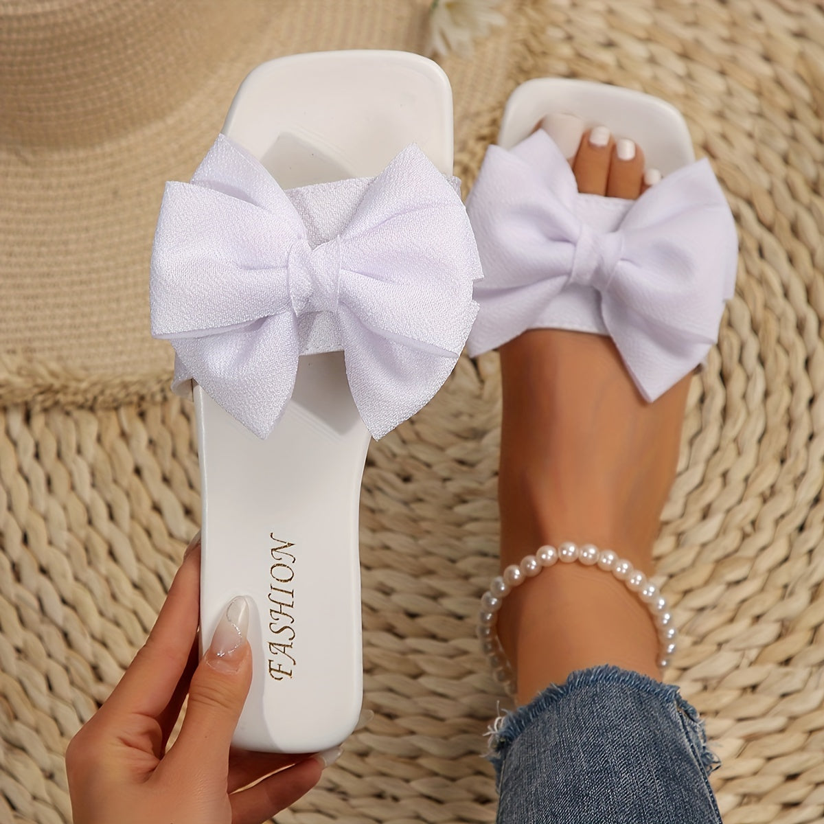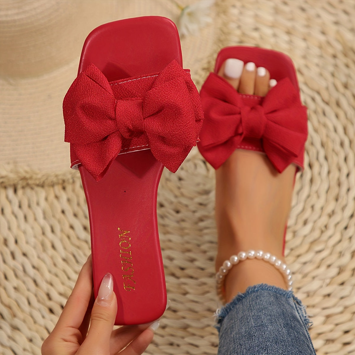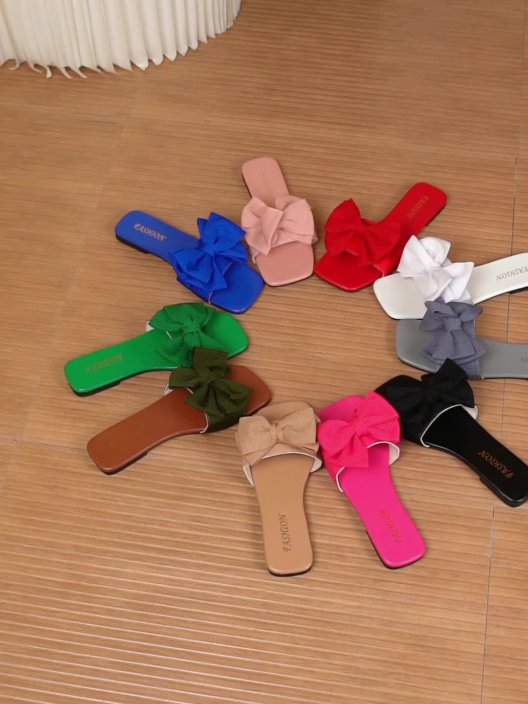 Women's Bowknot Decor Slide Sandals - Fashion Square Open Toe Flat Summer Shoes, Lightweight Slide Sandals - For Women - Perfect for Summer Beach, Vacation & Casual Wear - Ideal Gift for Her