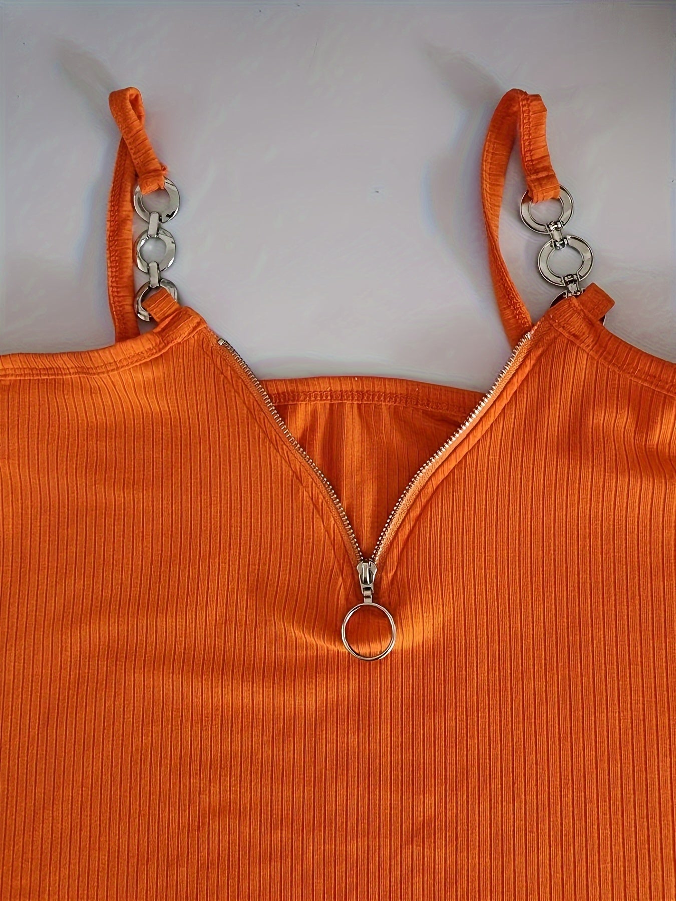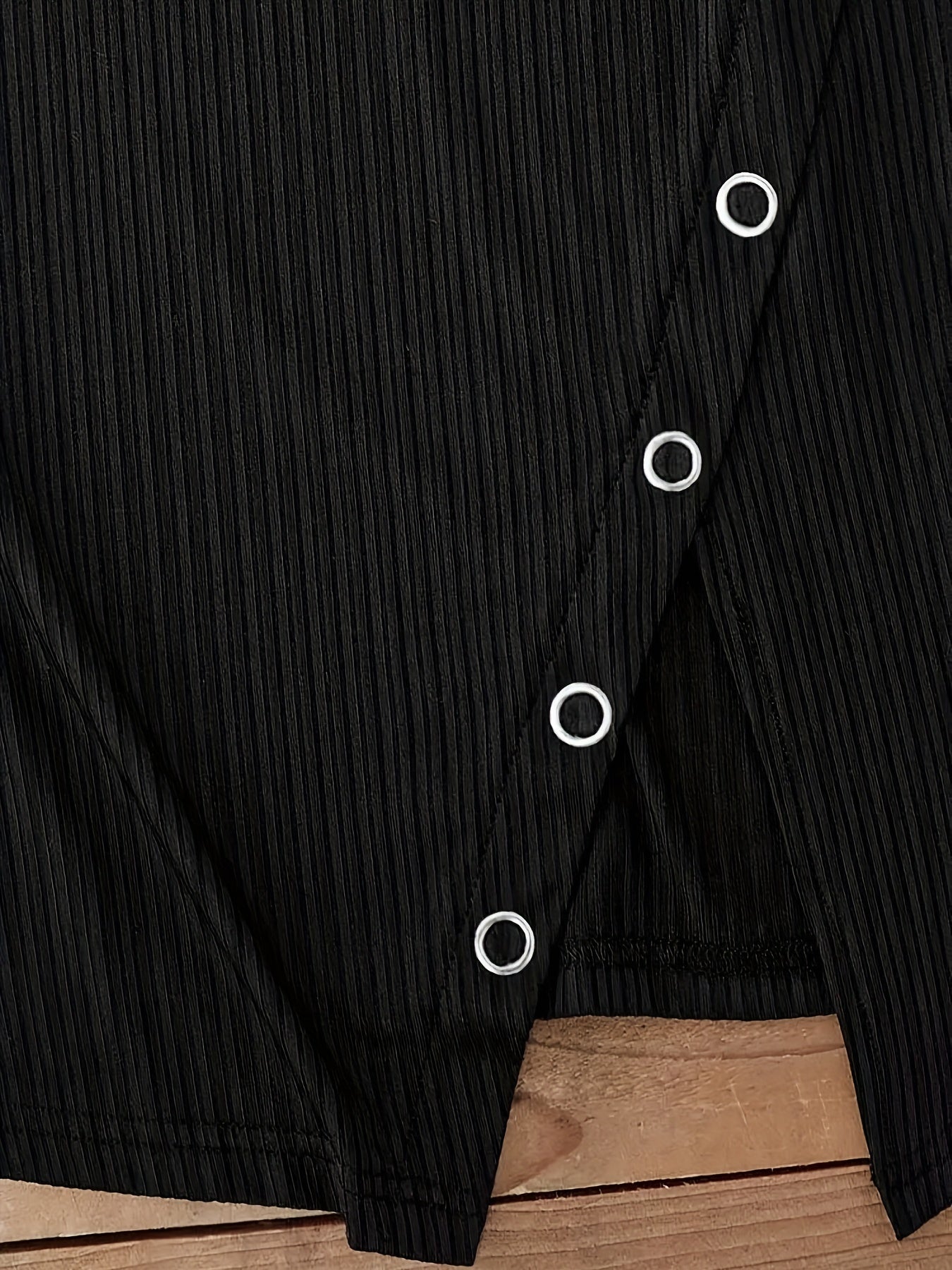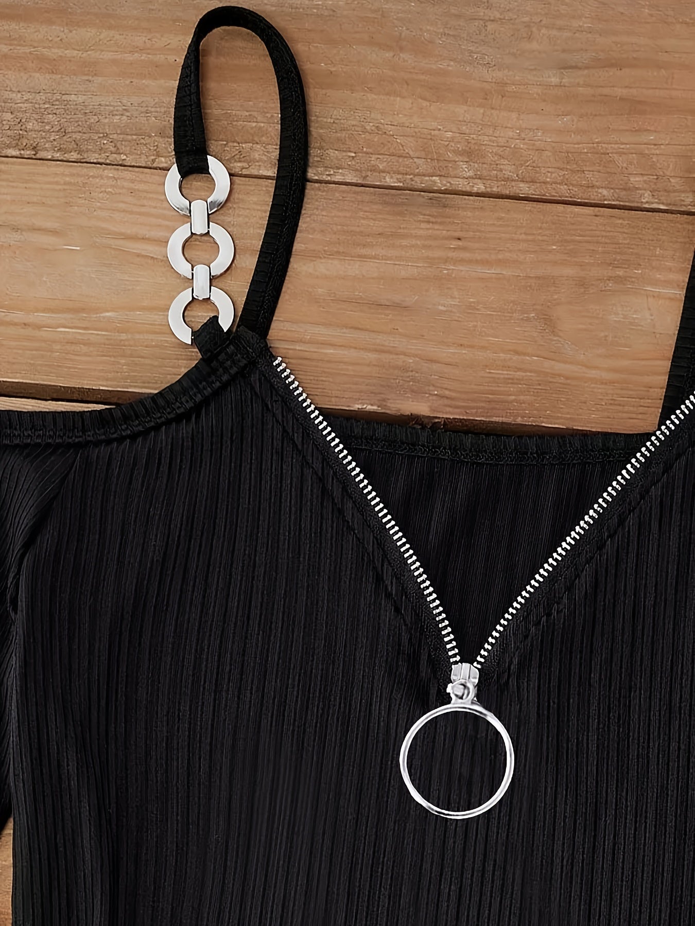 Women's Cold Shoulder Ribbed Chain Strap Dress - Zipper, Elegant, Short Sleeve, Split Bodycon Dress - For Spring & Summer - Perfect for Parties & Casual Occasions - Ideal Gift for Women