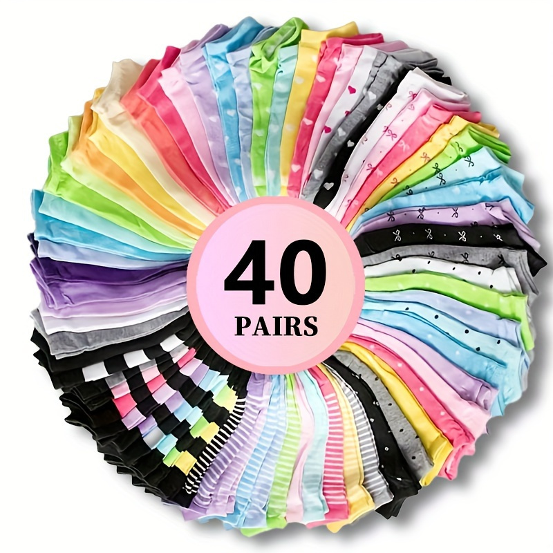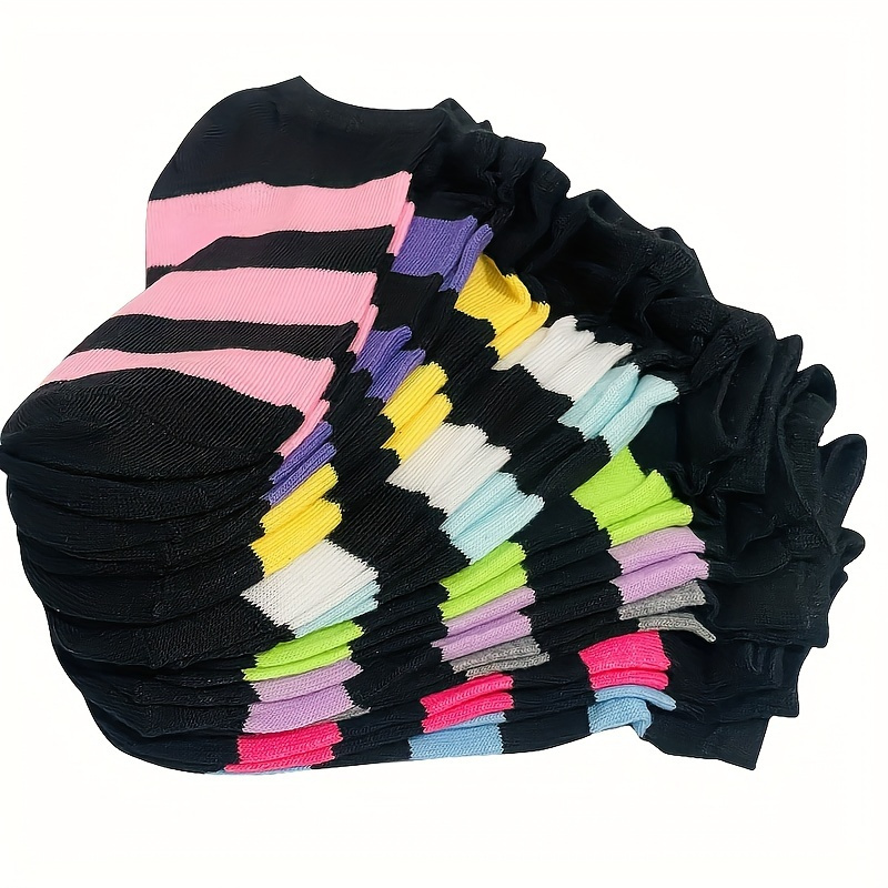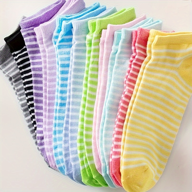 Women's Polyester Socks 20/40/60/80/100 Pairs - Striped Crew and Ankle Length, Comfortable Knit Fabric with Elastane for Stretch, Easy Machine Wash, Casual Multipack