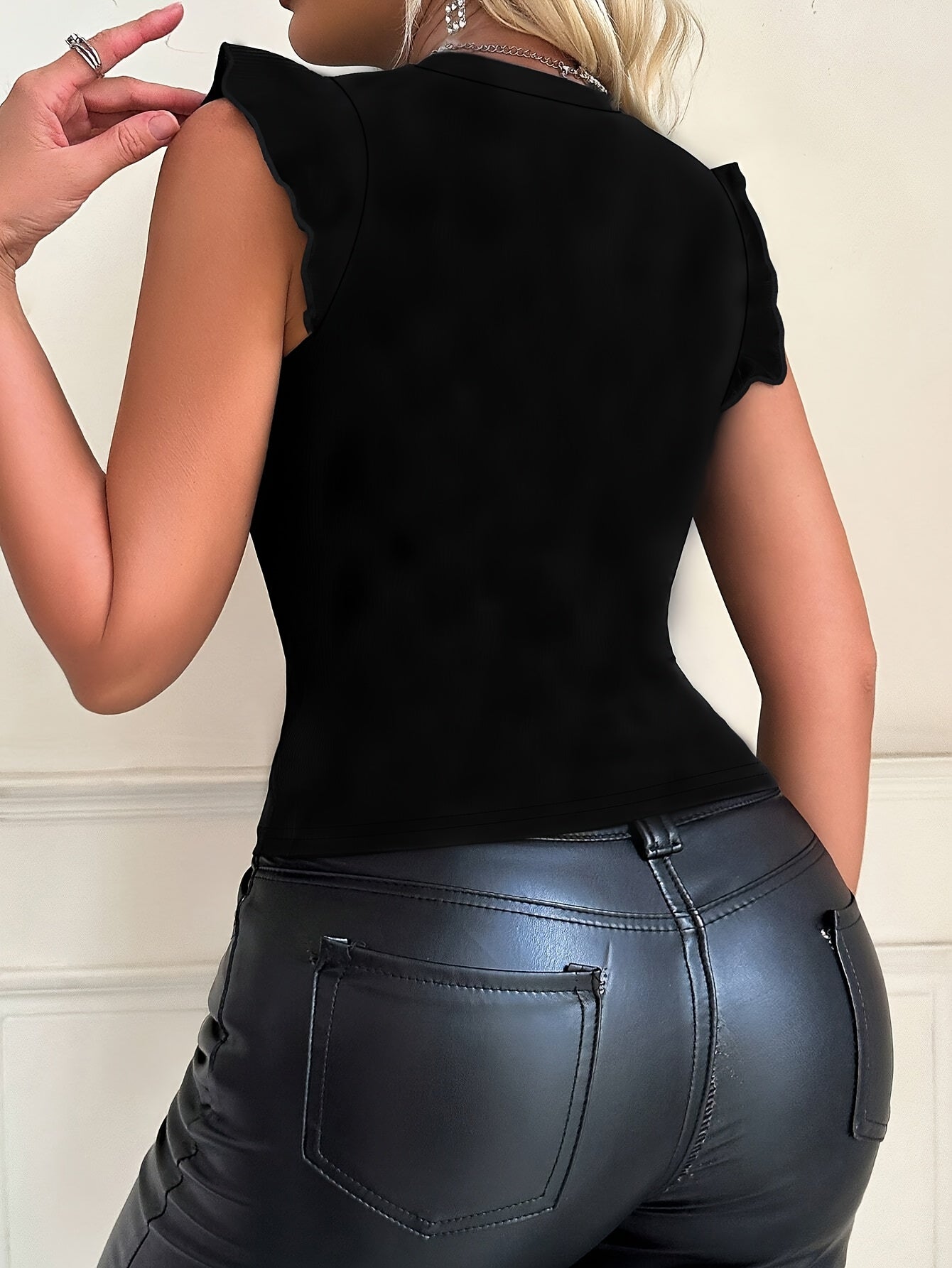 Women's Sexy Sleeveless Knit T-Shirt with Sparkling Heart Cutout Design - Stretchy Polyester-Spandex Blend, Lightweight 230gsm, Machine Washable for Spring Summer Fall Casual & Party Wear