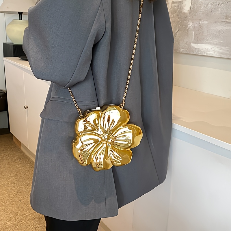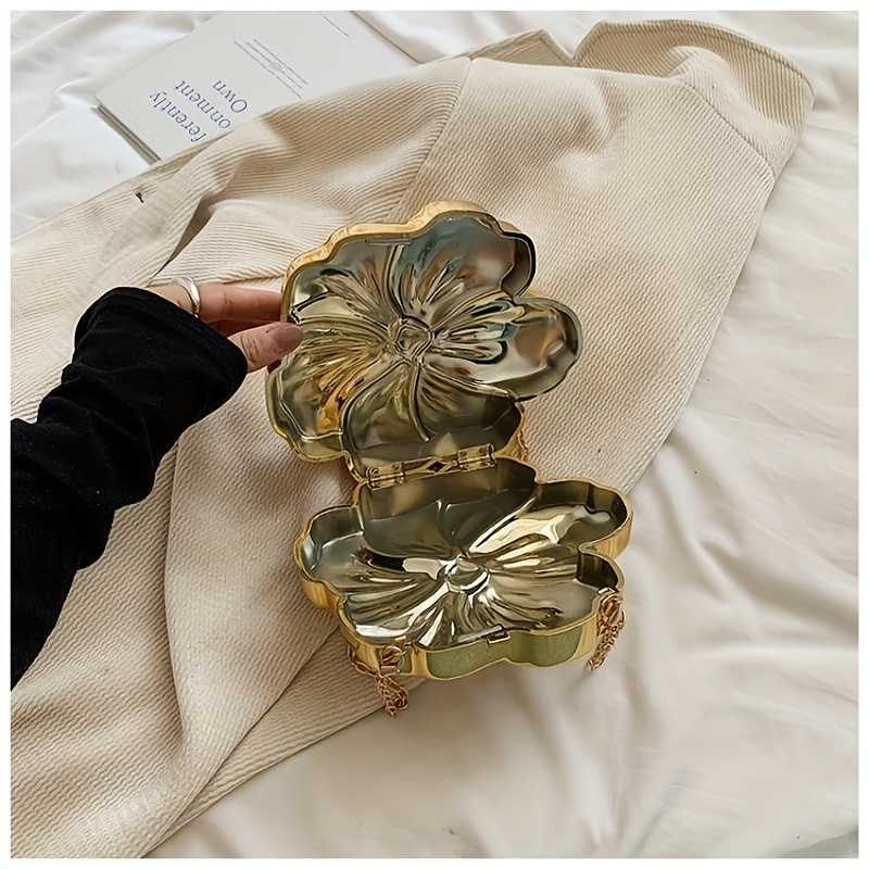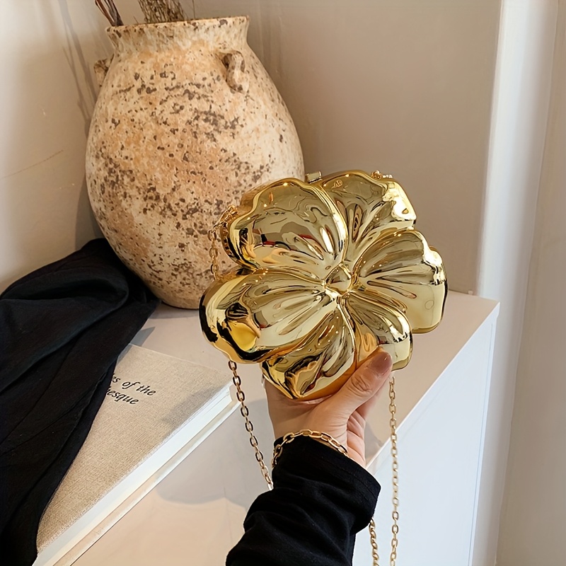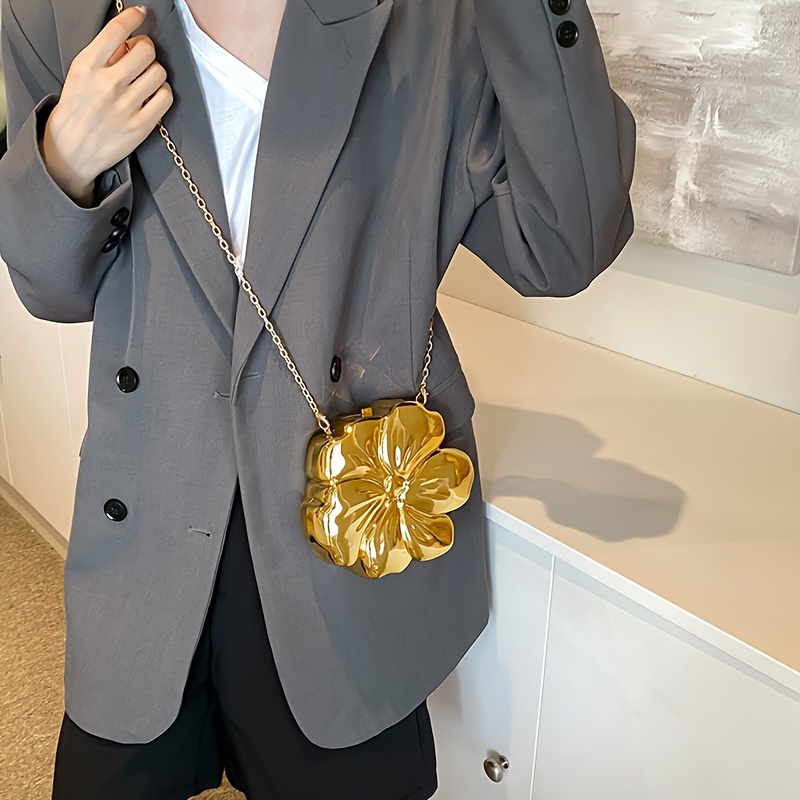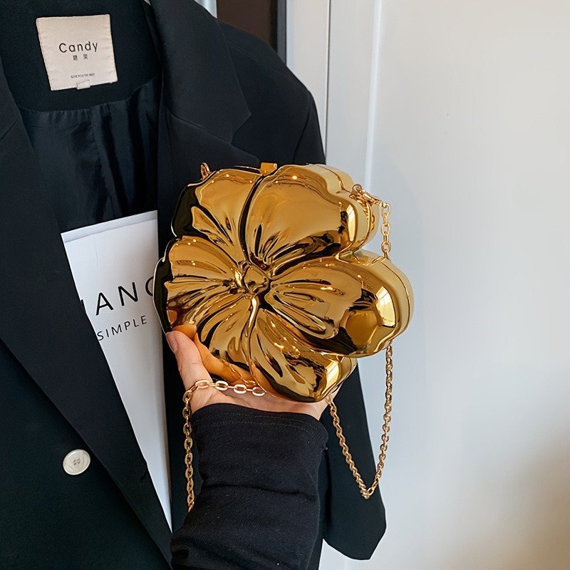 Y2K-Inspired Minimalist Golden Acrylic Crossbody Bag with Detachable Chain Strap – Stylish Flower Design for Women, Magnetic Closure, Perfect for Casual or Evening Outfits