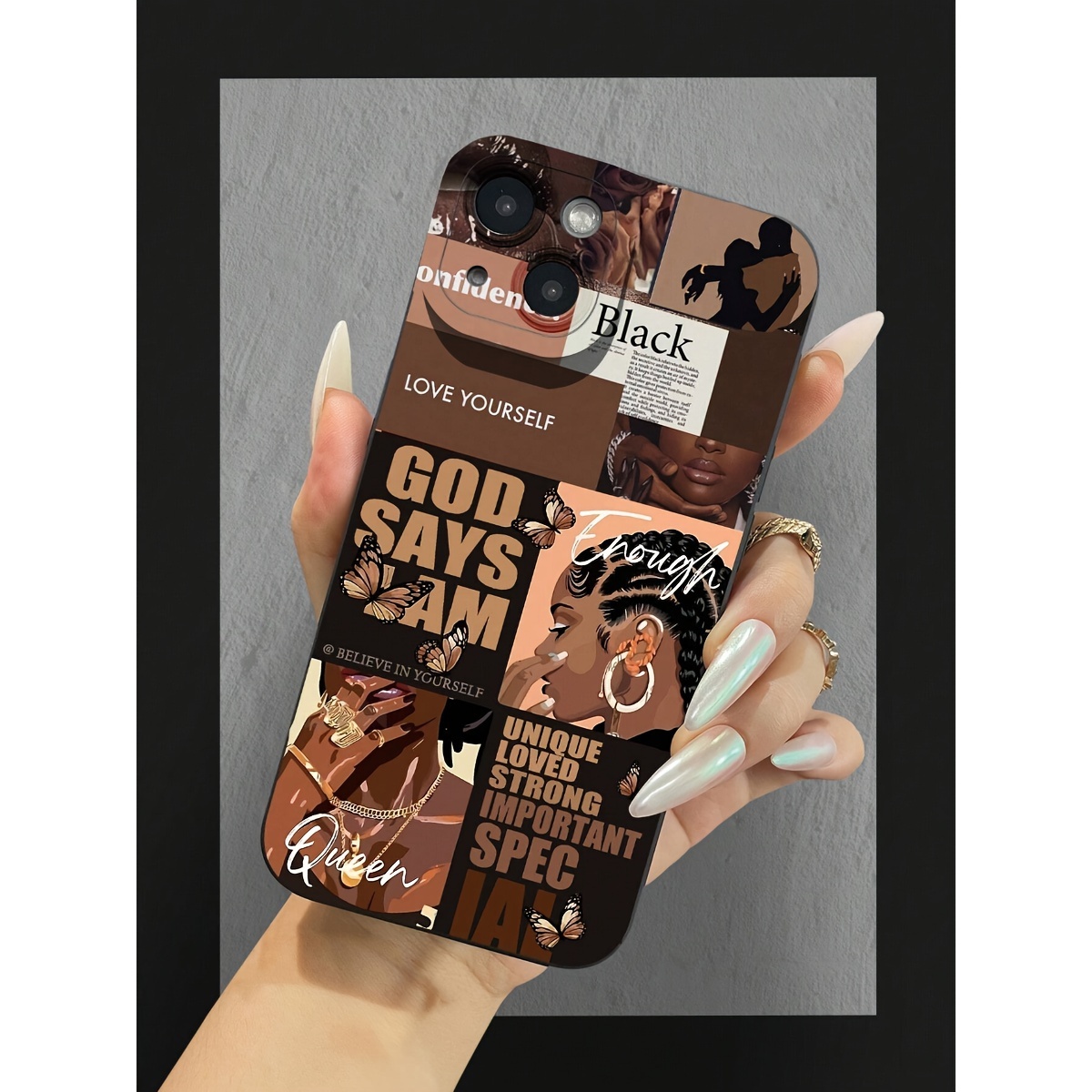 Black Girl Splicing Black Pupil Eyes Suitable for 7/8Plus Full Drop-Proof Soft Shell Simple High-End Air Cushion Suitable for Iphone14Promax Apple 13 Mobile Phone Case Couple Xsmax New 12Pro Drop-Proof Xr Matte 11 Men And Wom