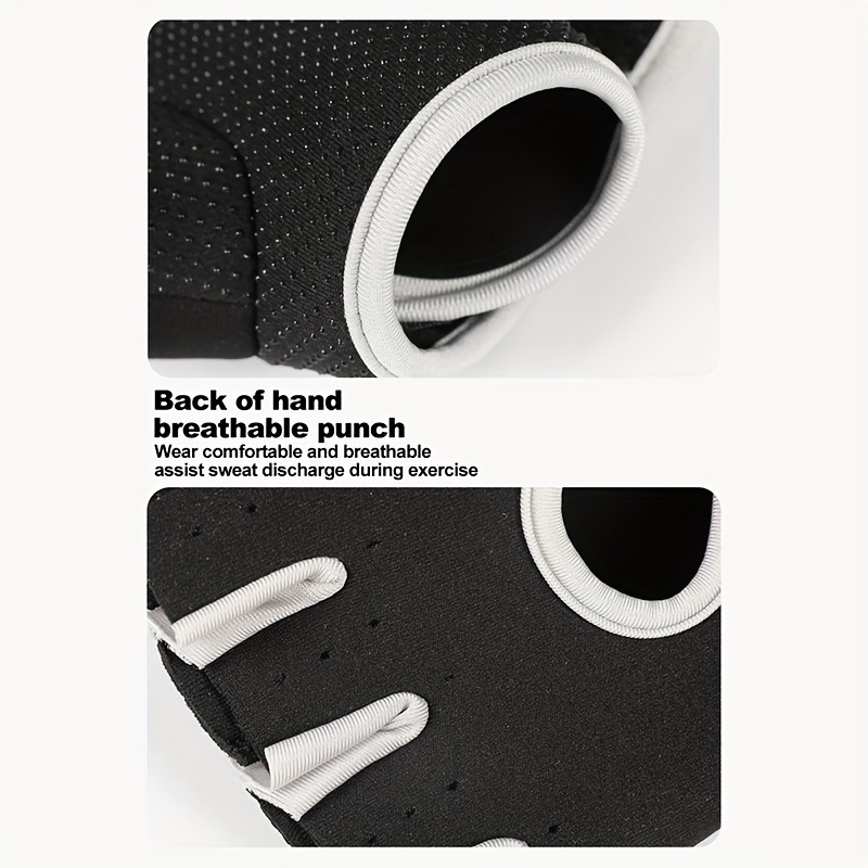 Breathable Sports Gloves with Silicone Non-Slip Palm Matrix, Half Finger Gym Fitness Gloves with Ventilated Back, Durable Polyester Hand Washable Fingerless Cycling Training Gloves - For Men & Women - Suitable for Cycling, Gy