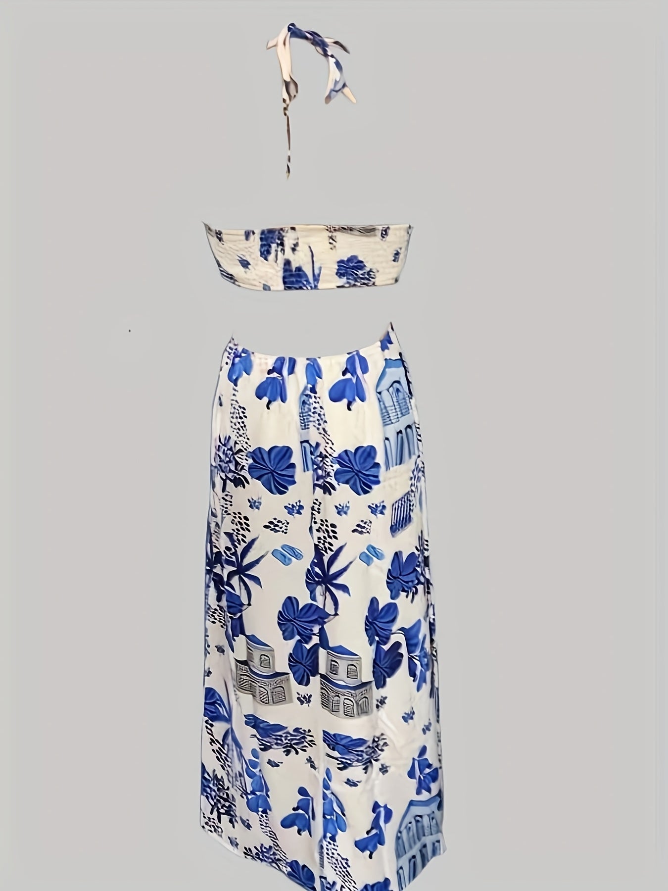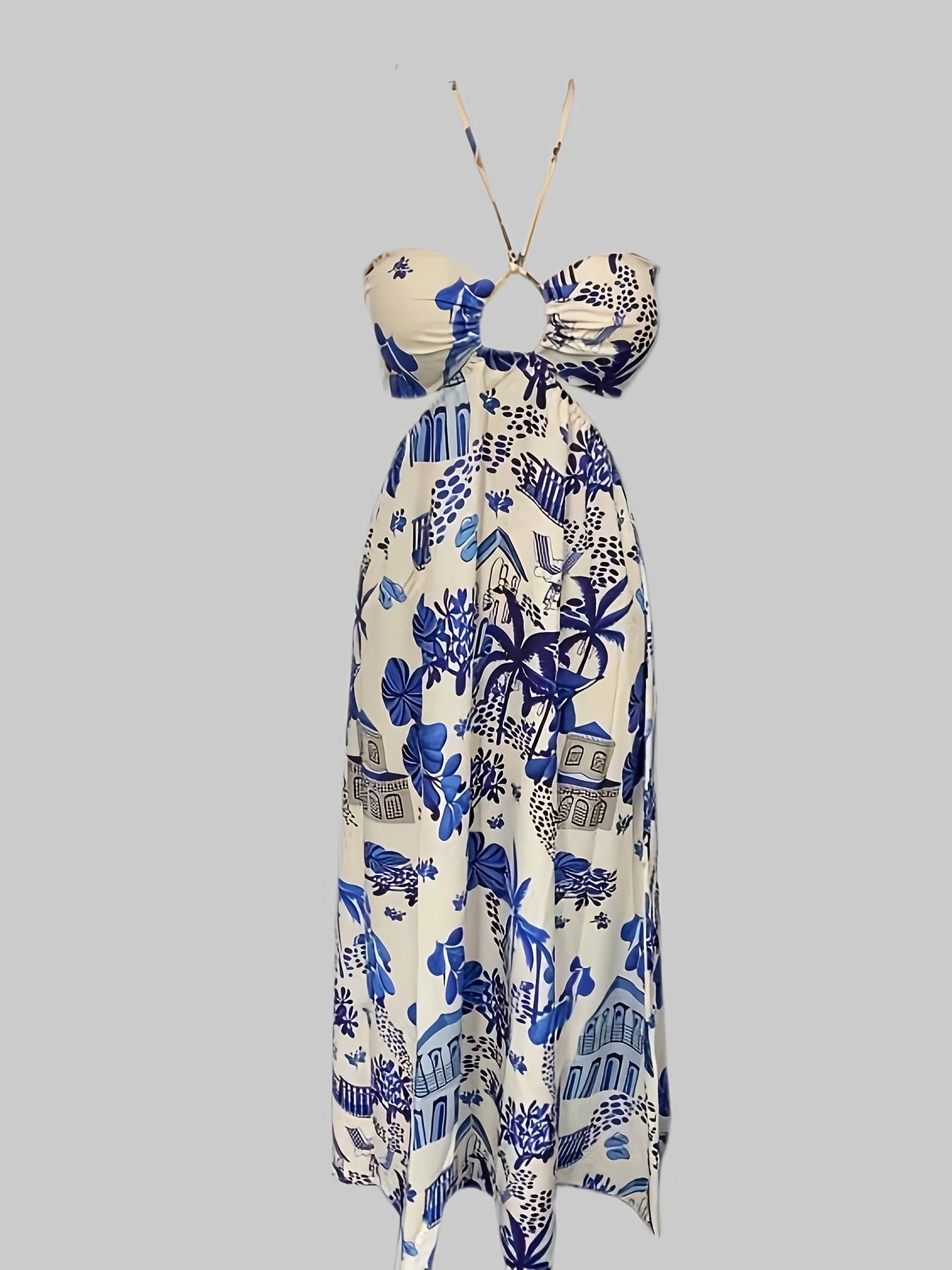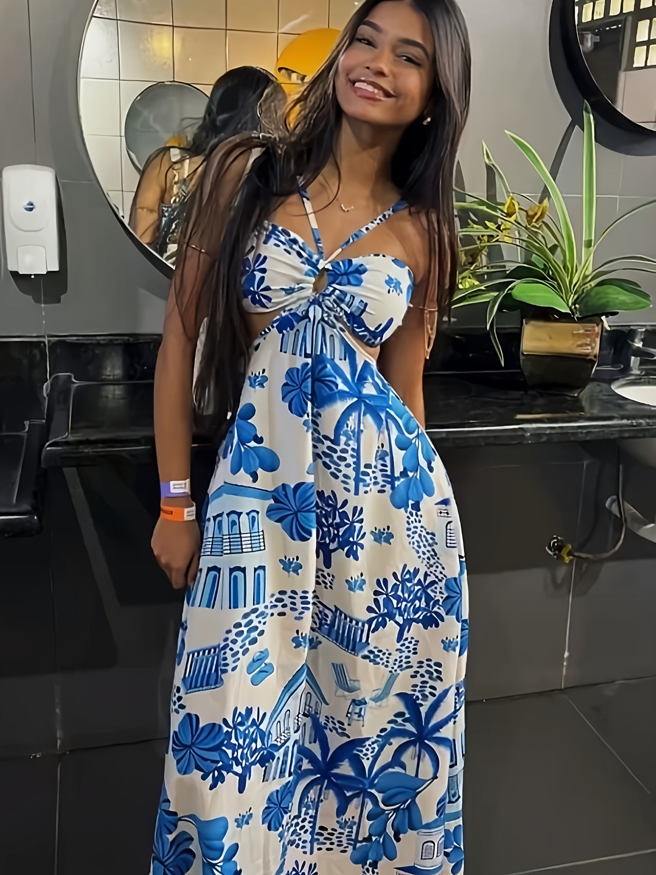 Chic Off-Shoulder Tropical Print Maxi Dress - Casual & Vibrant, Easy-Care Polyester, Non-Sheer Summer Style with Floral & Palm Design for Women