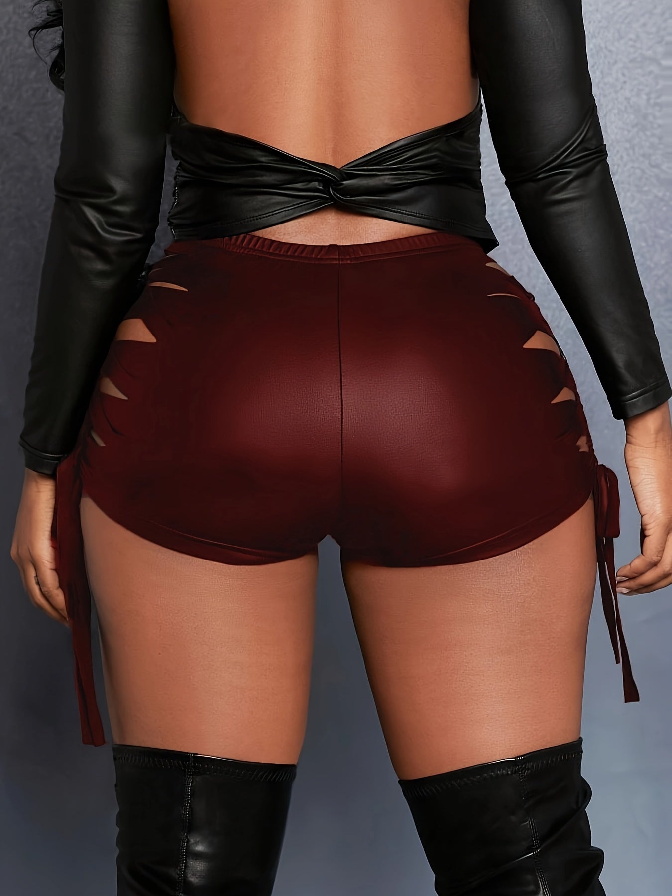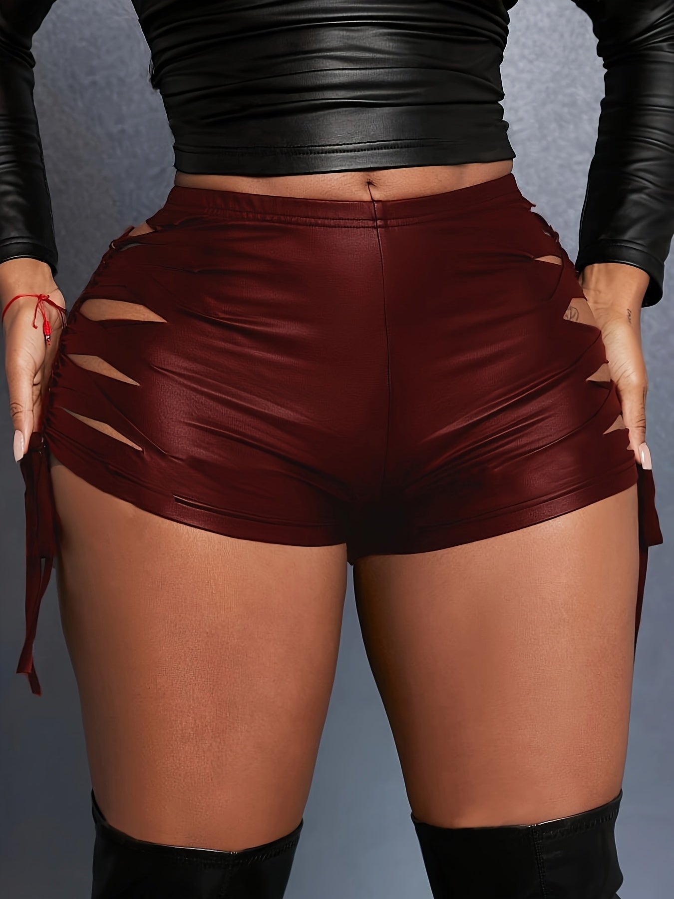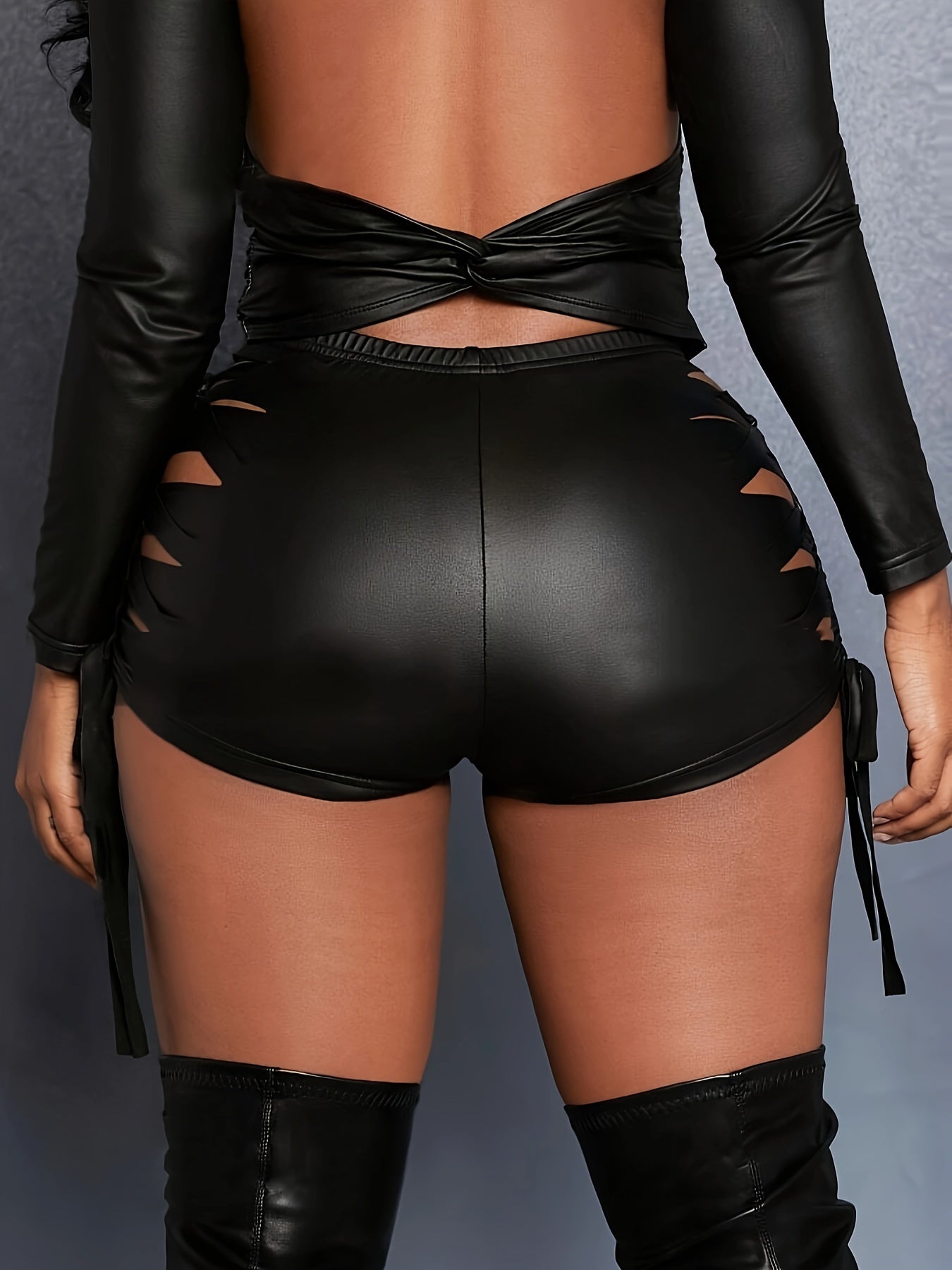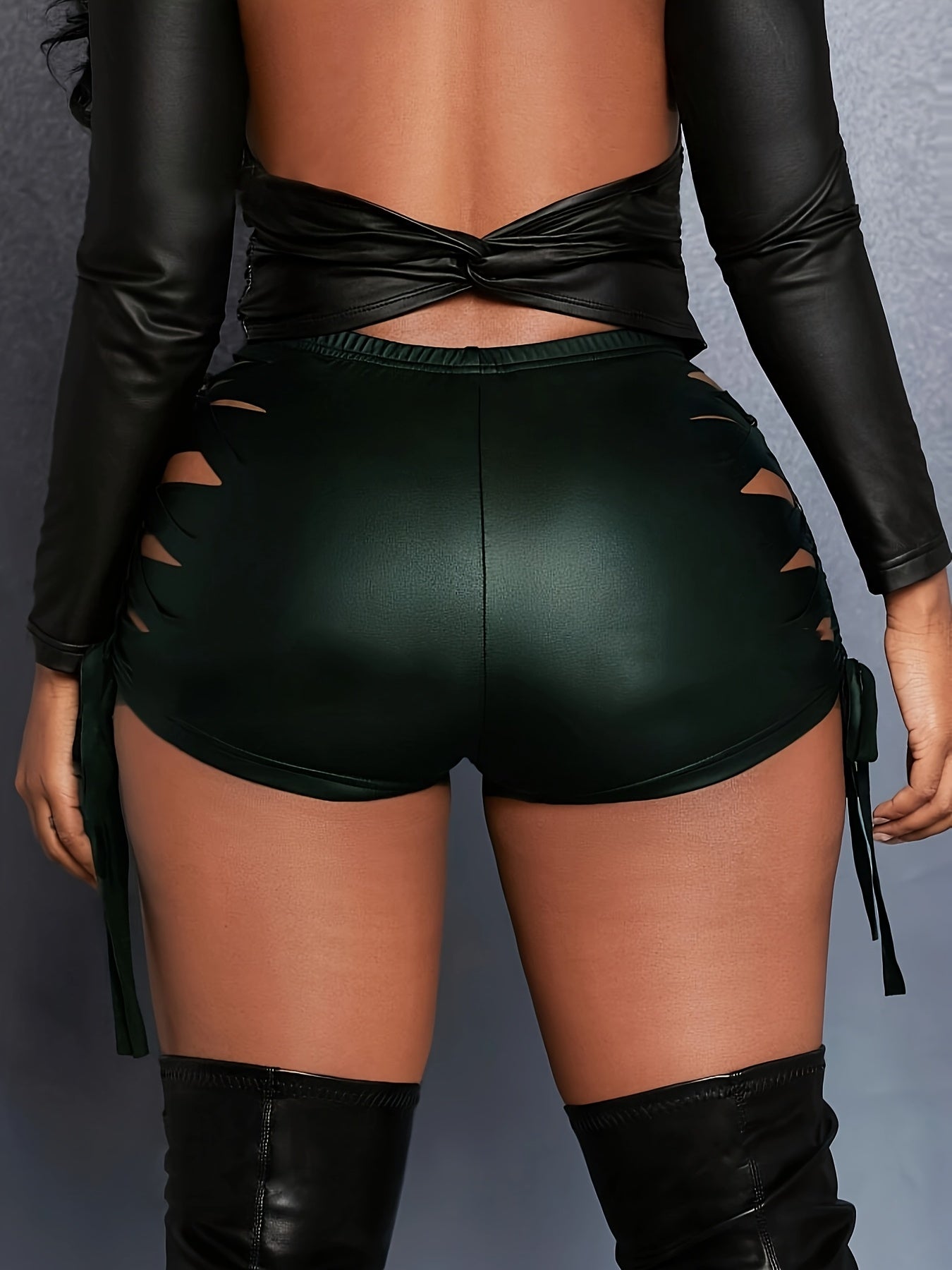 Cut Out High Waist Skinny Fit Shorts - Sexy & Stylish - For Spring & Summer - Women's Clothing - Perfect for Beach, Vacation & Casual Wear - Ideal Gift for Fashionable Women