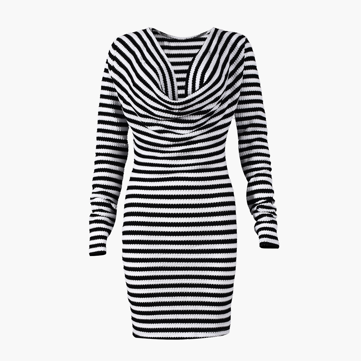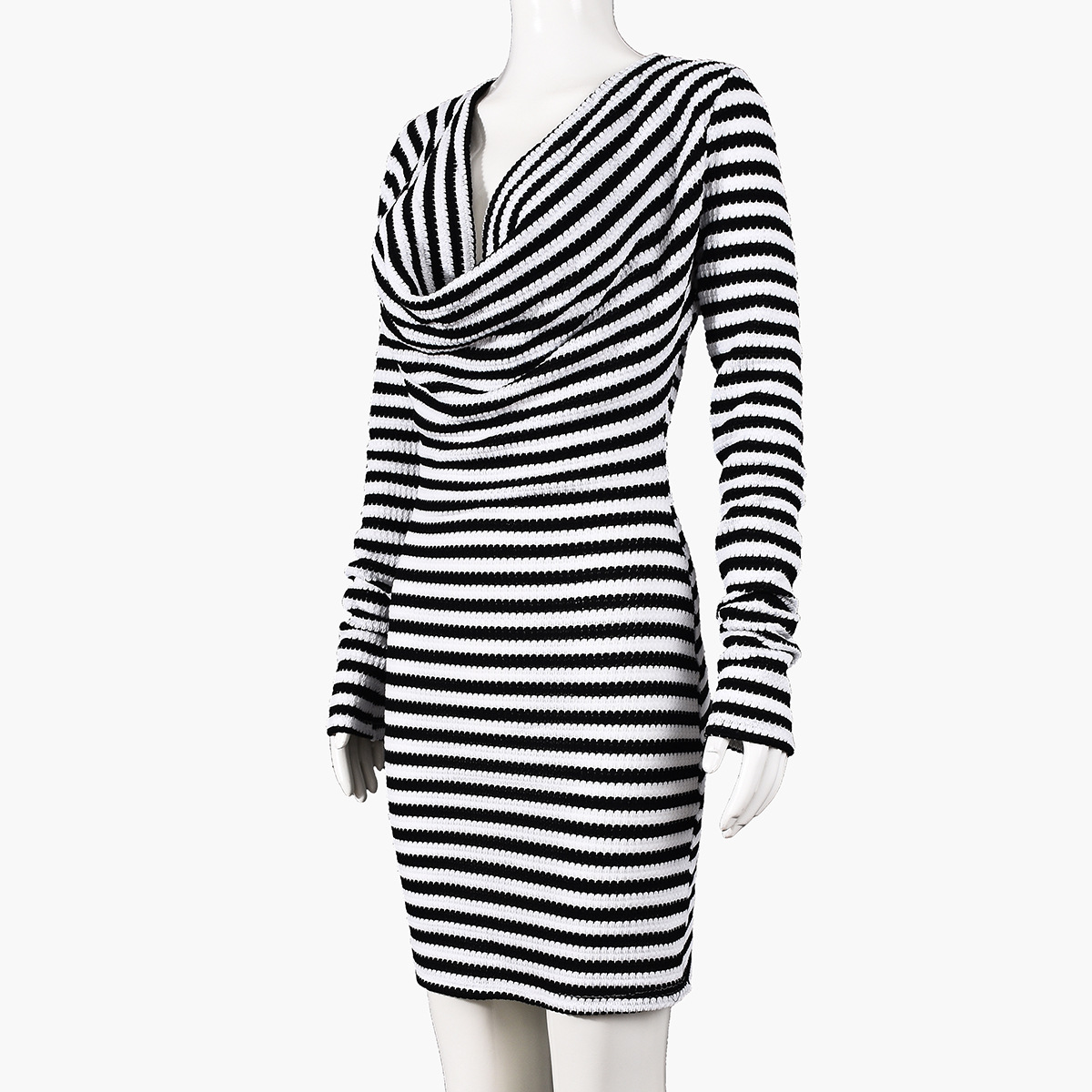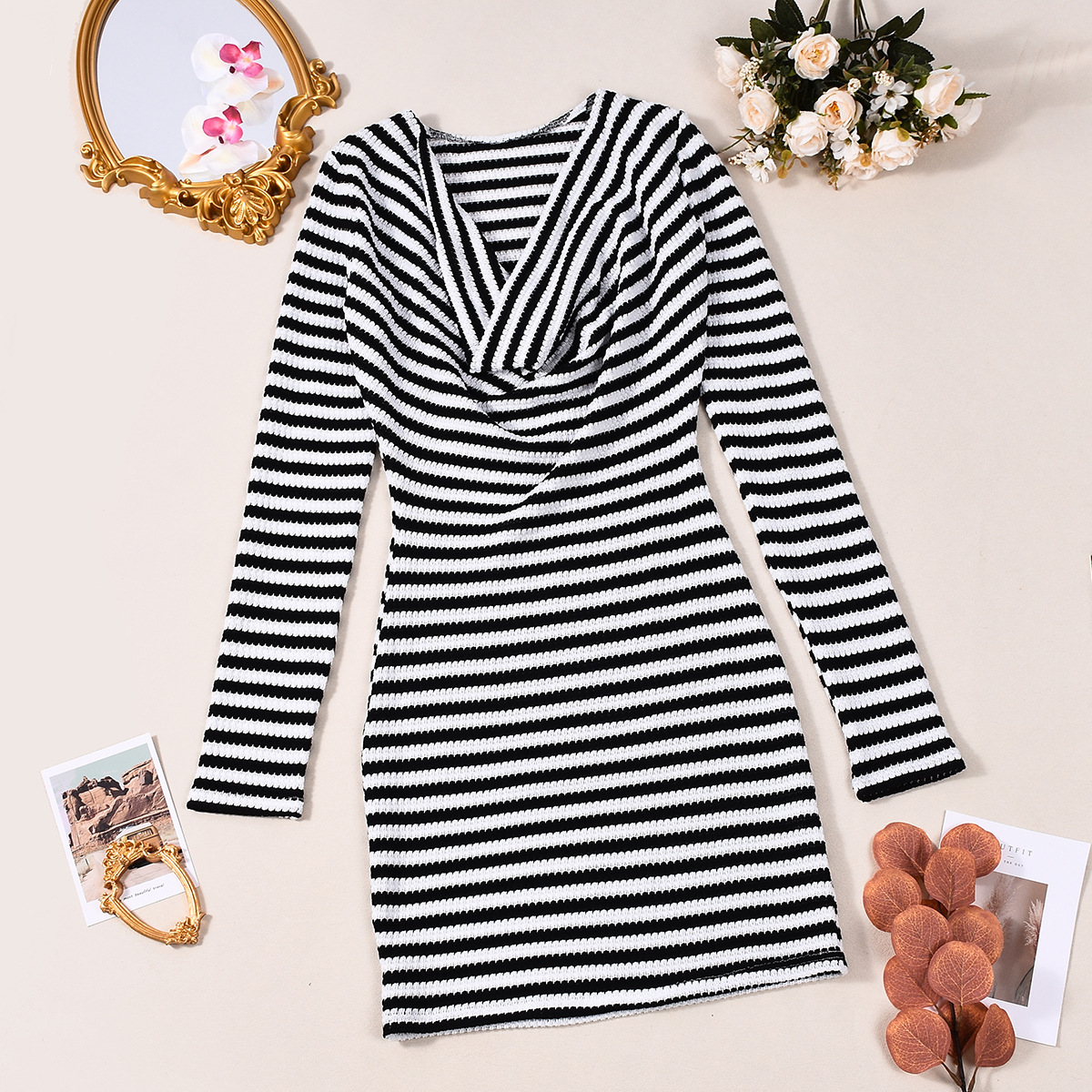 Elegant Striped Boat-neck Gugufeng-style Dress
