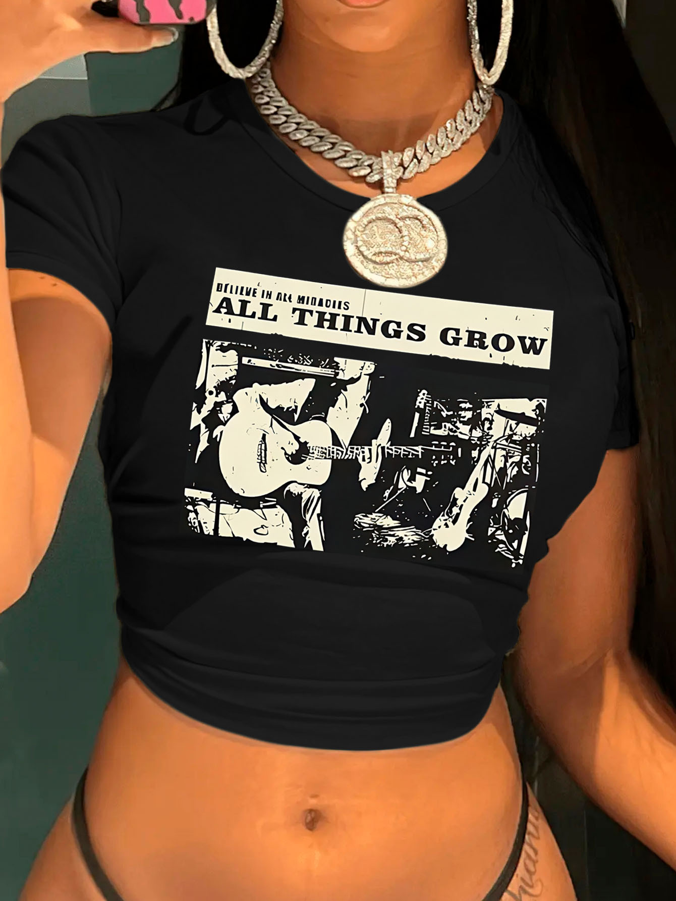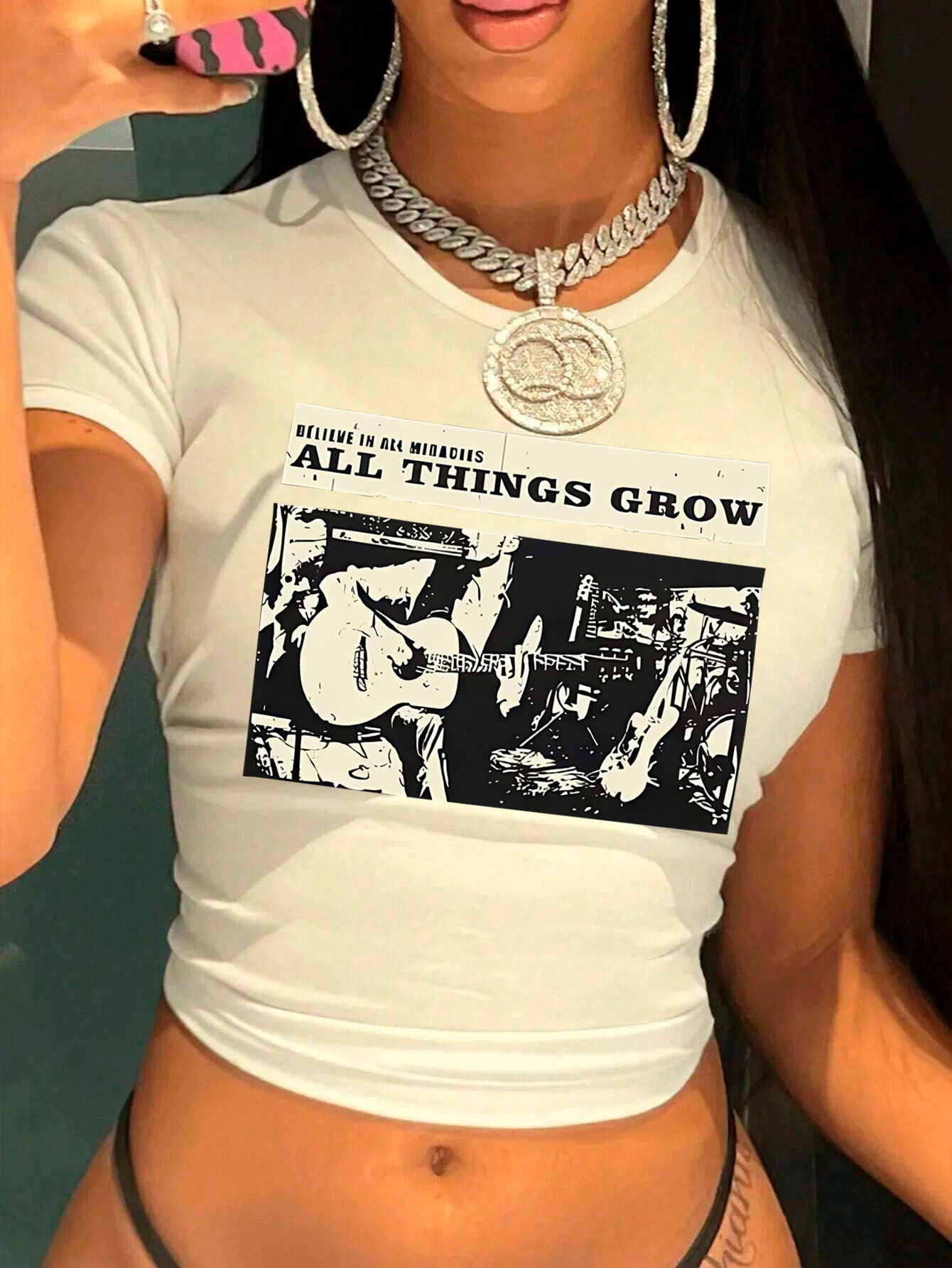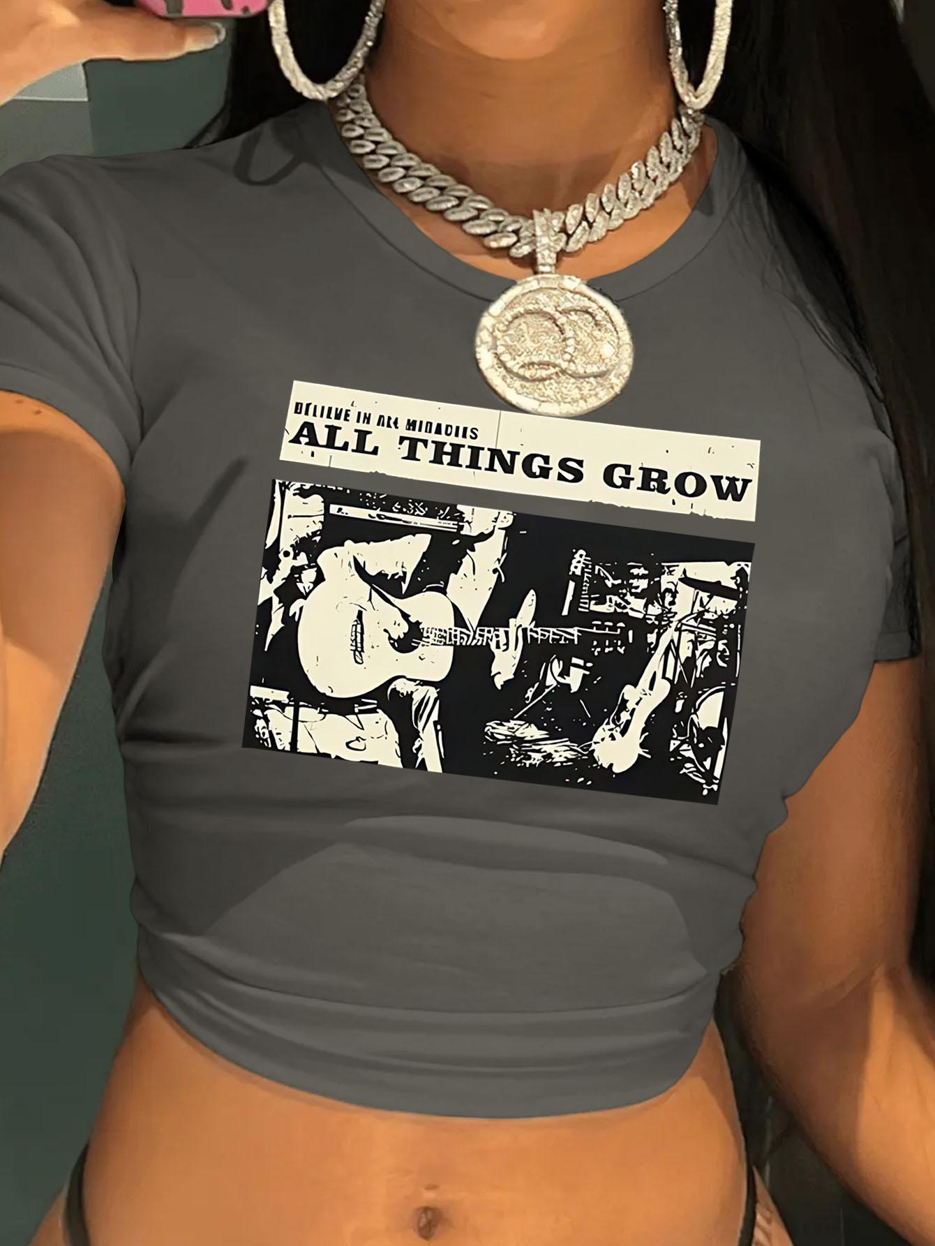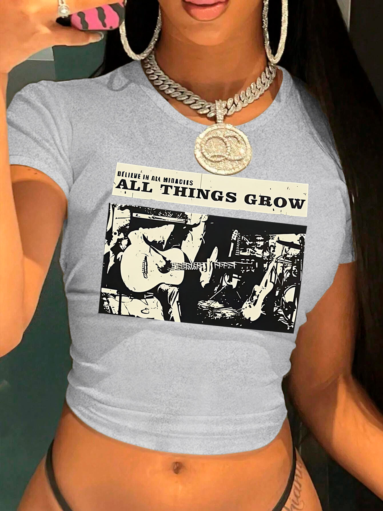 Graphic printed cropped T-shirt, Y2K spring and summer short-sleeved crop top, Women's