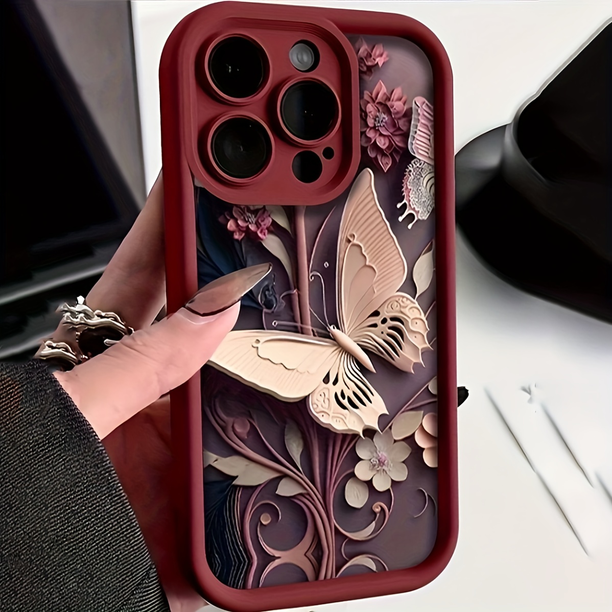 Painted Relief Art Butterfly Frosted All-Inclusive Anti-Fall Protective Mobile Phone Case Suitable for Apple 16Promax//16Plus/16/16Pro/15Promax/15Pro/15Plus/15/14/14Plus/14Pro/14Promax/13/13Pro/13Promax/12/12Pro/12Promax/11/1
