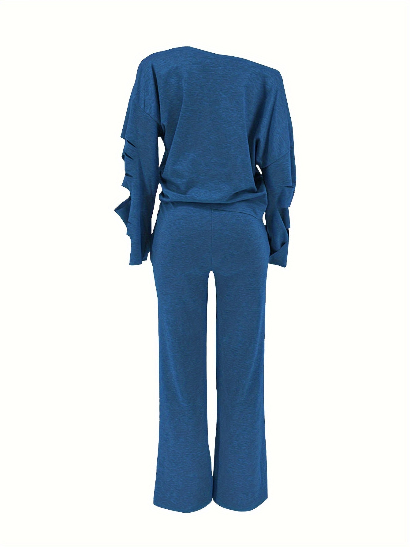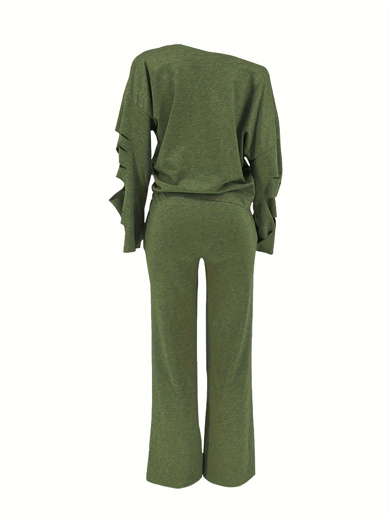 Two-piece Women's Casual Cut Out Set - Long Sleeve Asymmetric Top And Pants Outfit for Comfort And Style