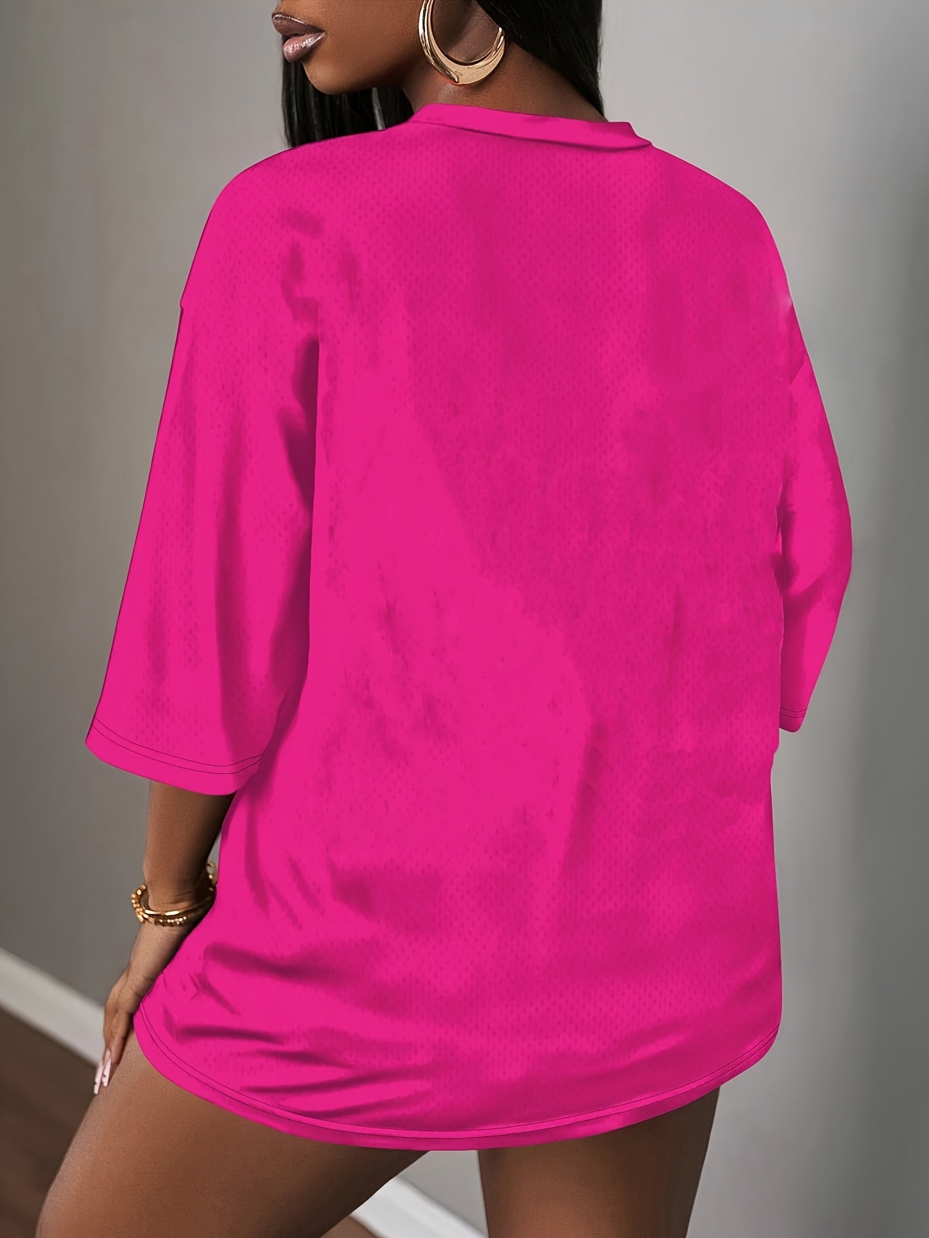 Women's Bright Pink V-Neck Breathable Mesh Athletic T-Shirt - FREE SPIRIT 98 Graphic Print, Summer Casual Sportswear, Machine Washable, Summer Athletic Wear | Sporty Vneck Top | Sporty Graphic Shirt, Sports T Shirt