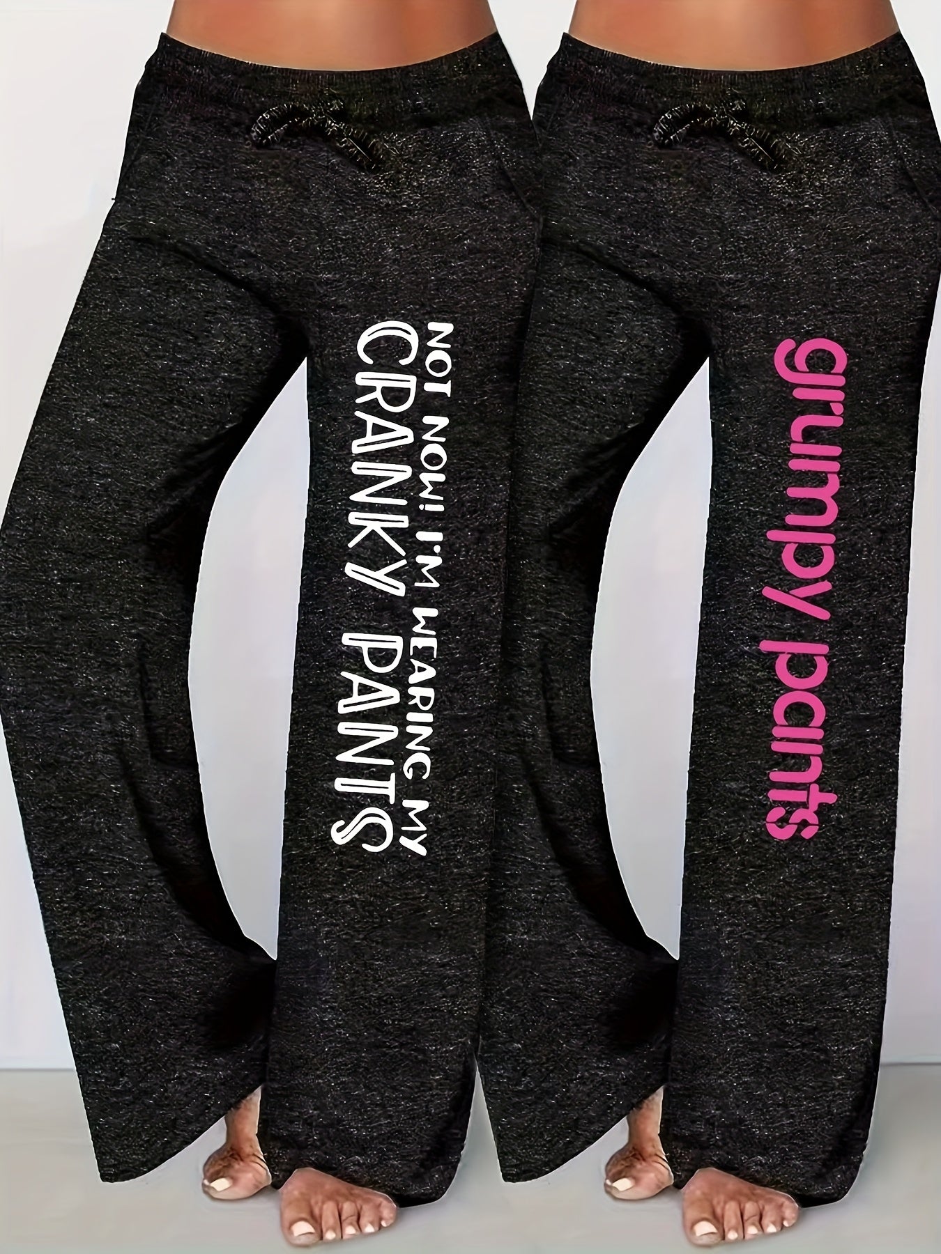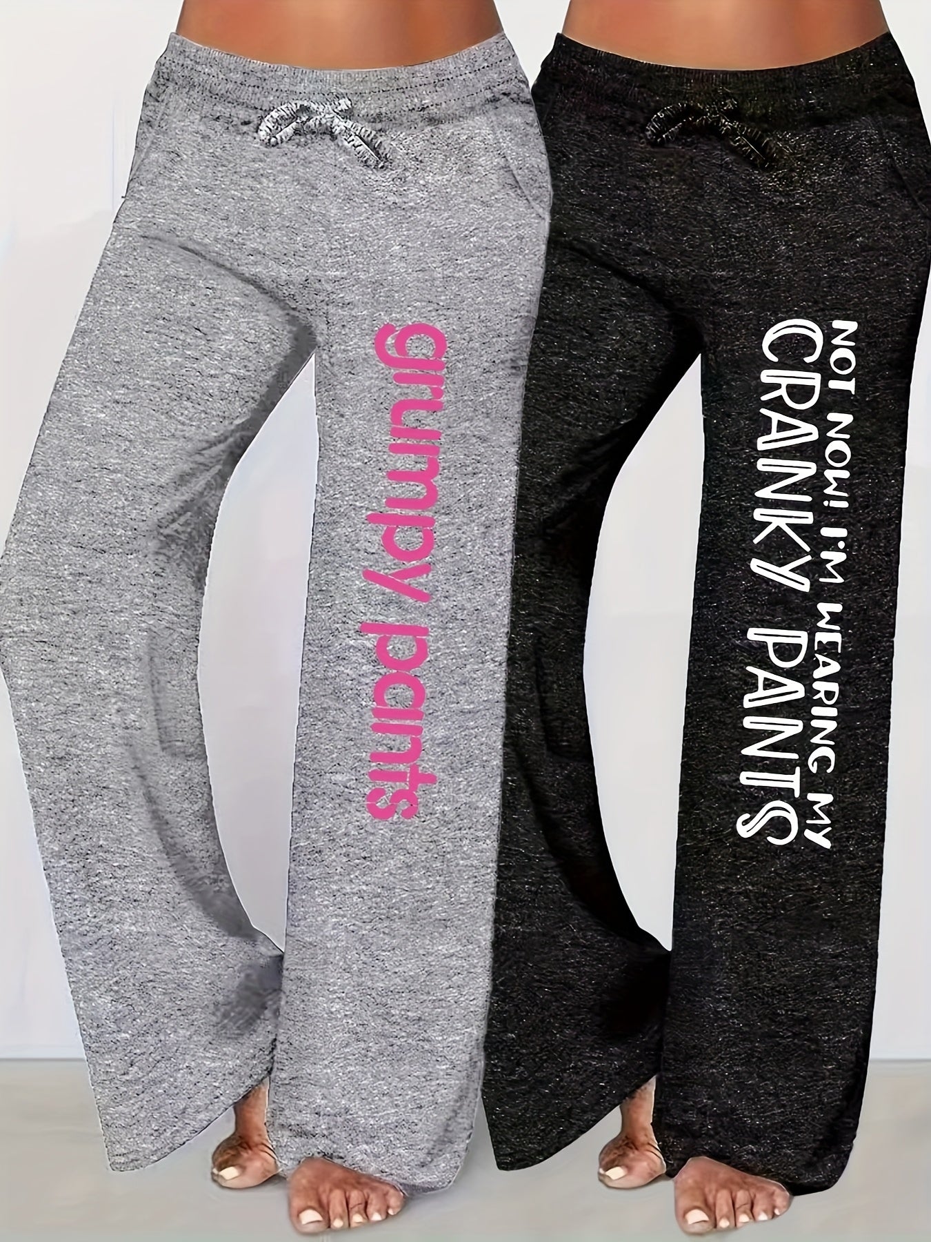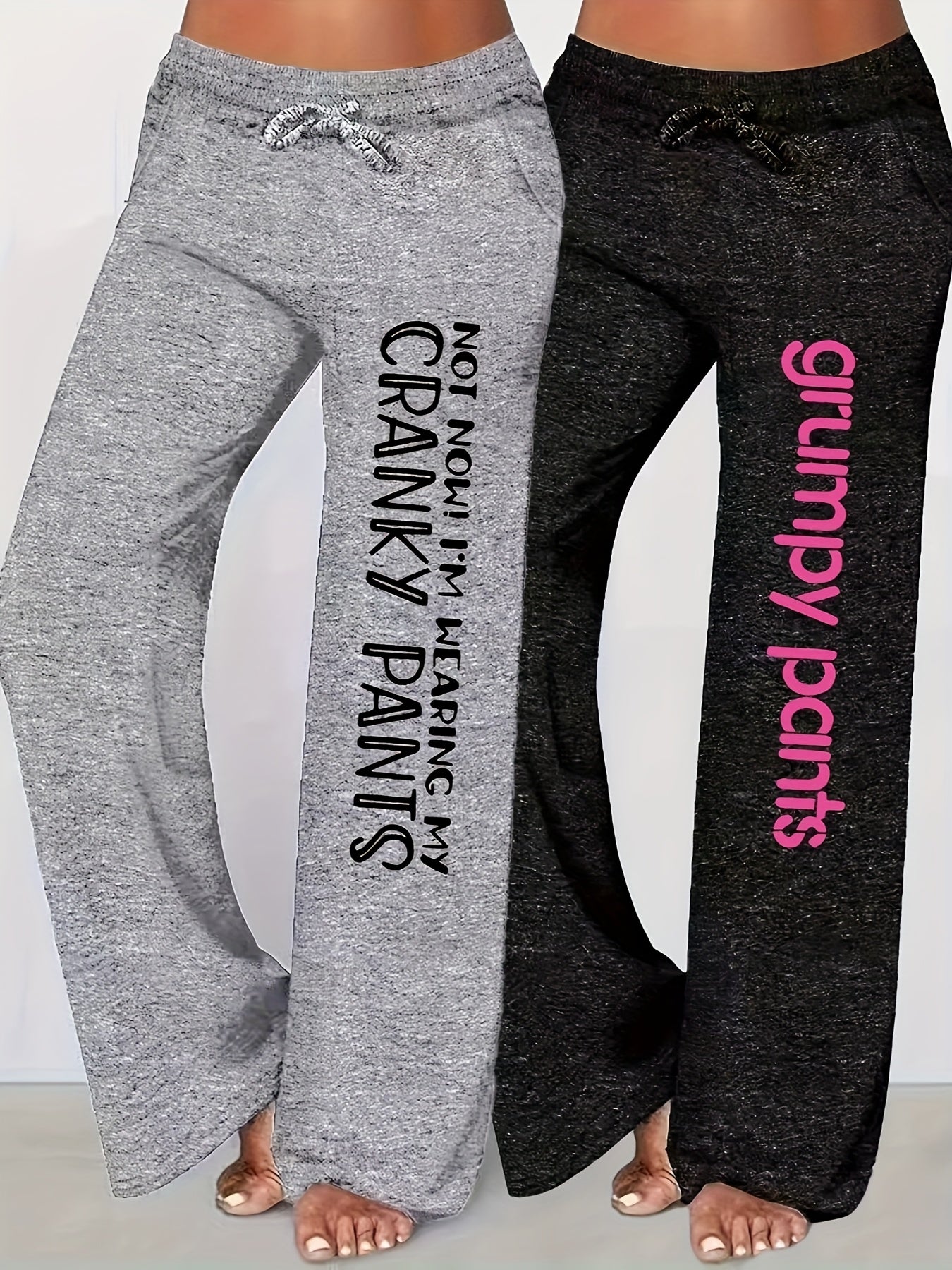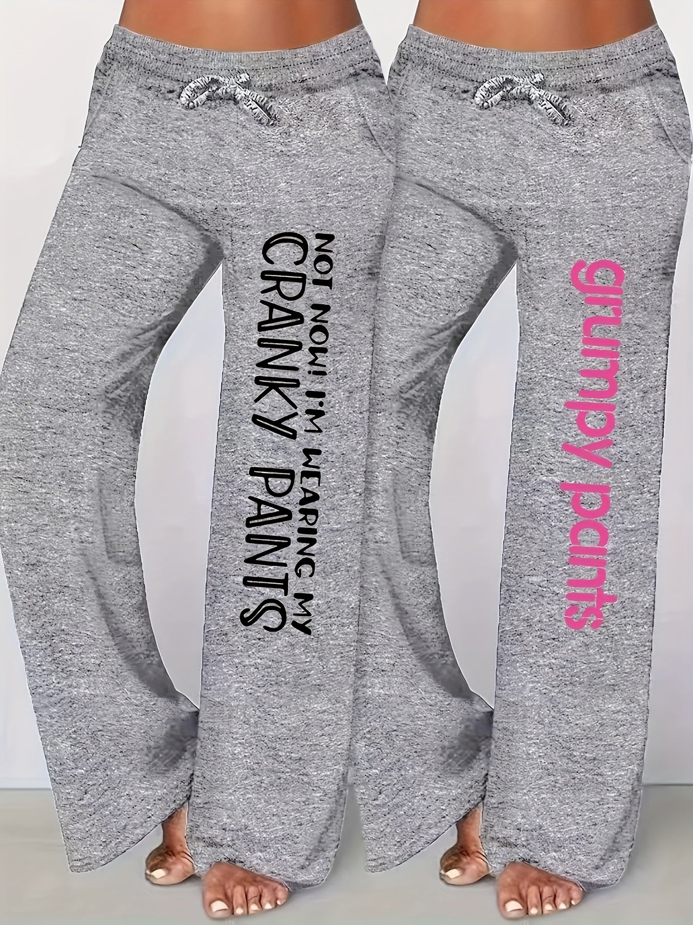 Women'S Casual Drawstring Pants with "Not Cranky, I'm Wearing My Grumpy Pants" Print - All-Season, Straight Leg, Comfortable, Relaxed Fit, Allseason Pants | Playful Print Pants | Comfortable Fit