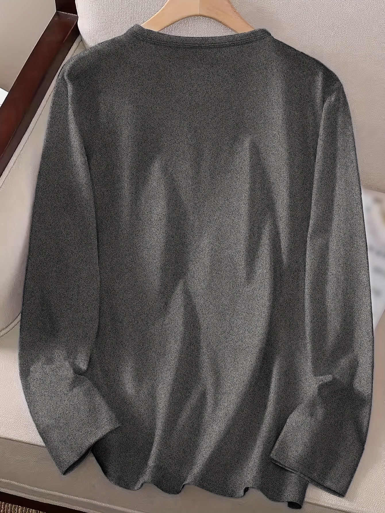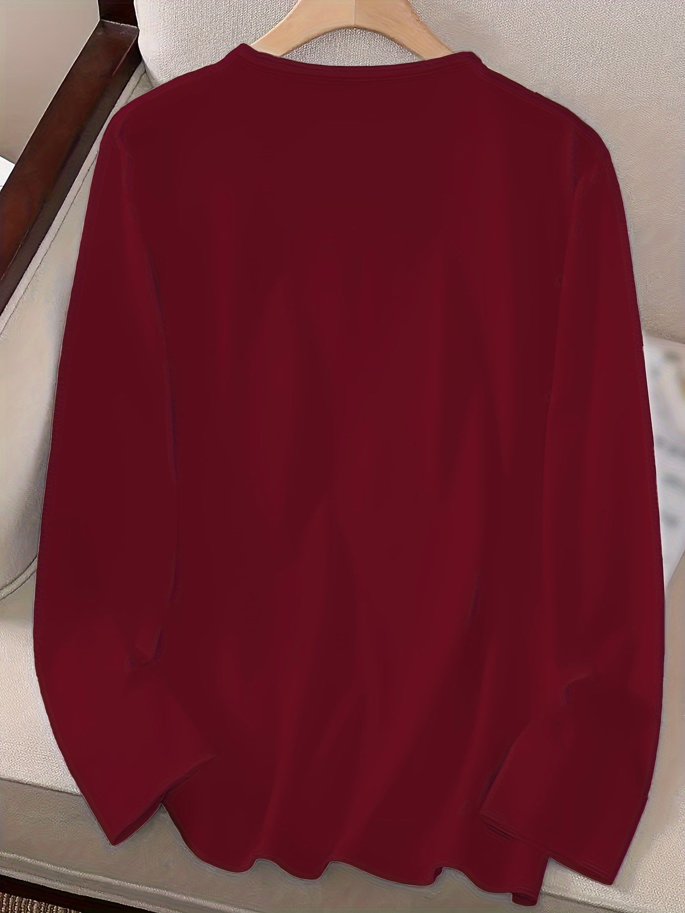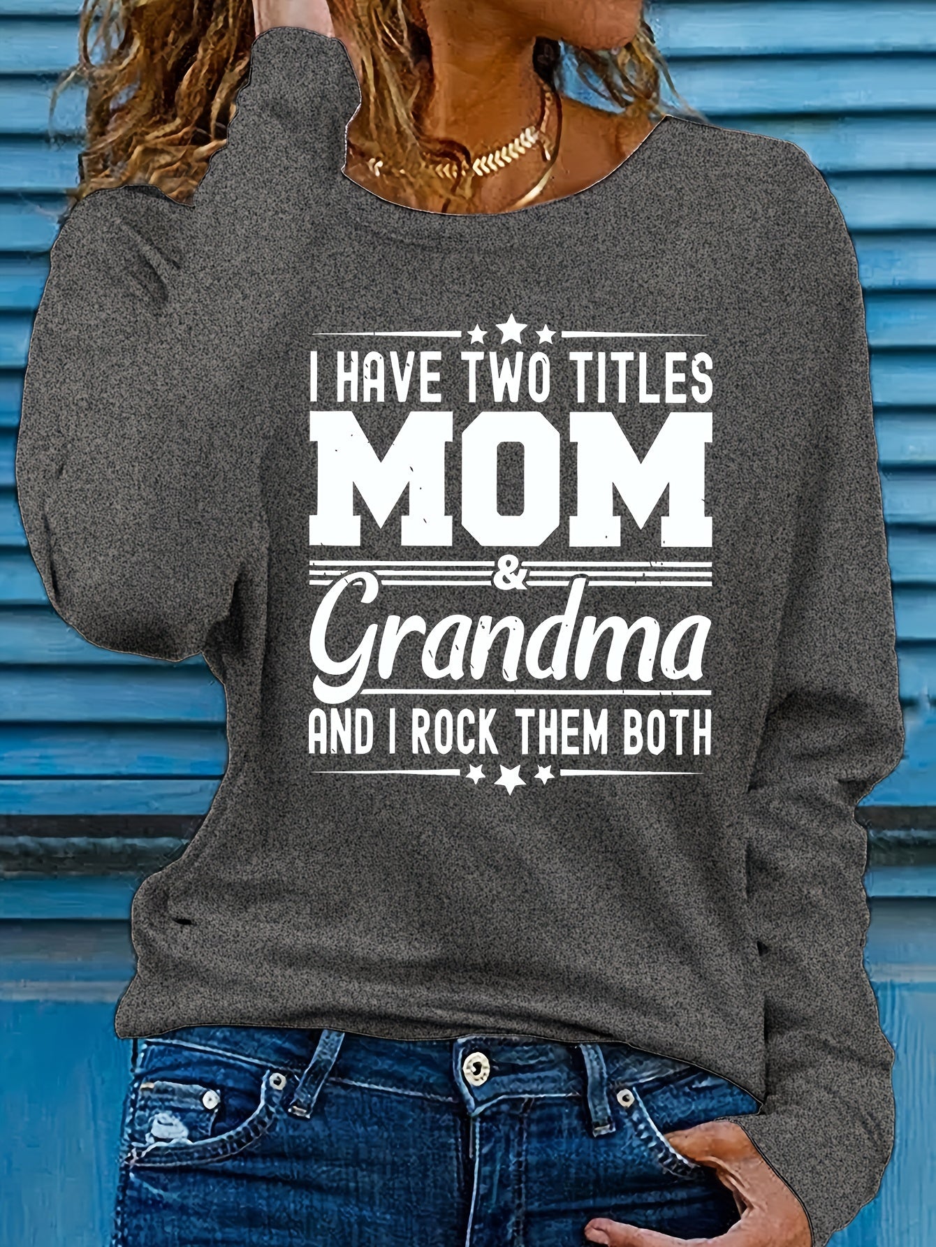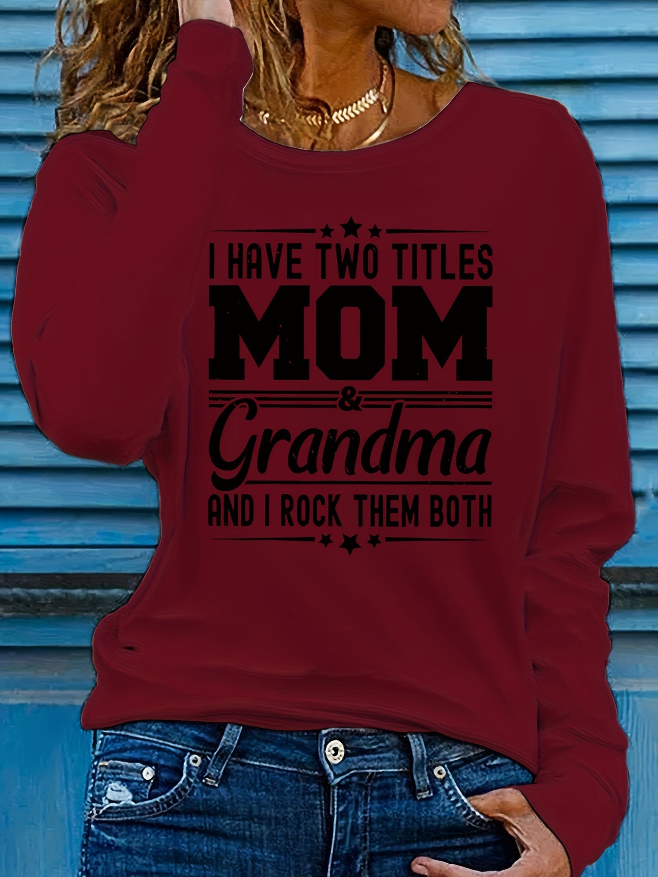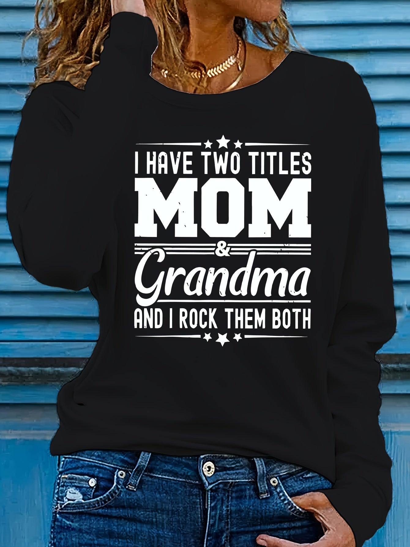 Women'S Long Sleeve Crew Neck T-Shirt with "Mom & Grandma" Letter Print, Casual Polyester Top for All Seasons, Knit Fabric with Medium Stretch, Regular Fit - Applique Detail
