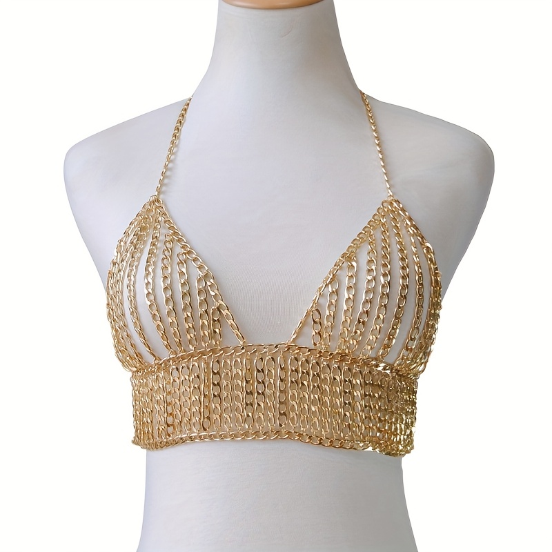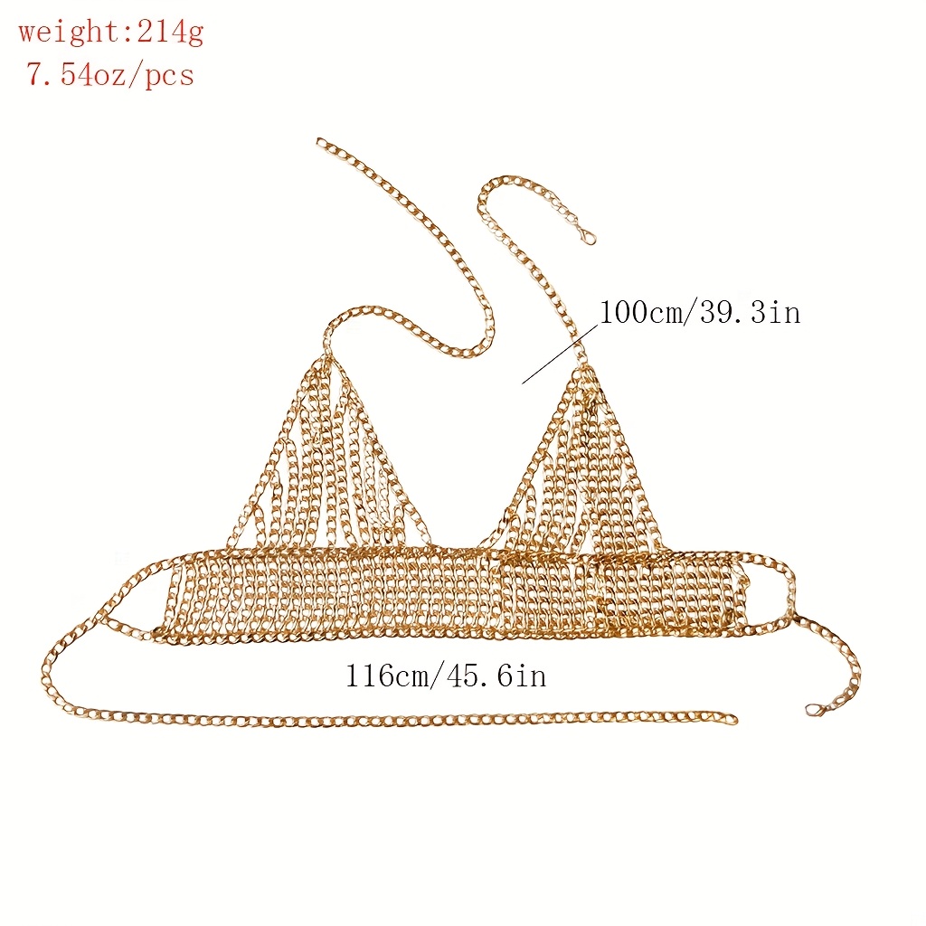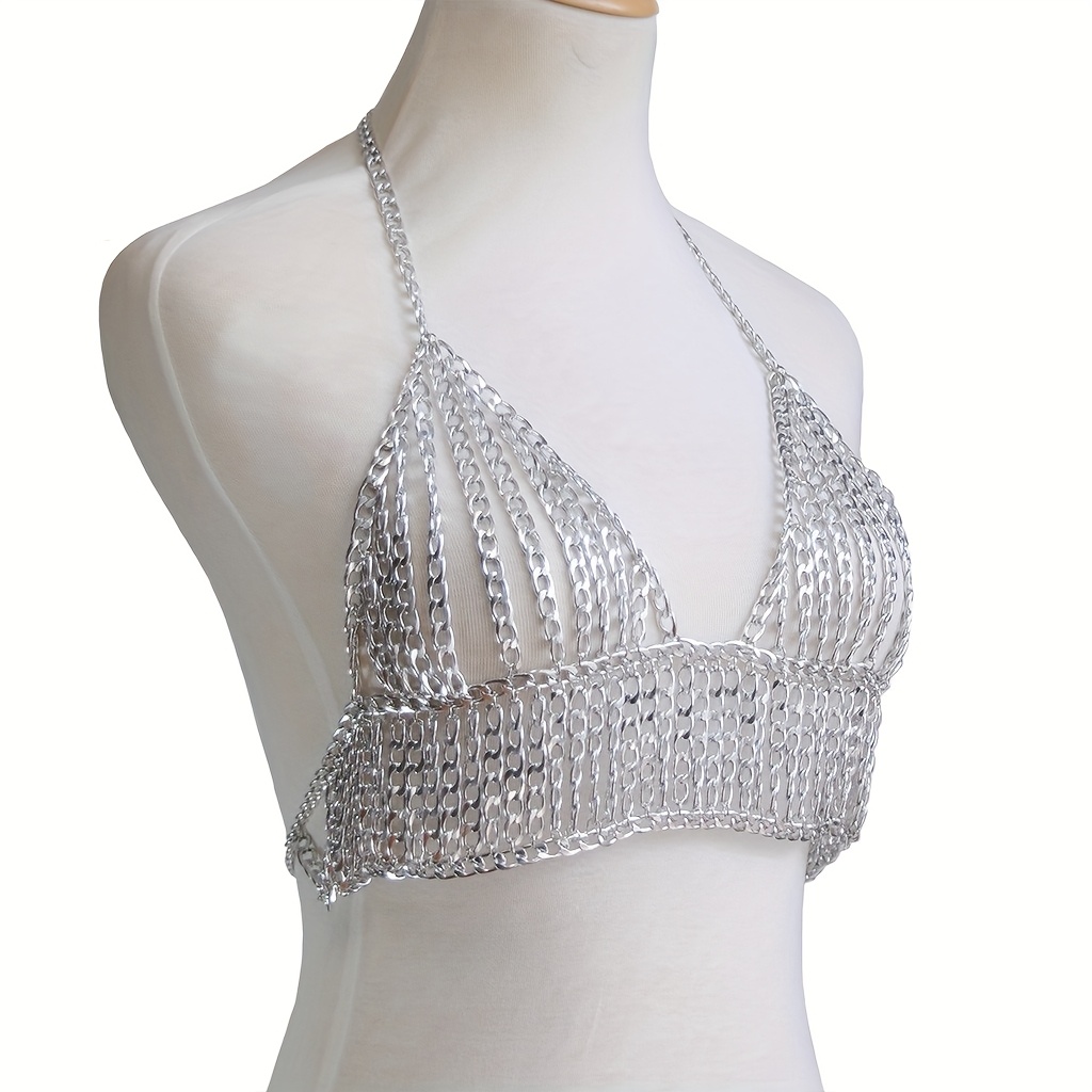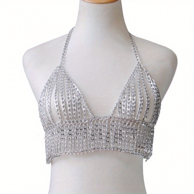 Women'S Stylish Layered Alloy Chain Bikini Top - Glittery Black & White Design, Perfect for Beach, Pool, and Nightlife, Beach Bikini Top | Glittery Chain Top | Detailed Chainwork, Beach Bikini