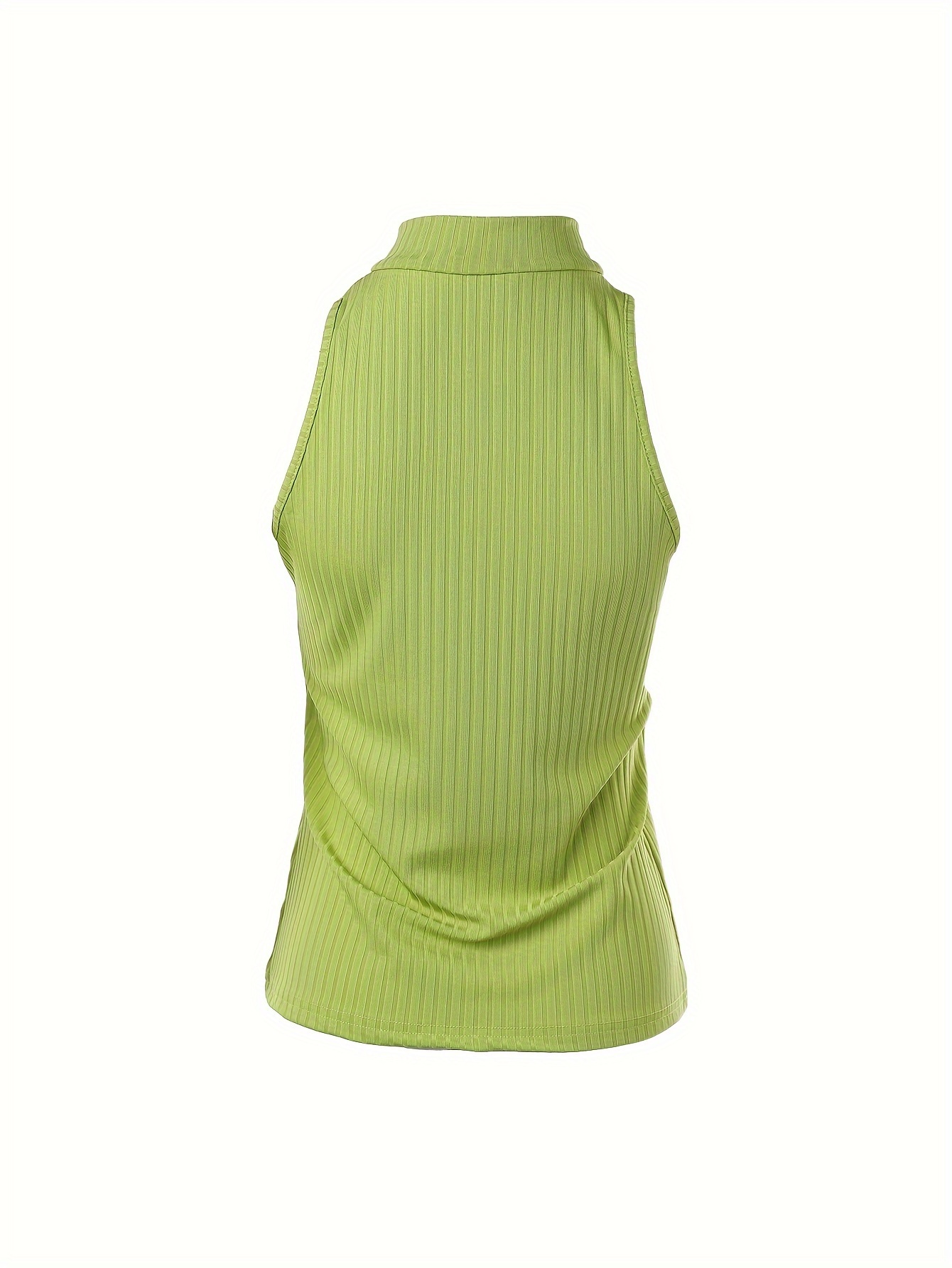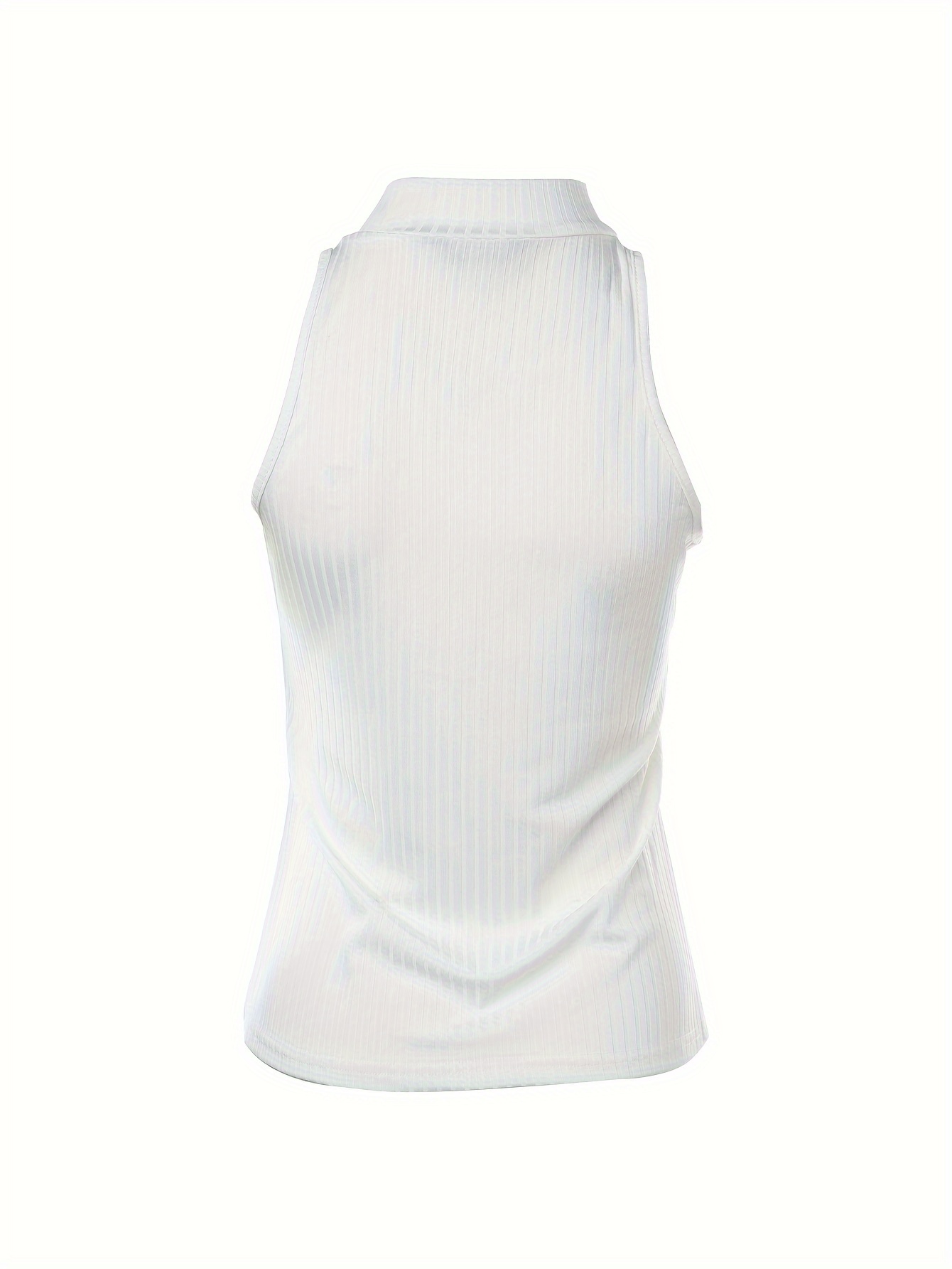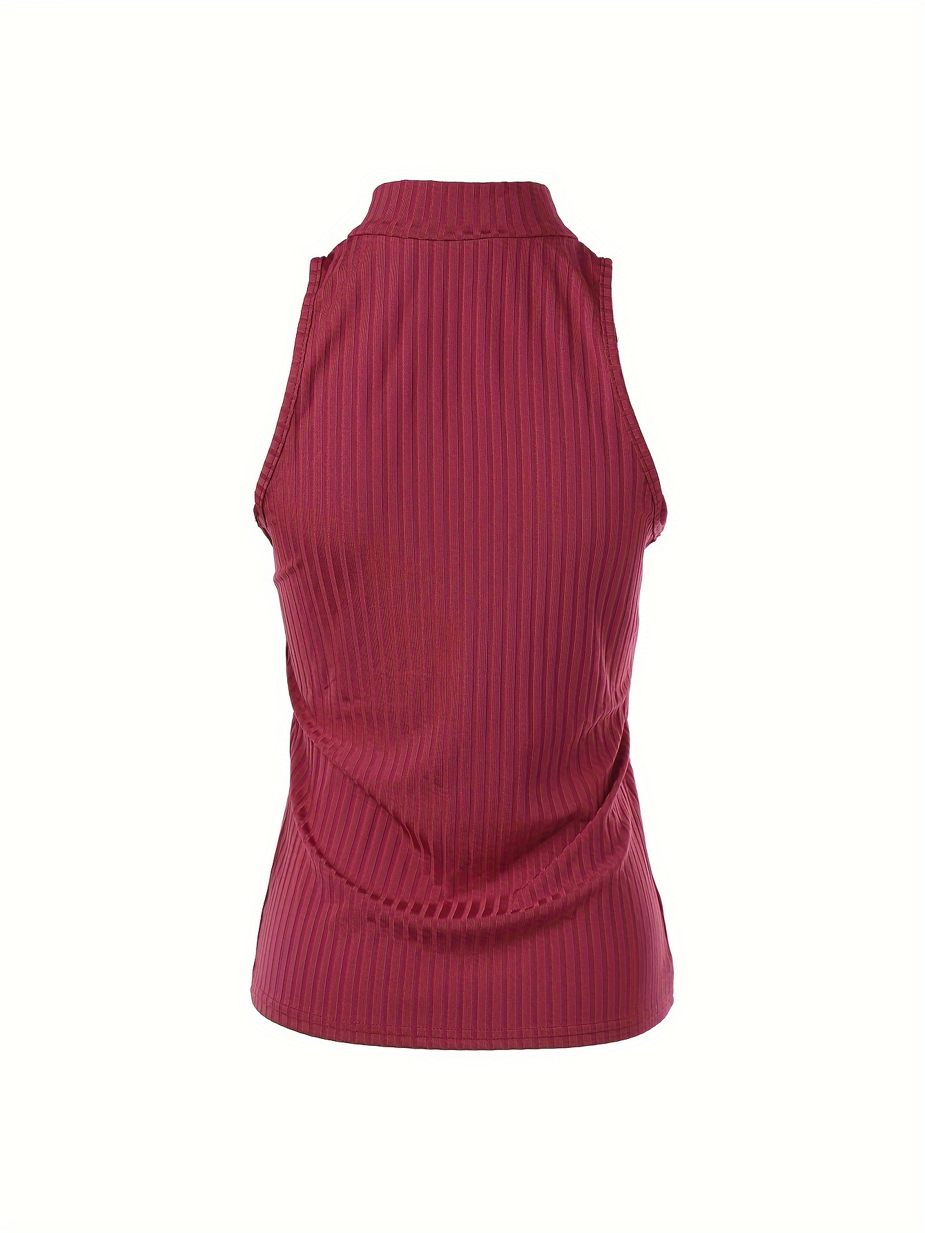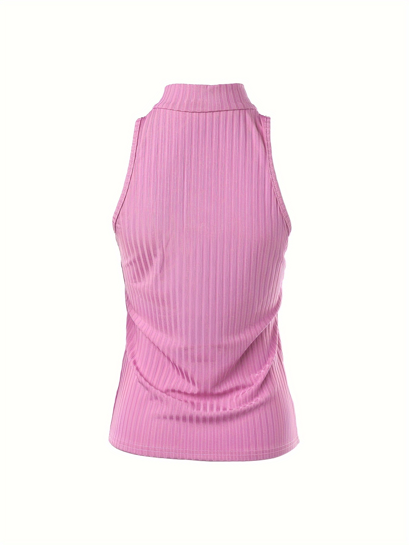 Zip Up Solid Tank Top, Casual Ribbed Sleeveless Tank Top For Summer, Women's Clothing