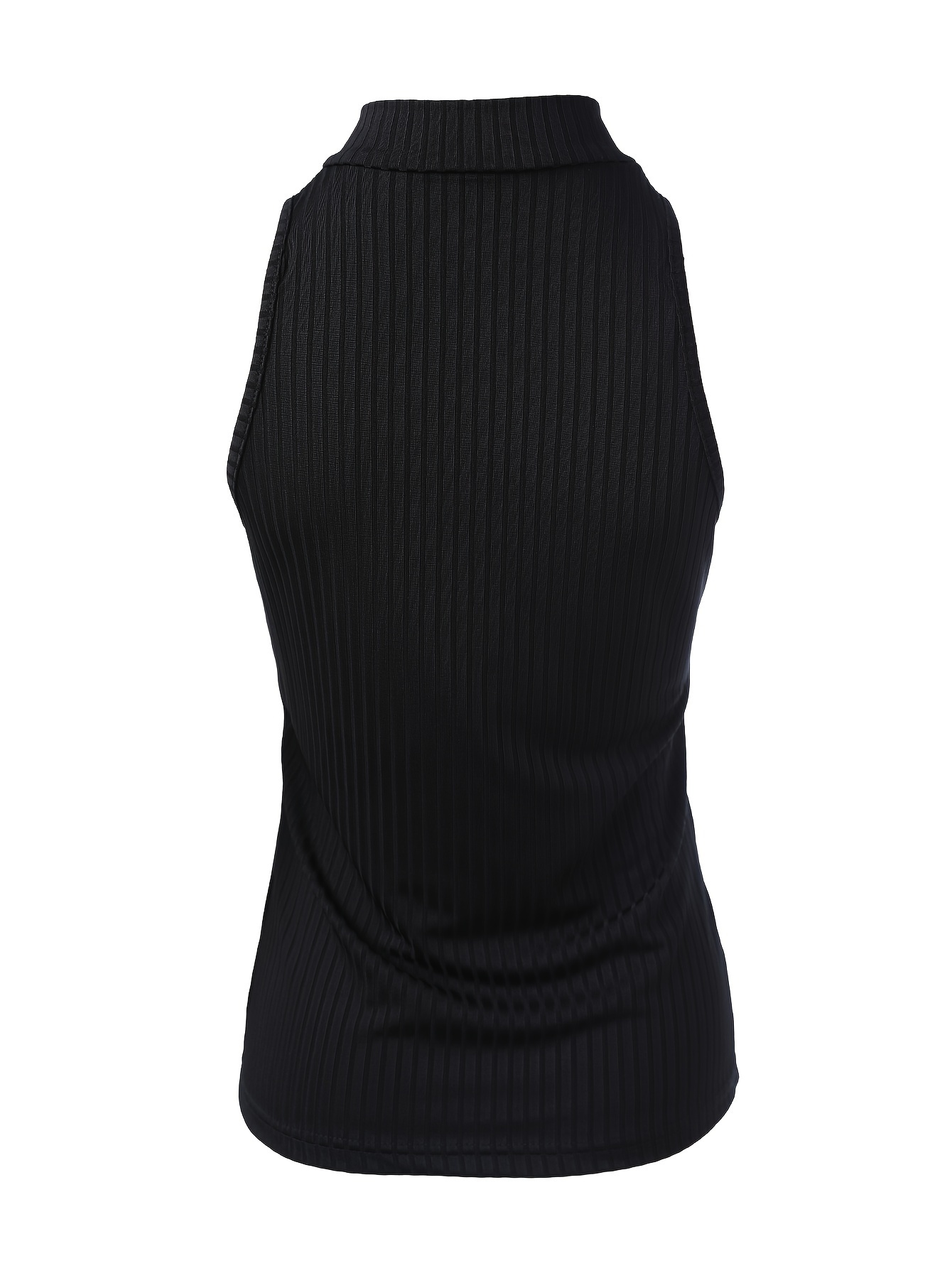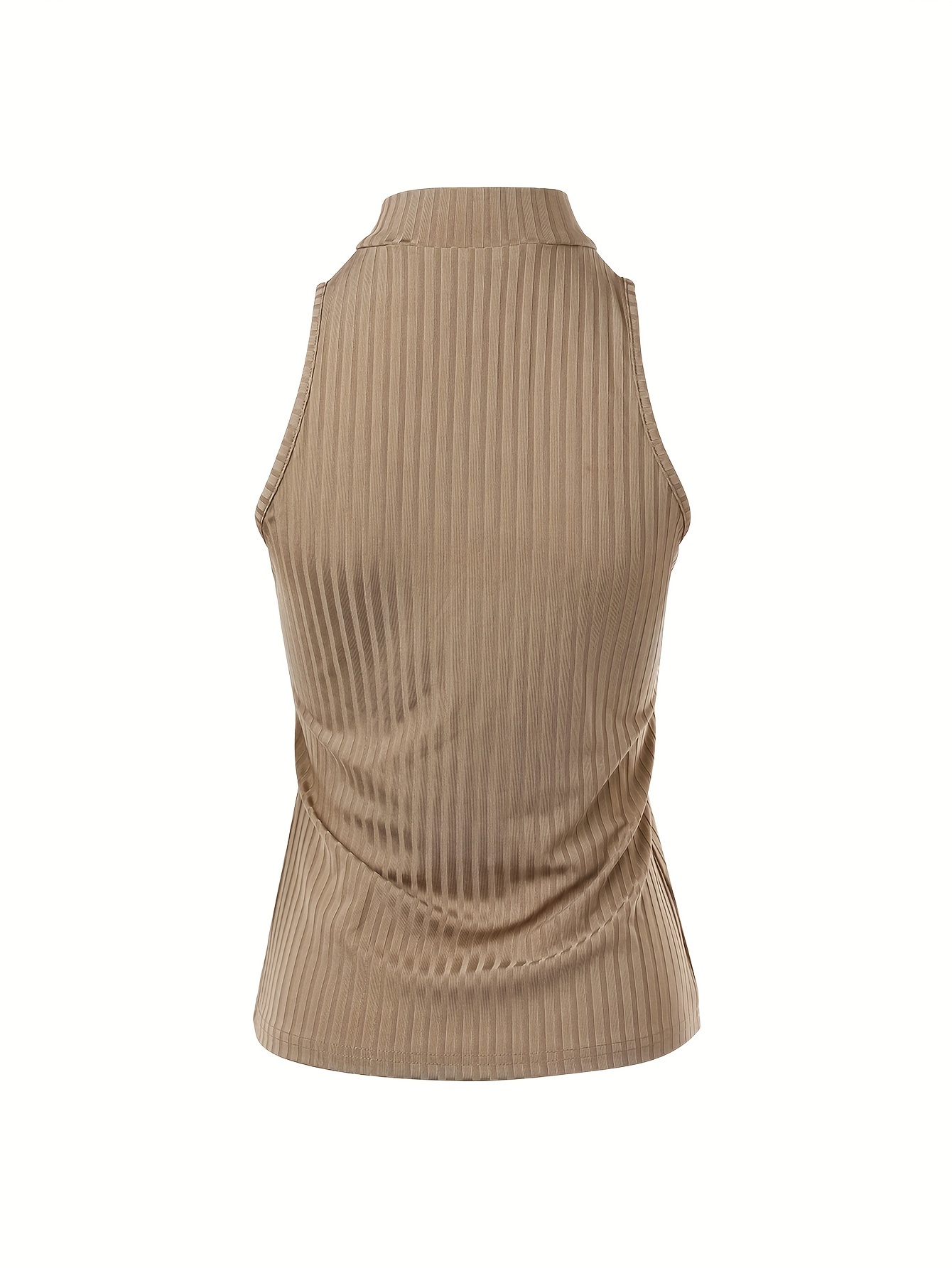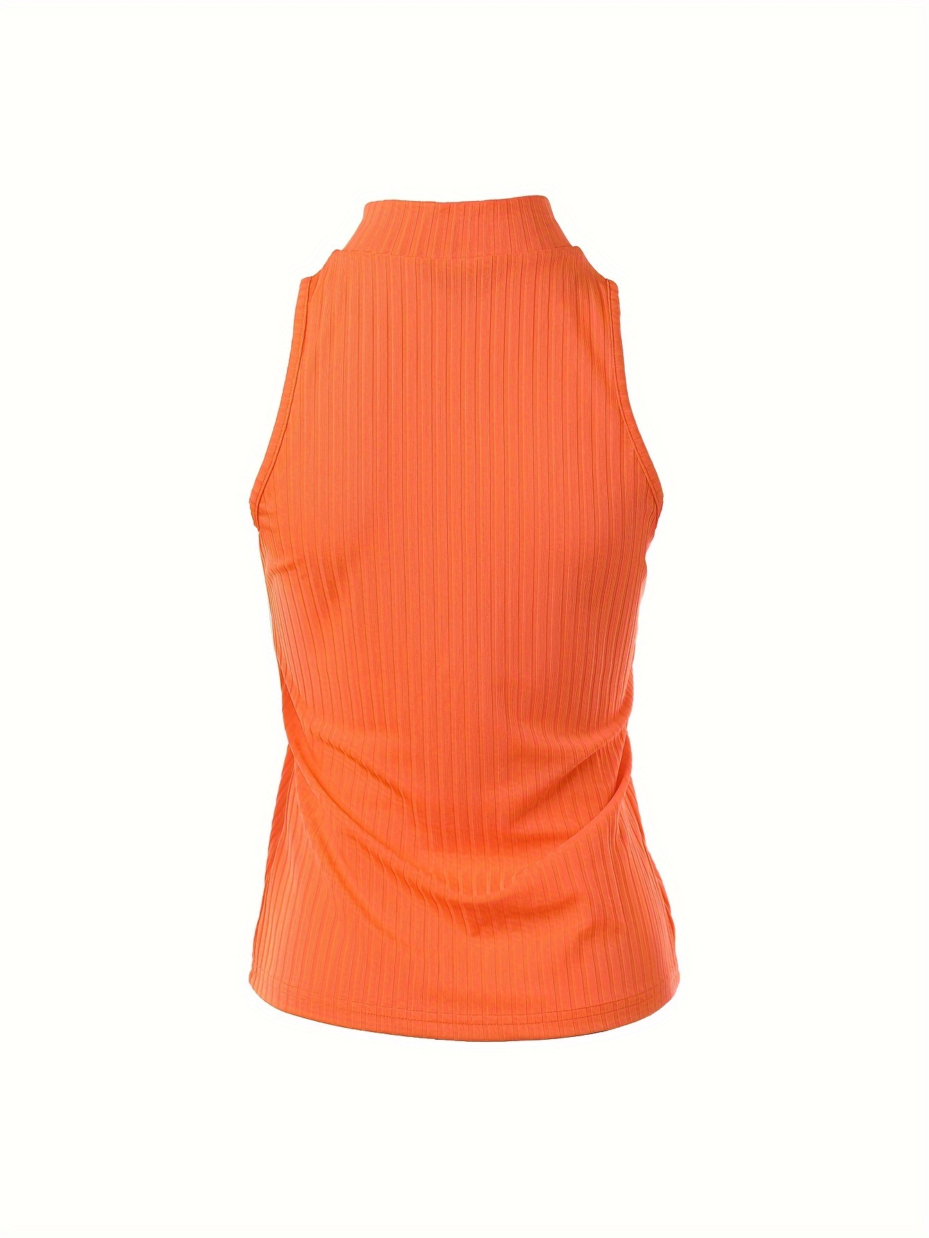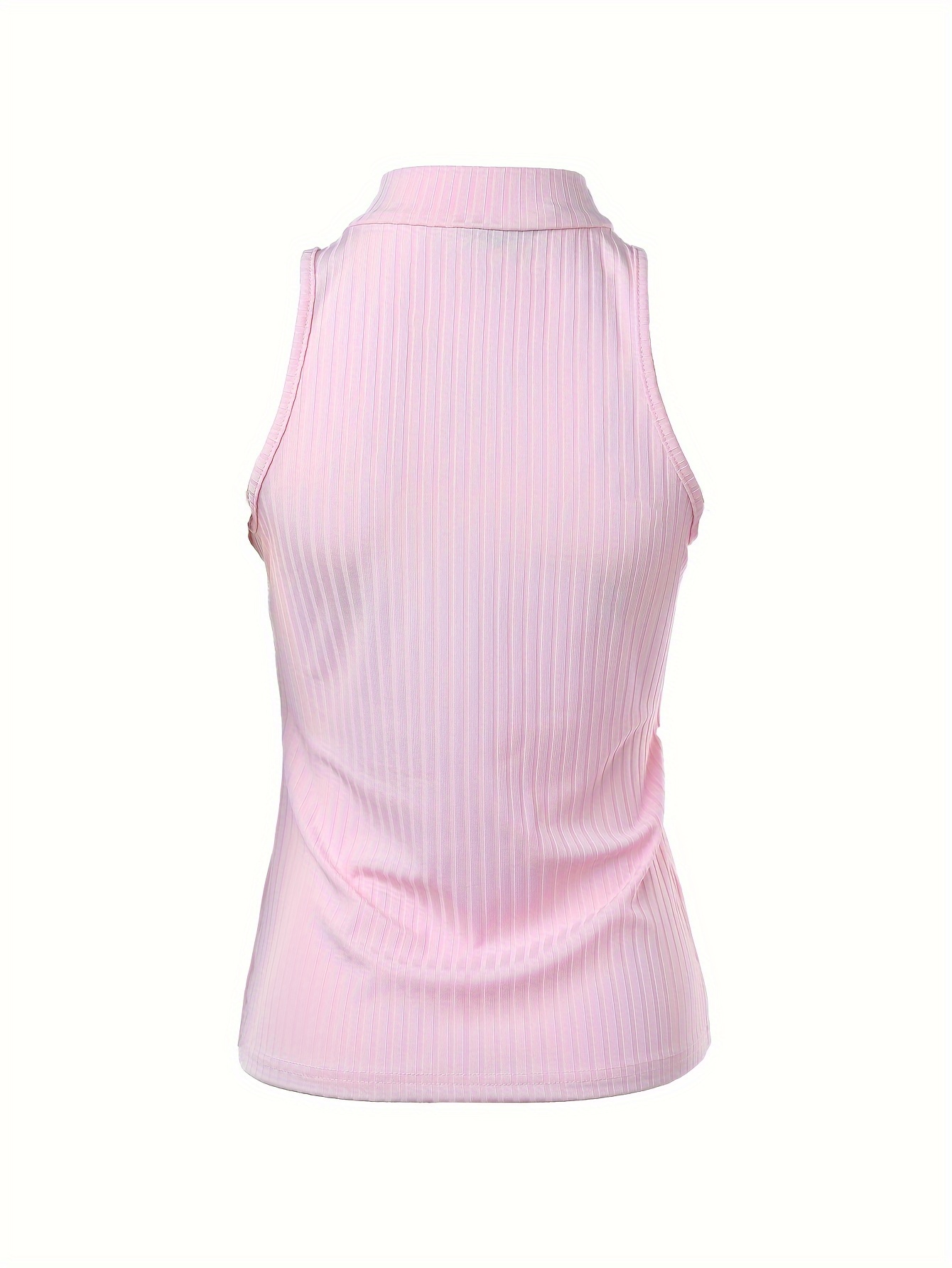 Zip Up Solid Tank Top, Casual Ribbed Sleeveless Tank Top For Summer, Women's Clothing