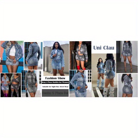 Denim Skirt Set 2pcs Denim Skirt Set for Women Y2K Long Sleeve Zipper Jean Jacket Top Mini Skirt Bodycon Set Two Piece Outfits Long Sleeve Zip Up Jacket Top And Matching Mini Skirt with Pockets