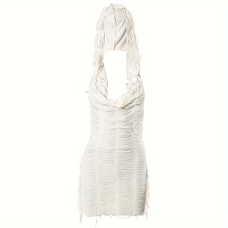 Chic Summer Sleeveless Hooded Dress for Women - Sexy Solid Color Casual Mini with Tassel Detail, Ribbed Texture, Stretchy Polyester Blend, Machine Washable
