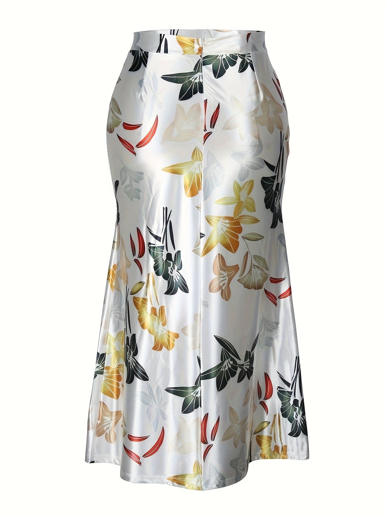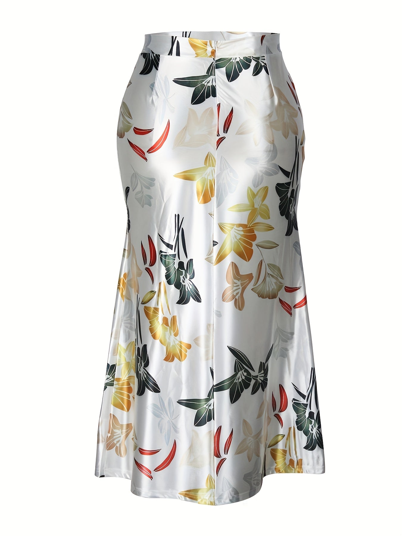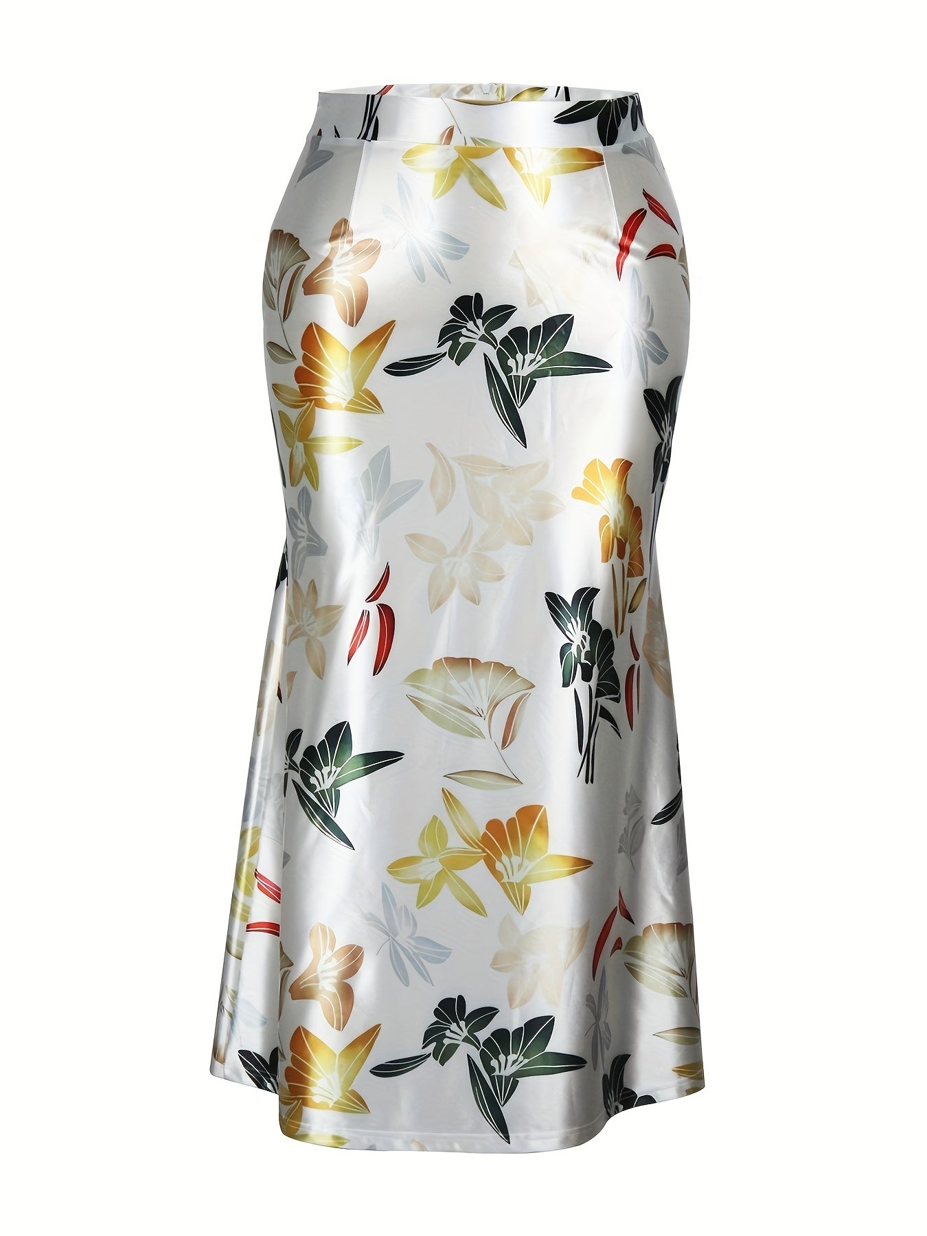 Women's Elegant Floral Print Stretchy Mermaid Skirt - Plus Size Long Flowy Polyester-Spandex Blend, Machine Washable All-Season Midi Skirt for Casual & Formal Wear, Comfortable Fashion | Highwaisted Skirt | Flexible Wear