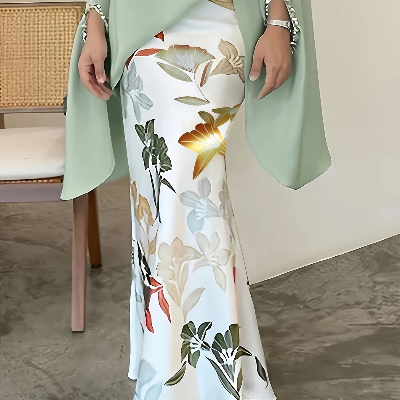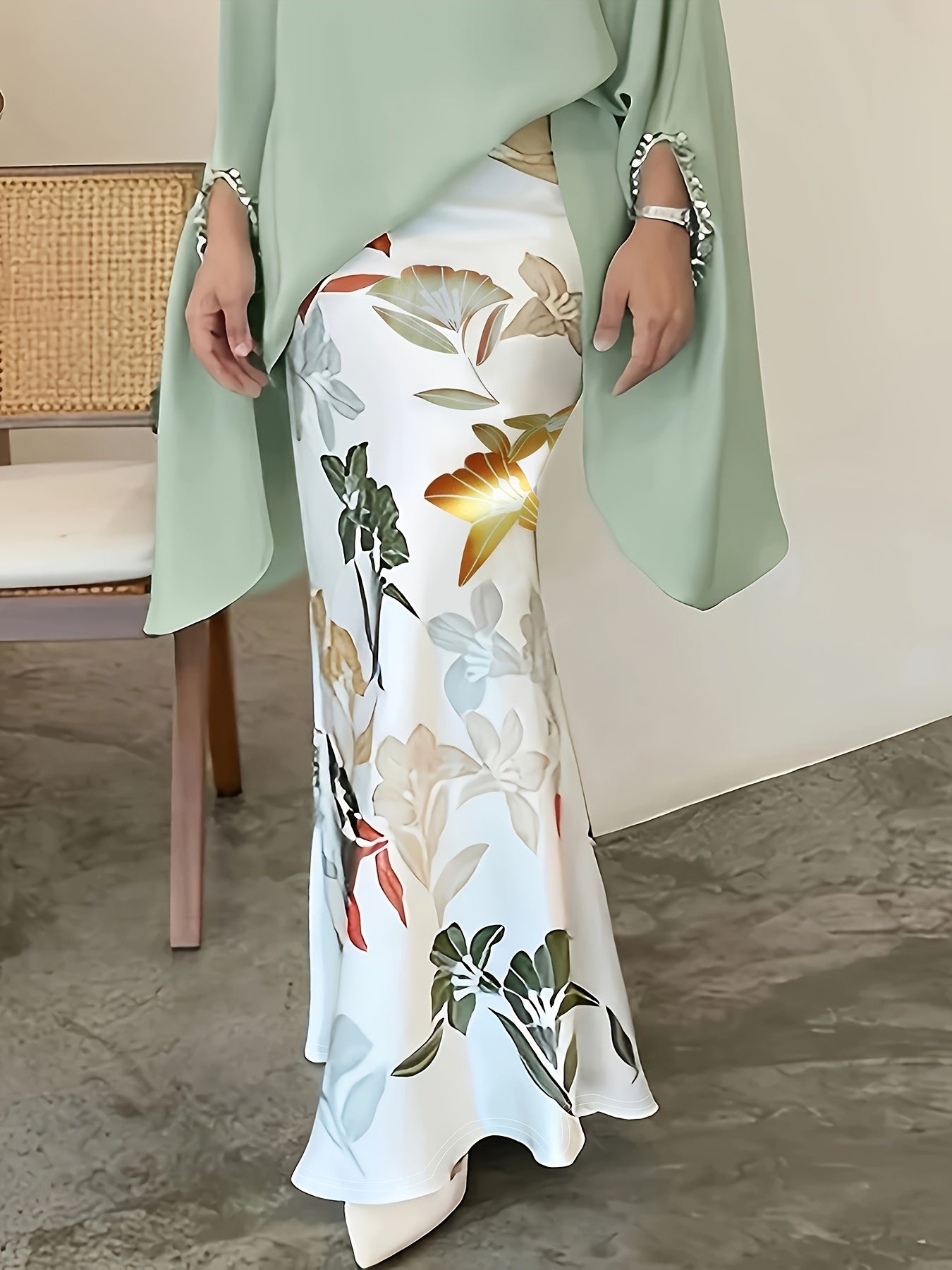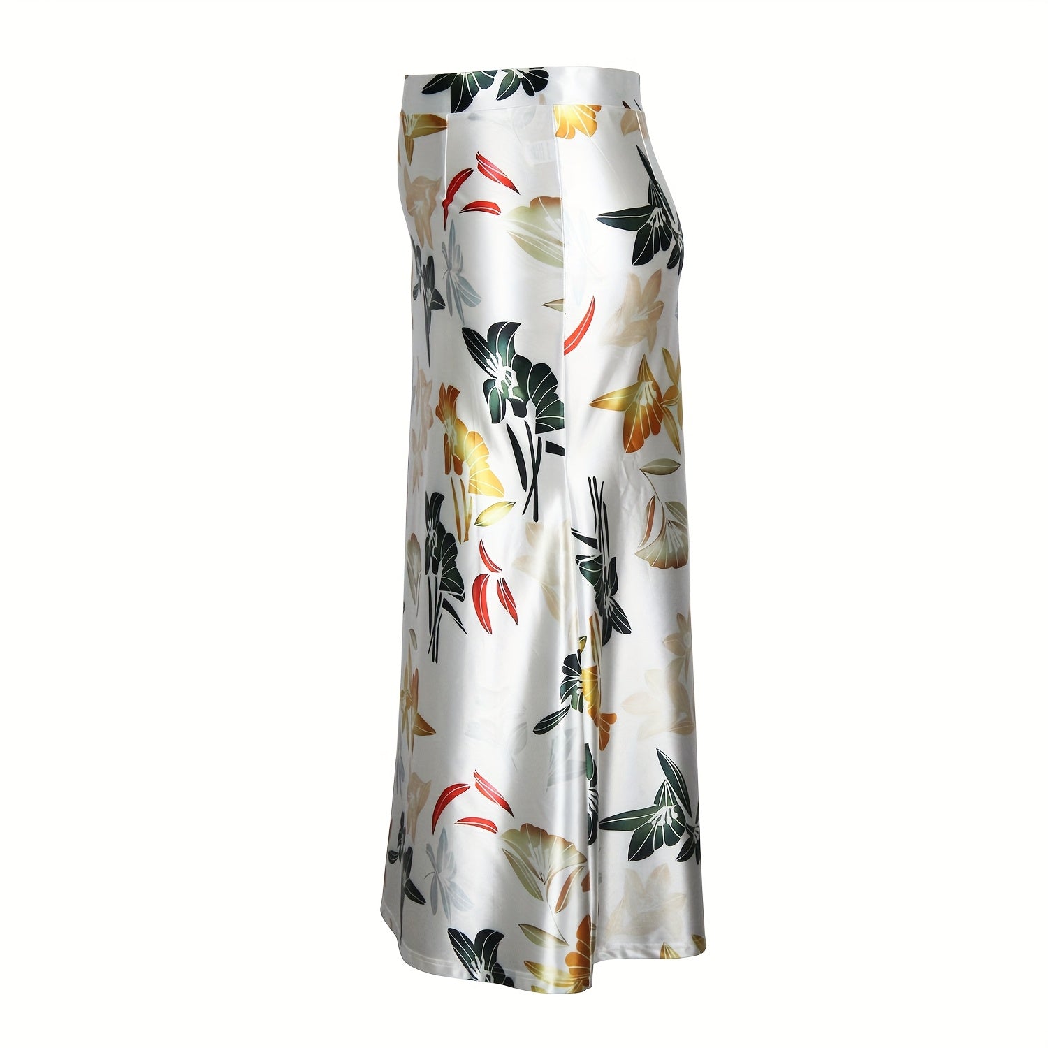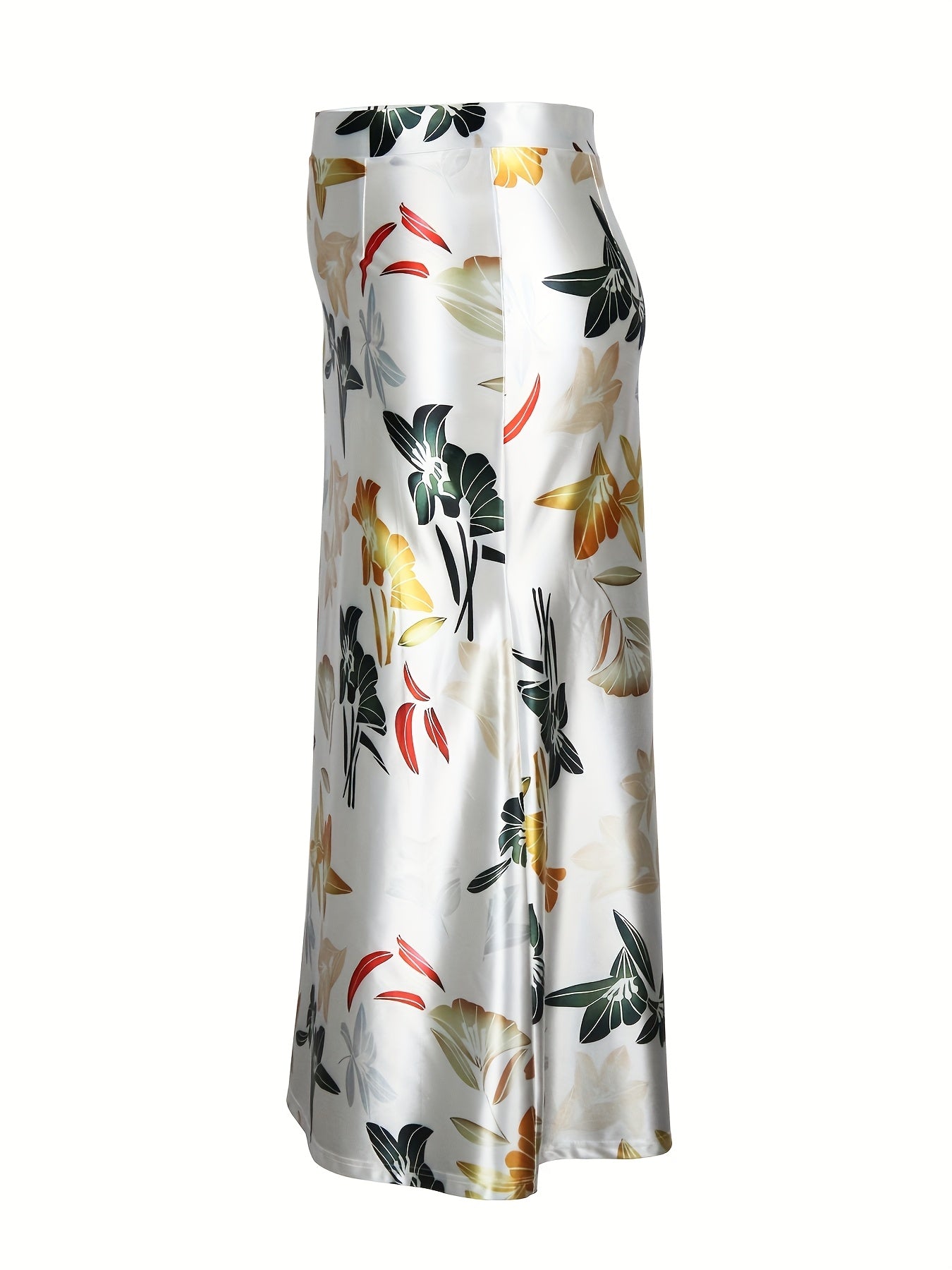 Women's Elegant Floral Print Stretchy Mermaid Skirt - Plus Size Long Flowy Polyester-Spandex Blend, Machine Washable All-Season Midi Skirt for Casual & Formal Wear, Comfortable Fashion | Highwaisted Skirt | Flexible Wear