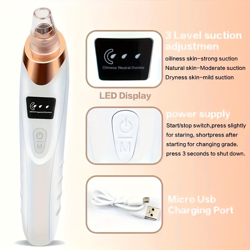 1pc Rechargeable Blackhead Vacuum with 5 Probes - Portable Deep Cleansing Facial Care Device for Gentle & Safe Pore Cleanser, USB Charging, Ergonomic Design, Skin Cleansing Vacuum | Sleek Blackhead | Multiuse Probes