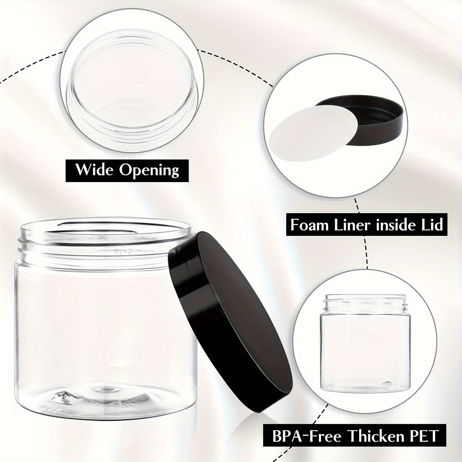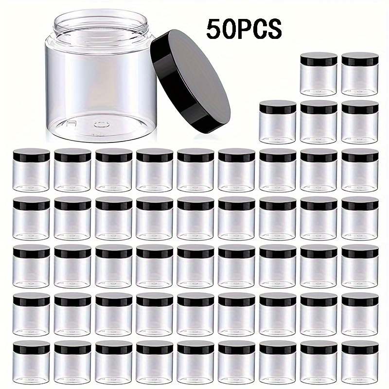 50-Pack 4oz Plastic Jars with Lids and Labels - BPA-Free Clear Round Multipurpose Containers, Hand Washable with Flip Top for Lotions, Creams, Body Butters, Slime, Cosmetics, Beads, Samples & Travel Storage - Reusable & No El