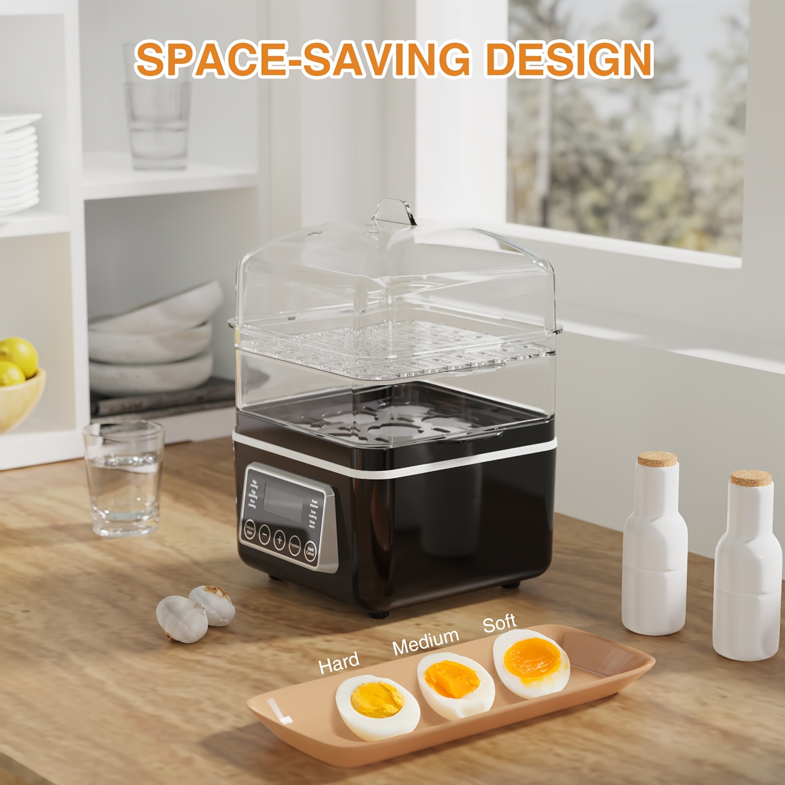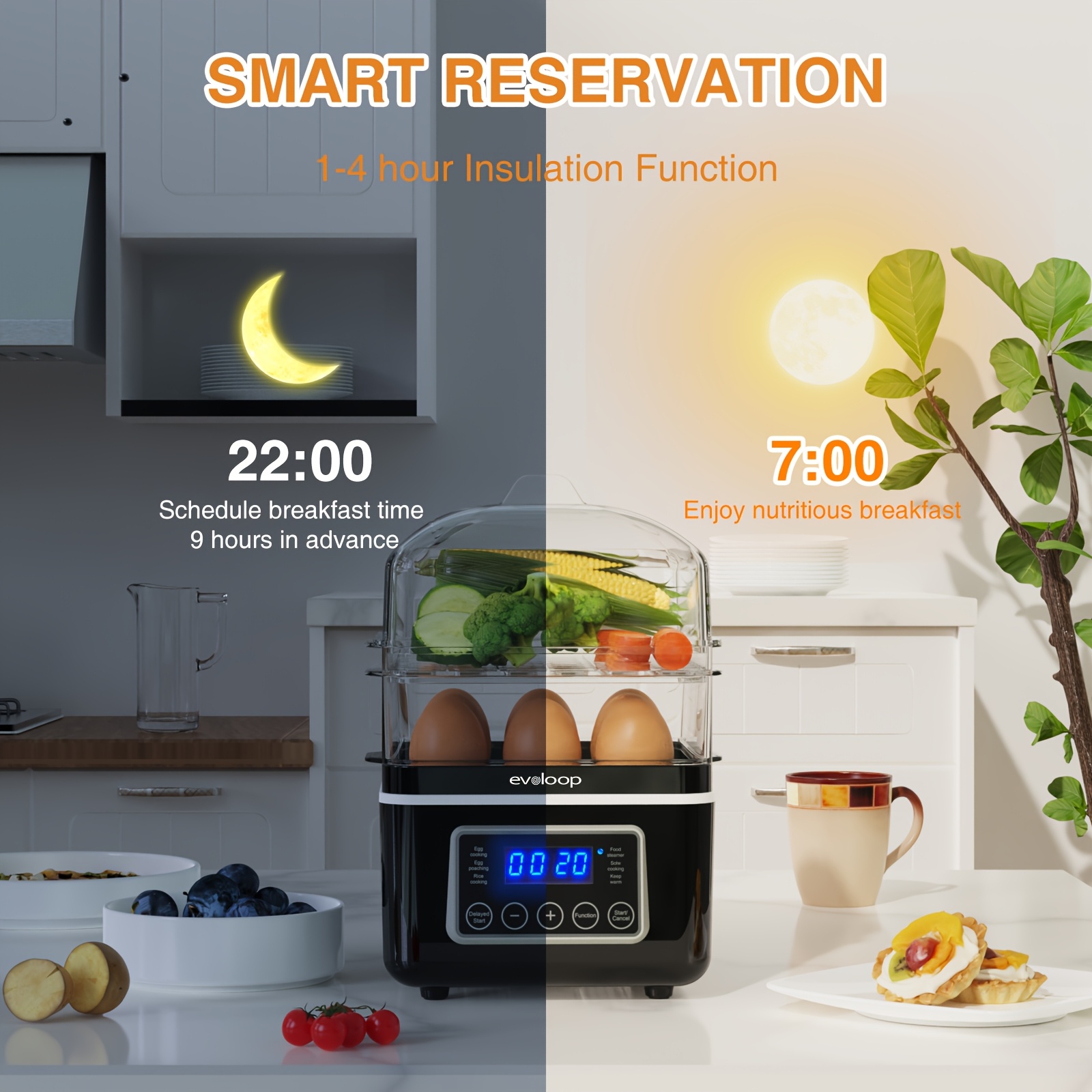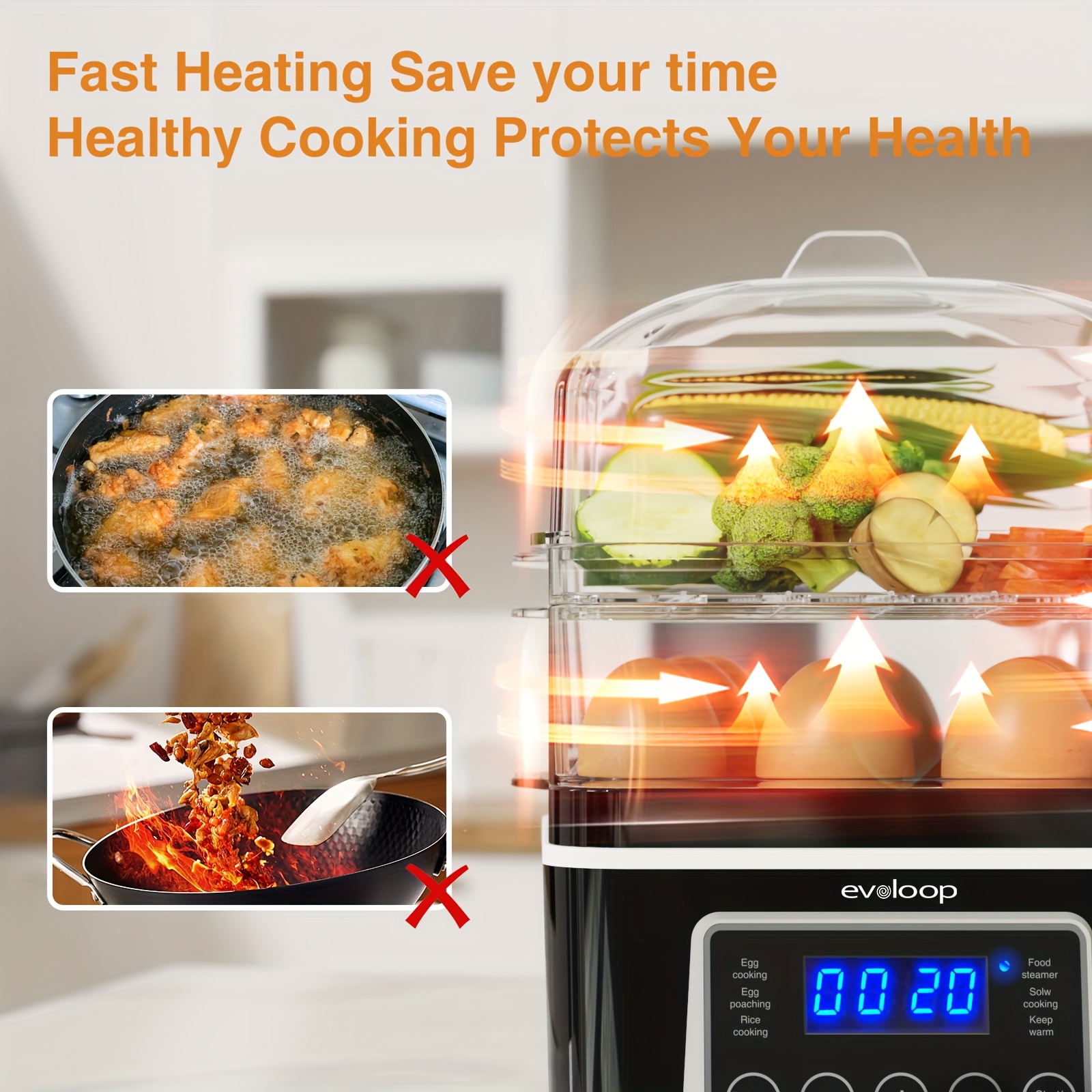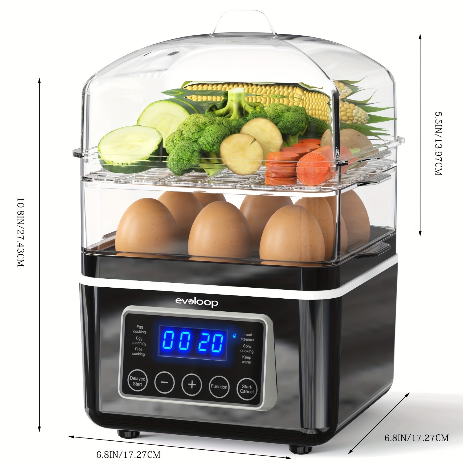 Evoloop Rapid Egg Cooker Egg Steamer With Auto Shut-Off, Ideal For Veggies, Seafood, 2 Tiers Electric Food Steamer For Cooking, Rice, 4 QT Digital Multi Vegetable Steamer With BPA-Free Stackable Baskets