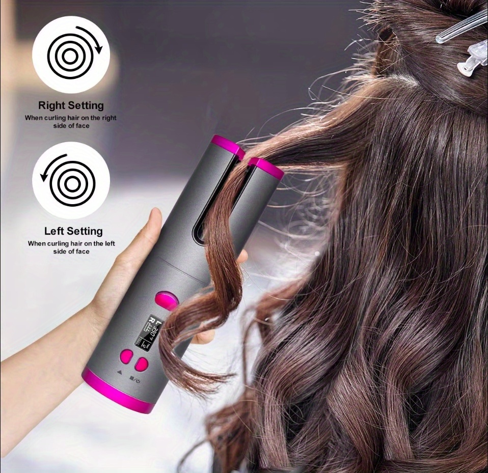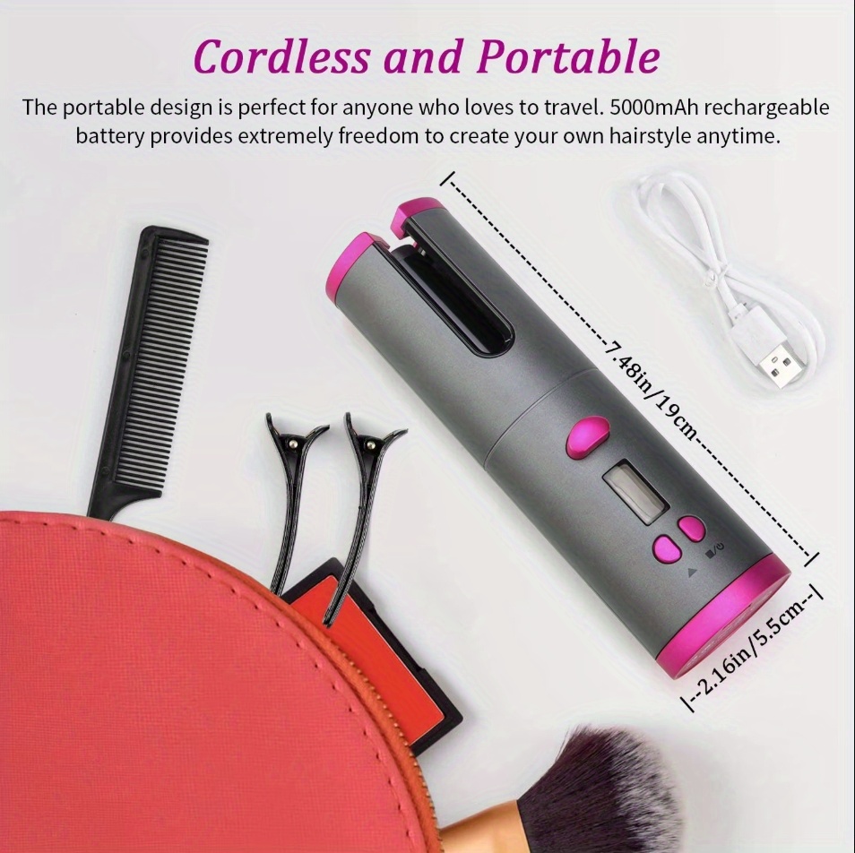 Portable Wireless LCD Display Rechargeable Ceramic Heating Antiperm Hair Curlers Automatic Electric Power Source Curling Irons