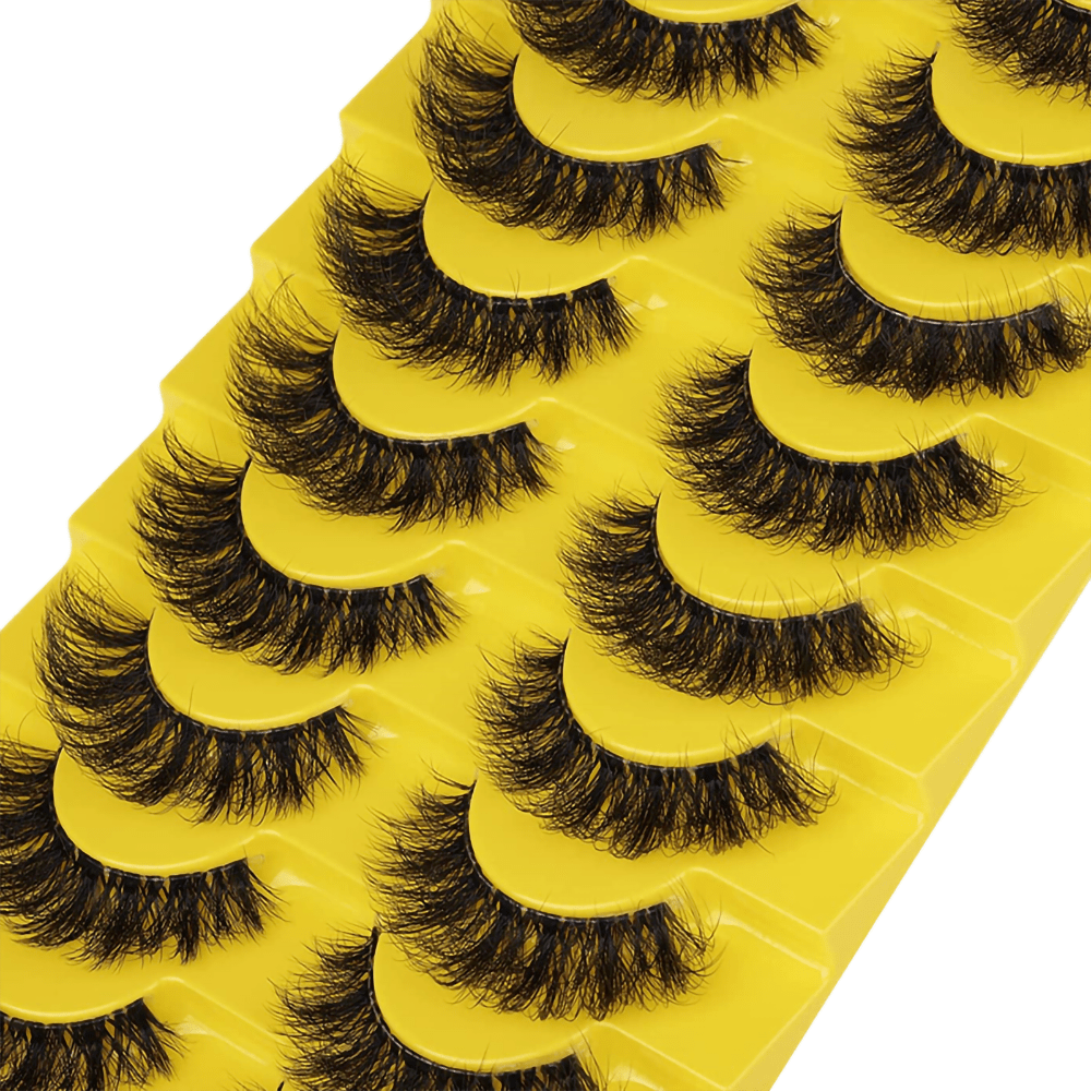 10 Pairs Luxurious 3D Faux Mink Eyelashes - Fluffy, Soft, Wispy Volume - Natural Long E-Girls Style, D Curl, 10-12mm - Perfect for Dramatic Eye Enhancement