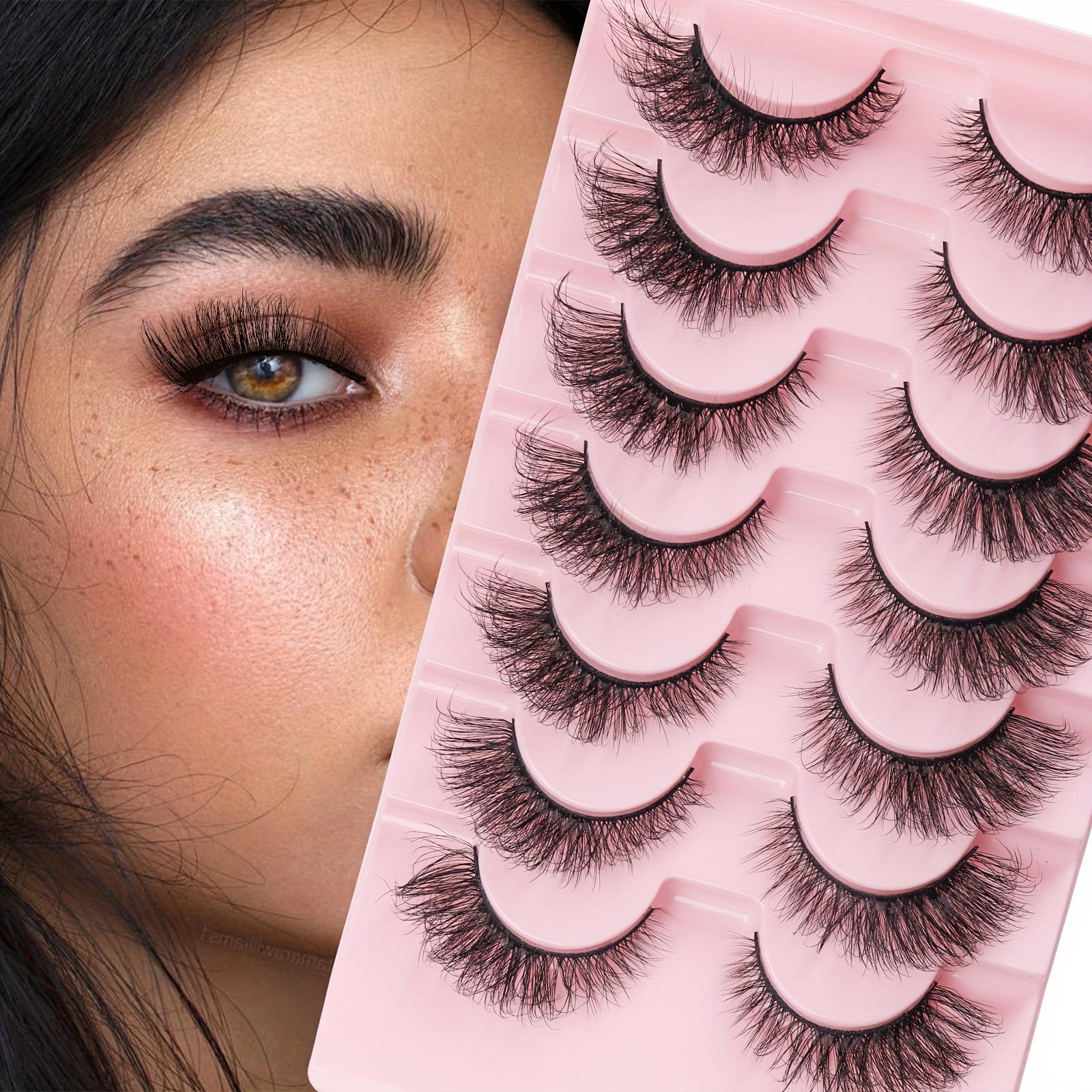 MilyBest 10 Pairs Wispy Natural Look Cat Eye False Eyelashes, 3D C Curl, Recyclable & Reusable, Beginner-Friendly, Variety of Lengths (6-15mm), Includes Pink Tray for Easy Storage, Dramatic Eyelashes | Voluminous Lashes | Ele
