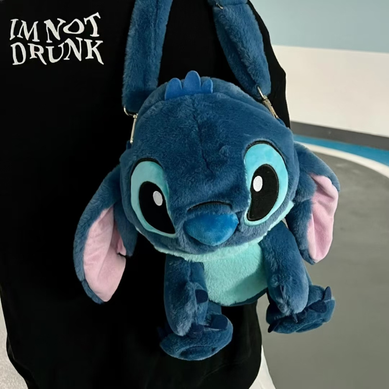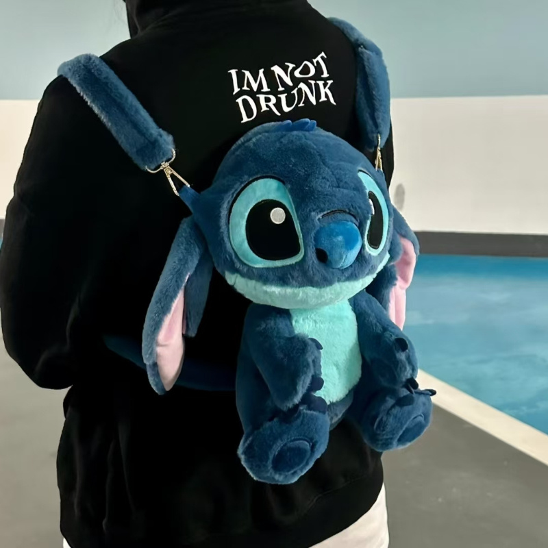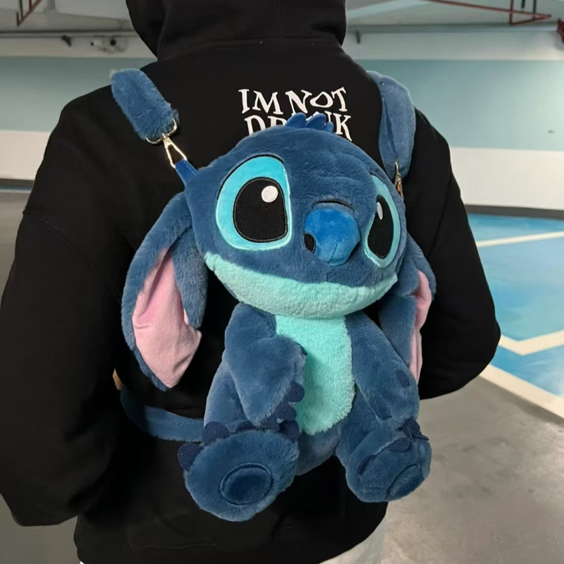 1pc Stitch Plush Backpack - Blue & Pink Dual-Strap Shoulder Bag, Soft Polyester Travel & Commuting Accessory for Women & Men, Zipper Closure, Random Style, Backpack