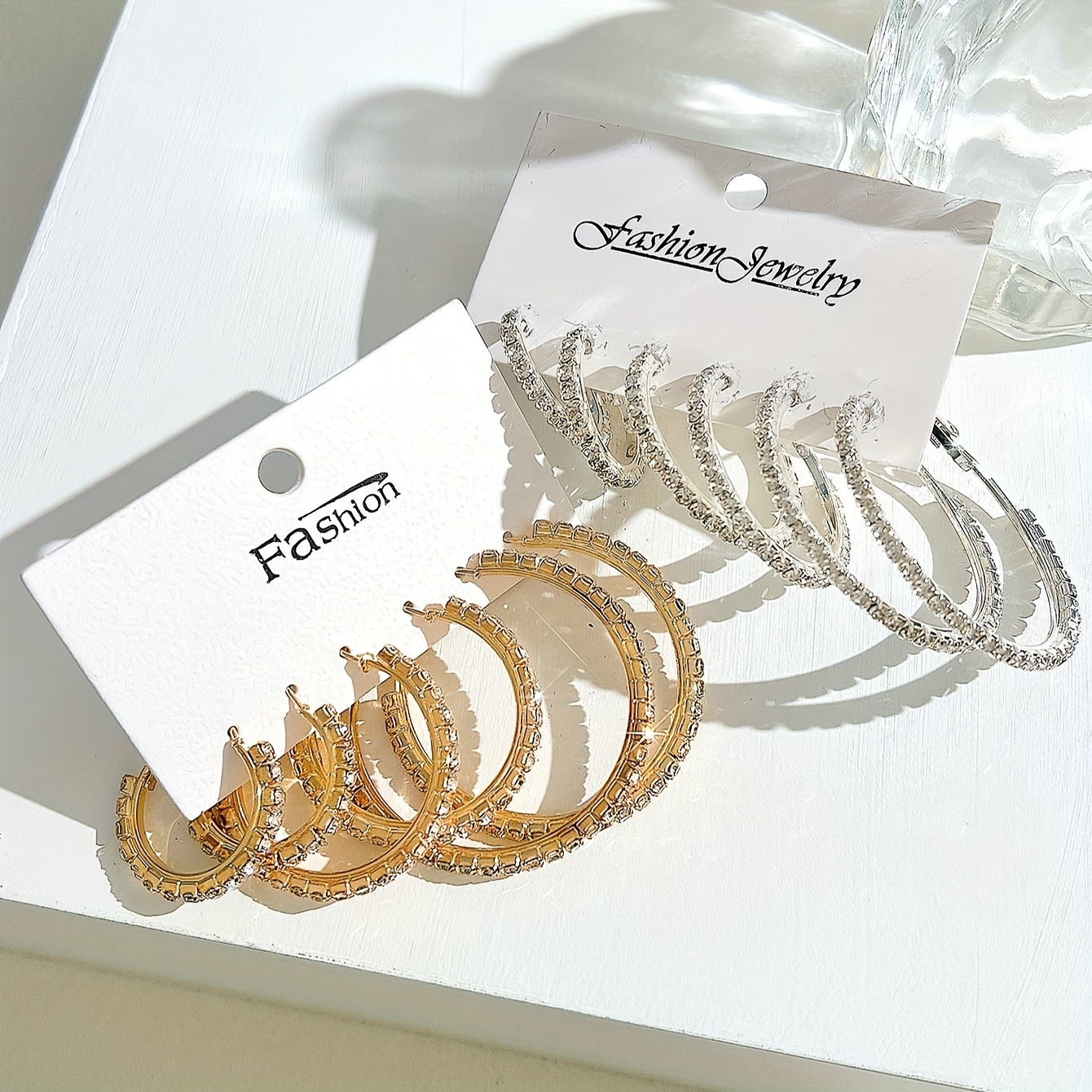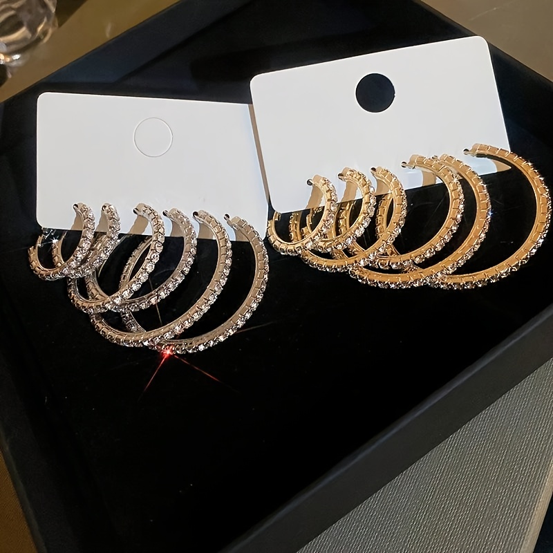 12pcs Women's Elegant & Sexy Hoop Earrings Set, Rhinestone Embellished, Alloy with Stainless Steel Post, Versatile for Daily Wear & Special Occasions, Perfect Valentine'S Day Gift - All Seasons Jewelry Collection