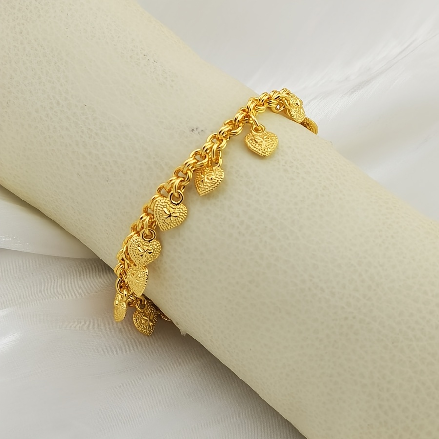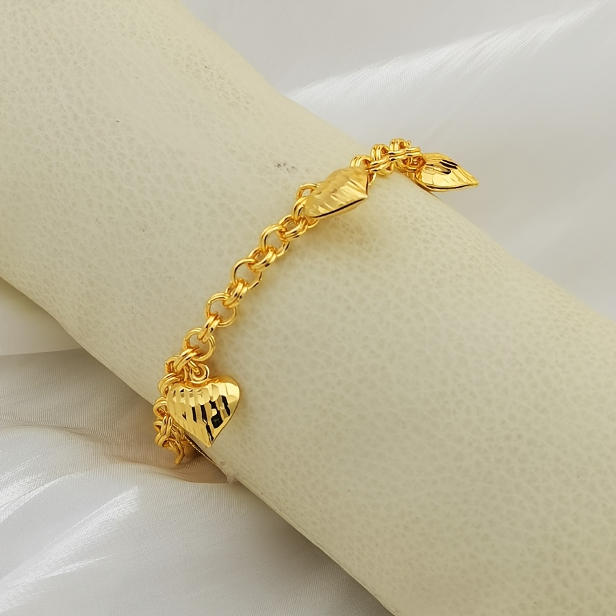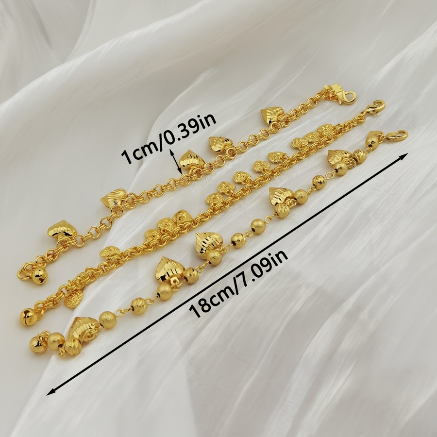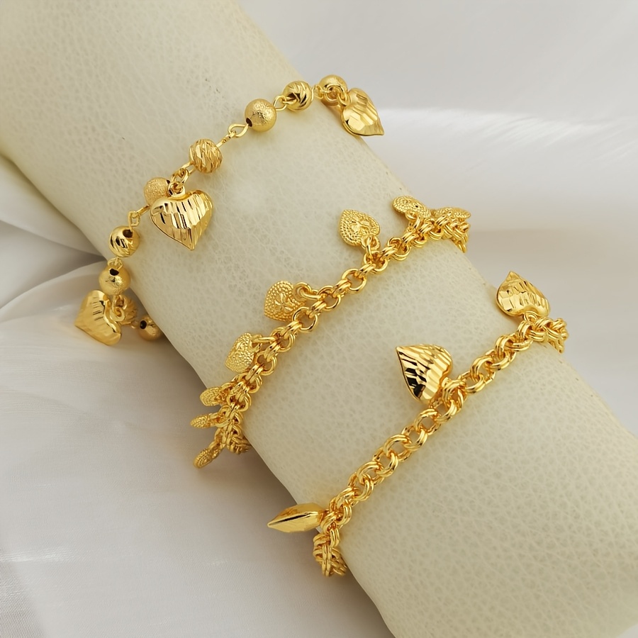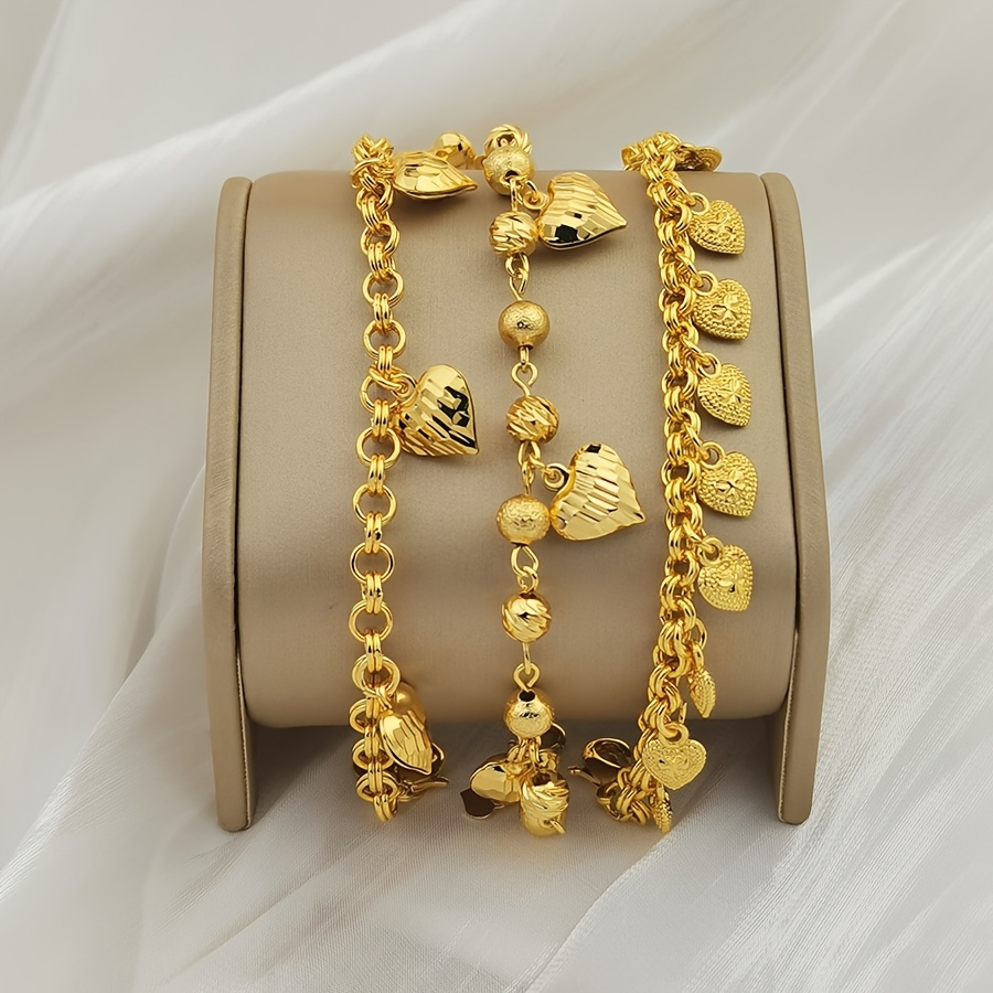 3pcs Luxurious Golden-Toned Heart Pendant Bracelet Set for Women - Boho Chic Style, Ideal for Weddings, Birthdays, Parties, Valentine's & Ramadan Gifts, Jewelry Set