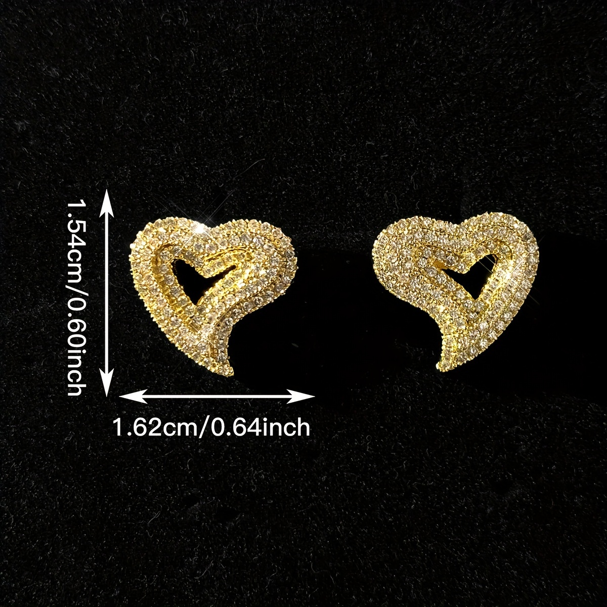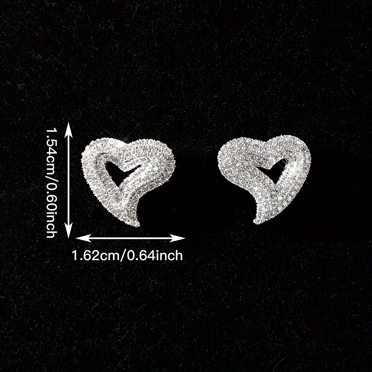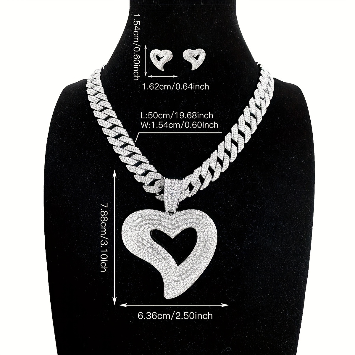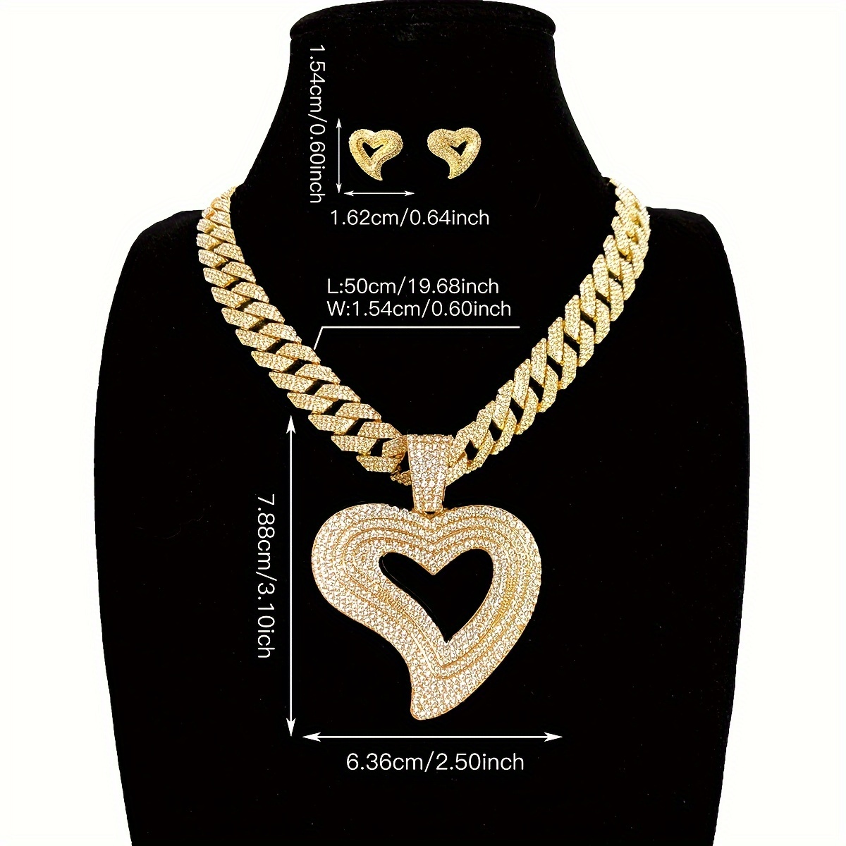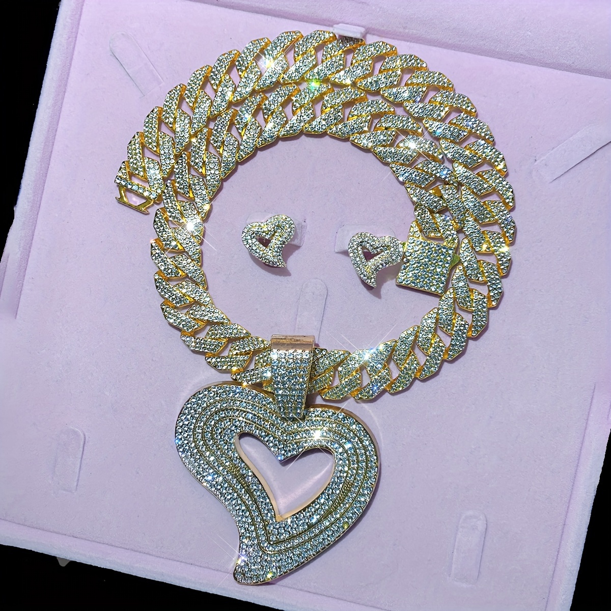 Y2K Elegant Rhinestone Heart Pendant Necklace and Earrings Set - Synthetic Jeweled Cuban Link Chain - Zinc Alloy Jewelry for Daily & Festival Occasions - Ideal Valentine's Gift