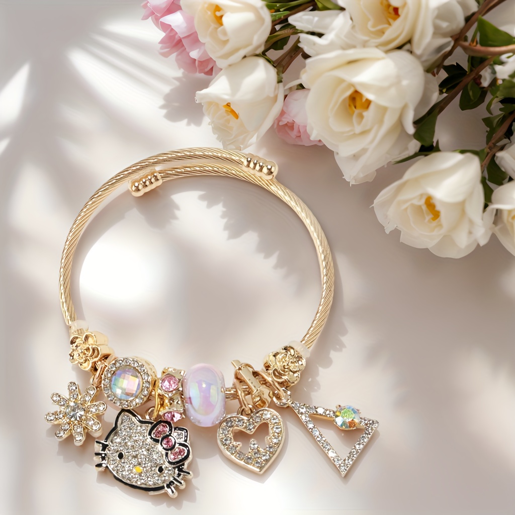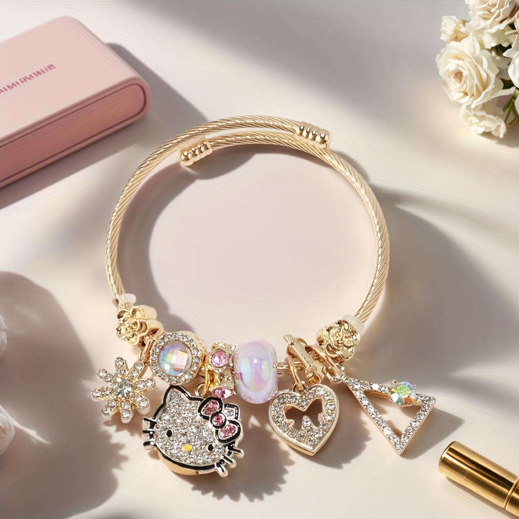Sanrio for hello kitty Pendant Necklace, Cute Cartoon, Adjustable, Hollow, Zinc Alloy, Durable, with Shiny Beads, for Teenagers, Valentine'S Day