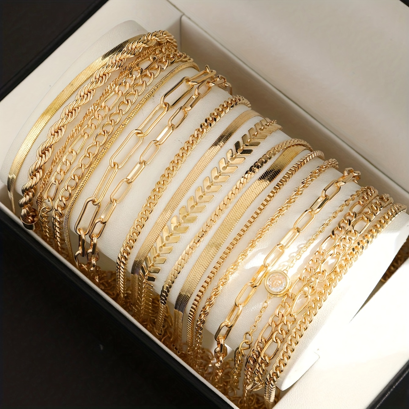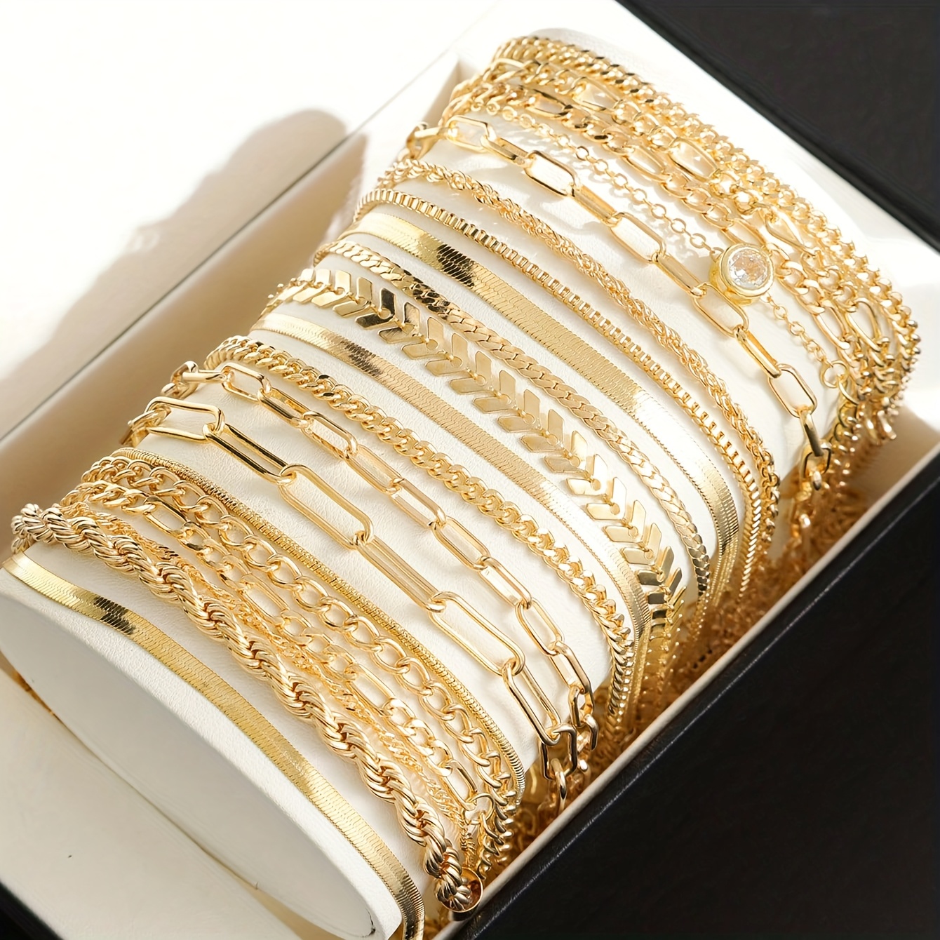 20pcs/Set Fashionable Minimalist Elegant Chic Retro Design Crystal Snake Bone, Braided, Airplane, Simplistic Metal Chain Bracelets, Multi-Style Assorted Jewelry Set, Suitable For Holidays, Parties, Dates, Gifts, Everyday Wear