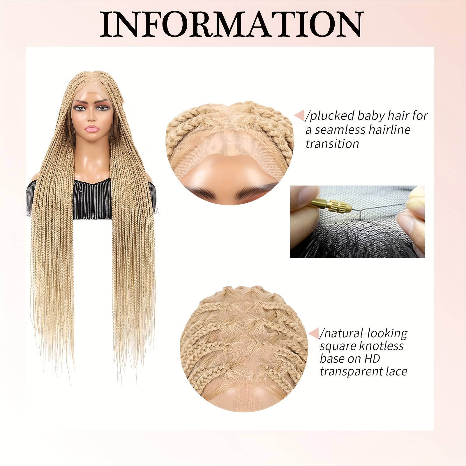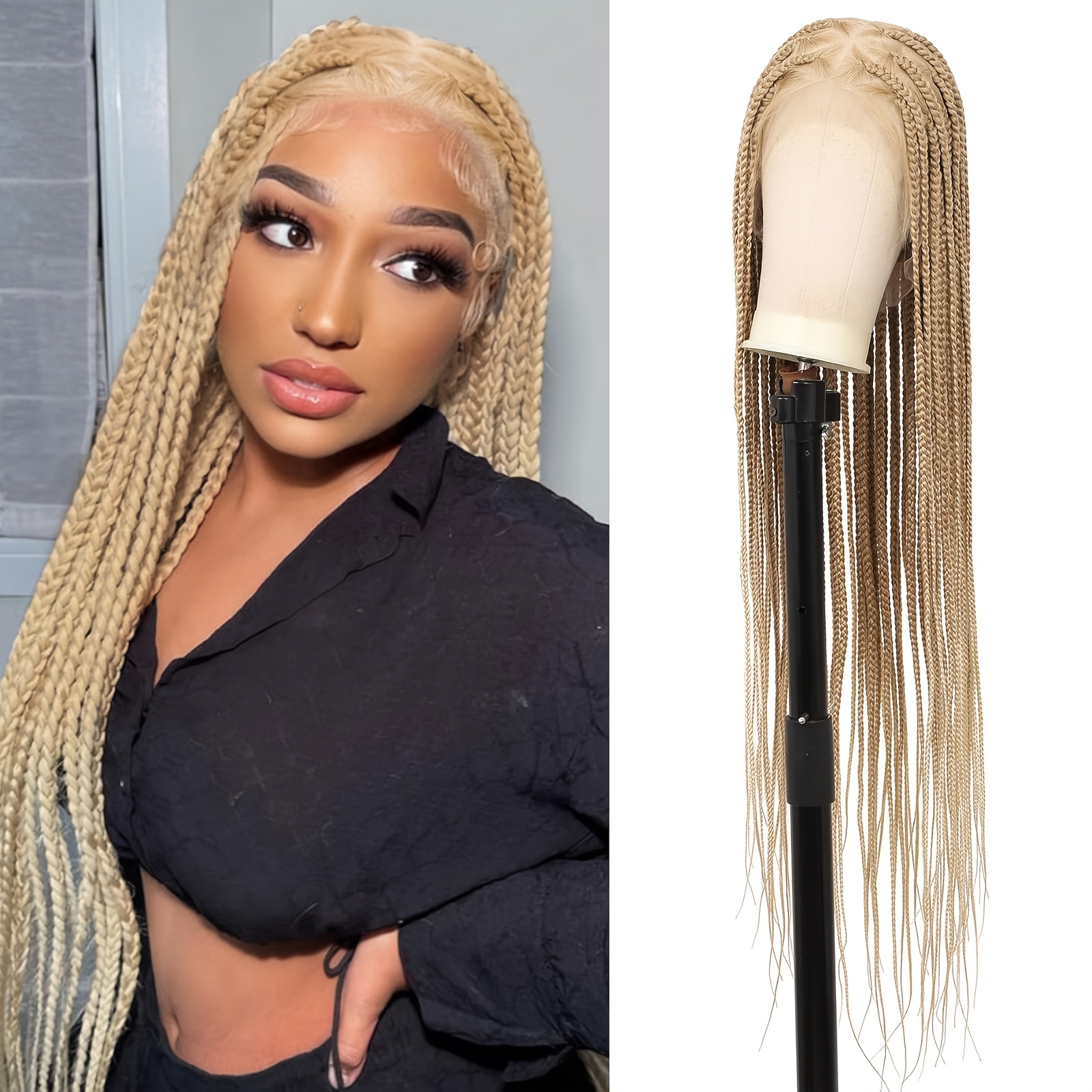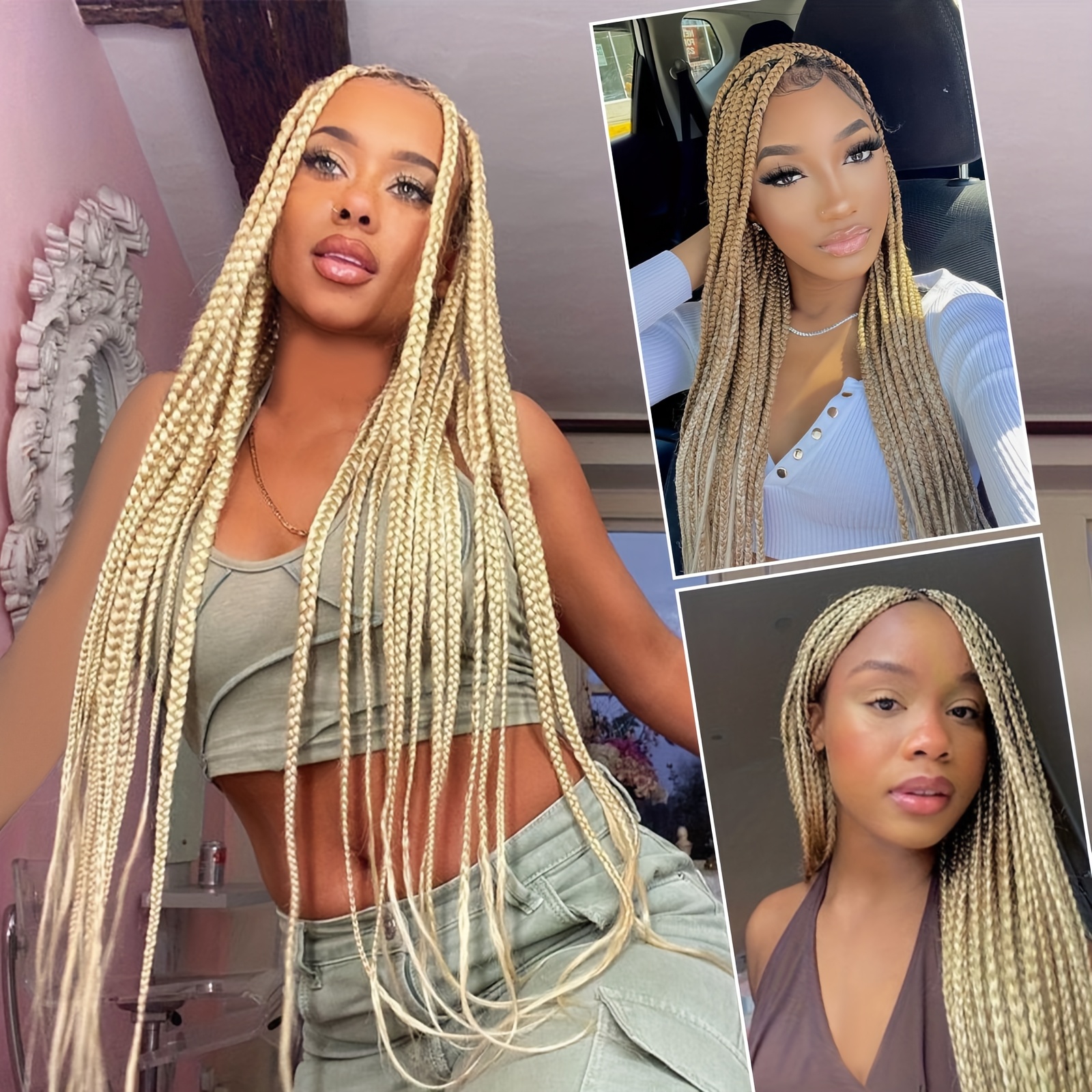 360°HD Full Lace Square Knotless Braided Wigs For Women 36 Inch Box Braid Wig With Baby Hair Blended Braided Lace Front Wig Honey Blonde With Light Blonde Ends Hand Braid Wigs