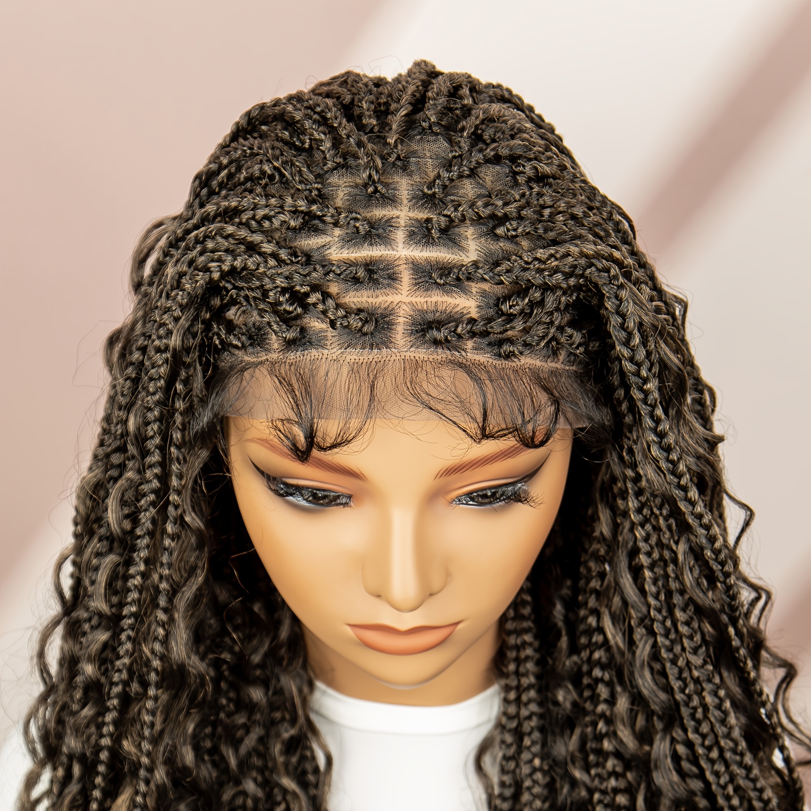 9 * 6 Front Lace Synthetic Fine Braid Braided Butterfly Flower Braid Wig Headband For Daily Wear, Breathable, Comfortable And Fashionable