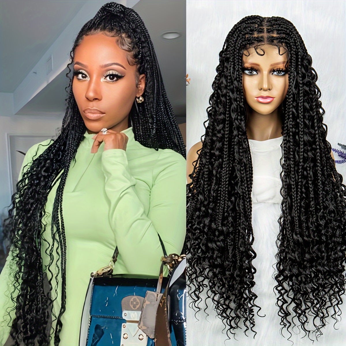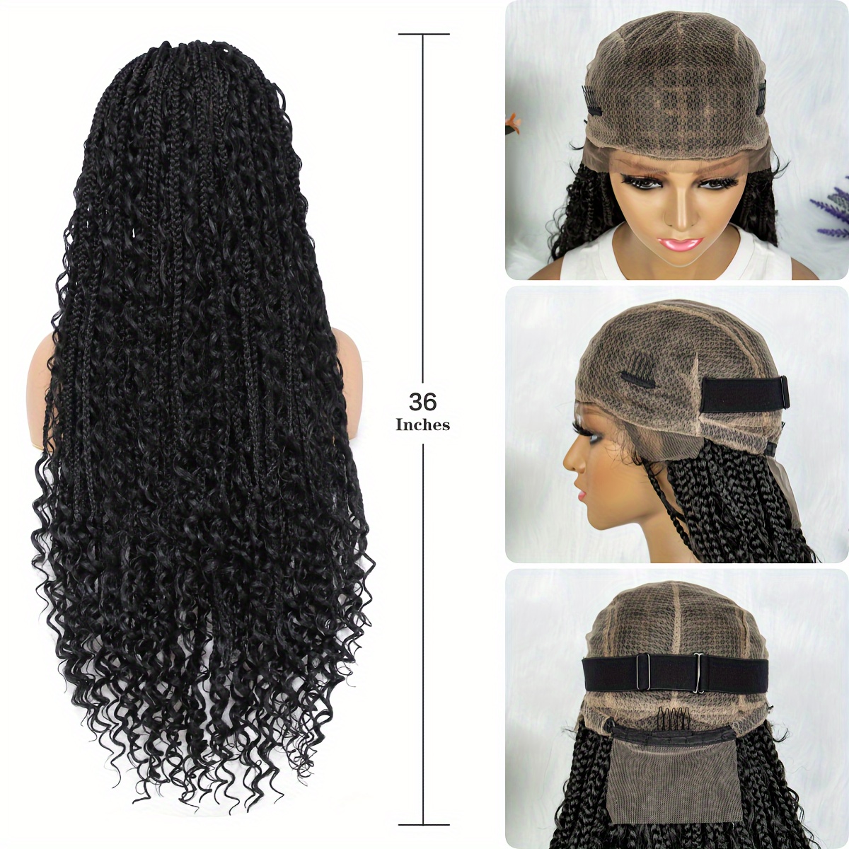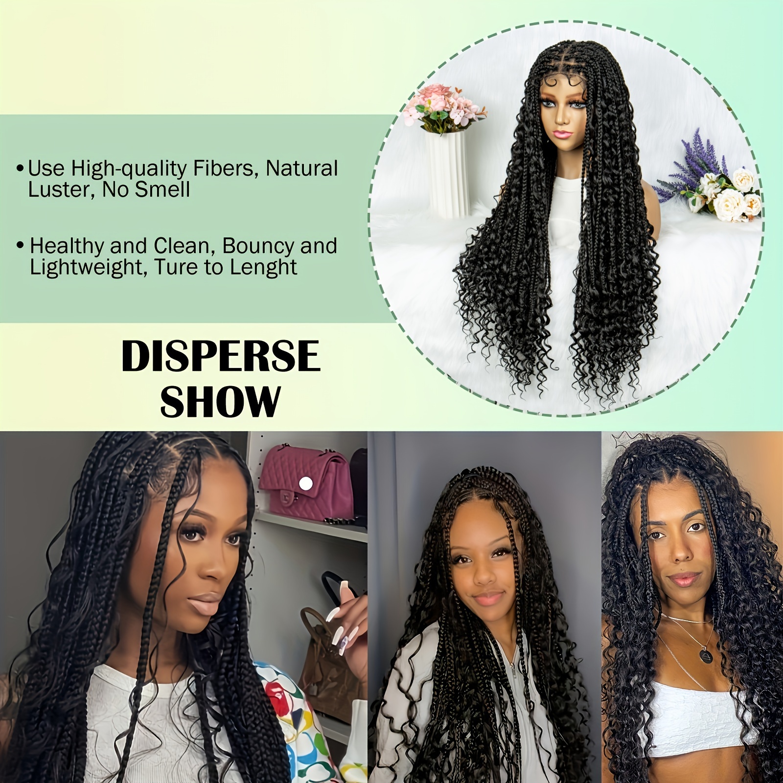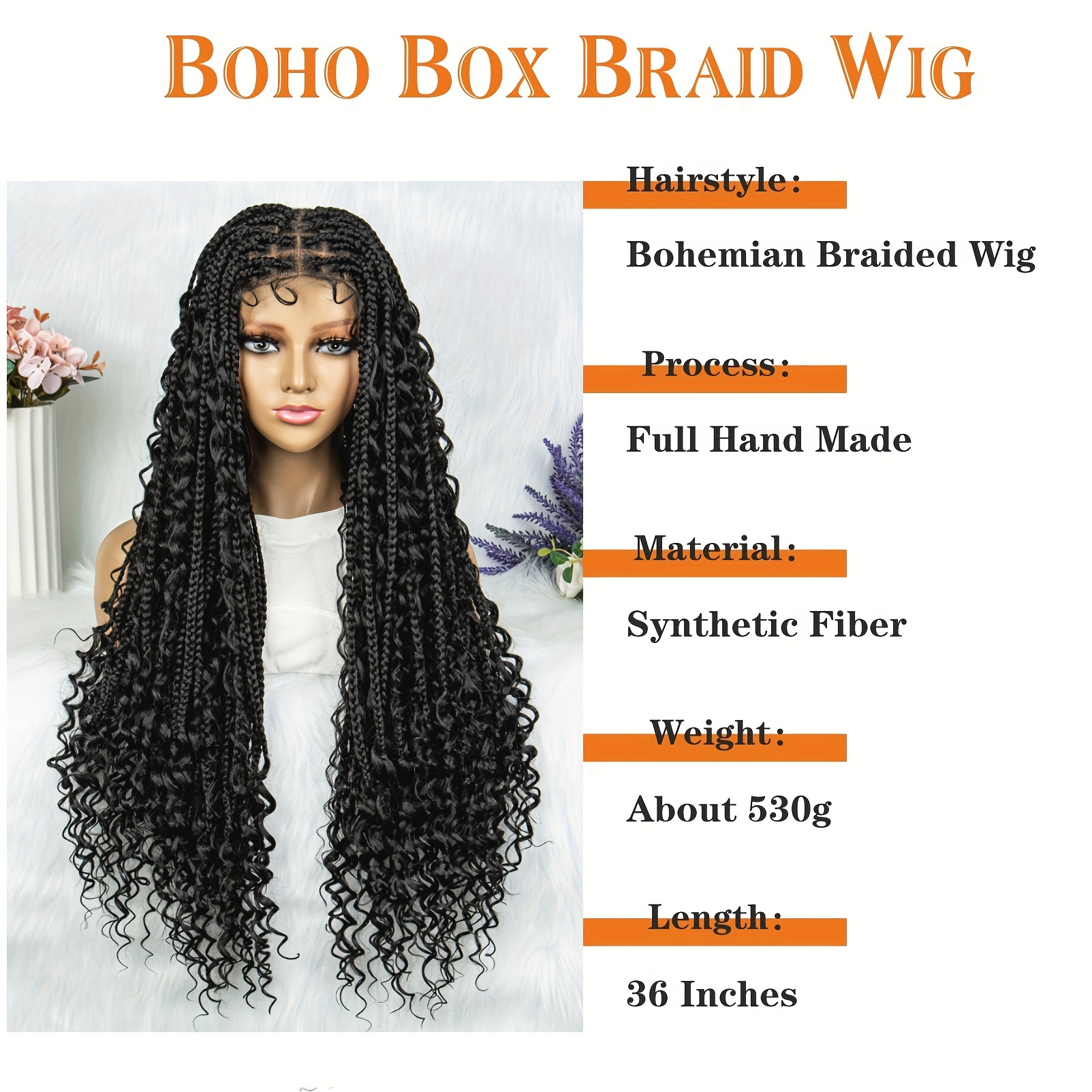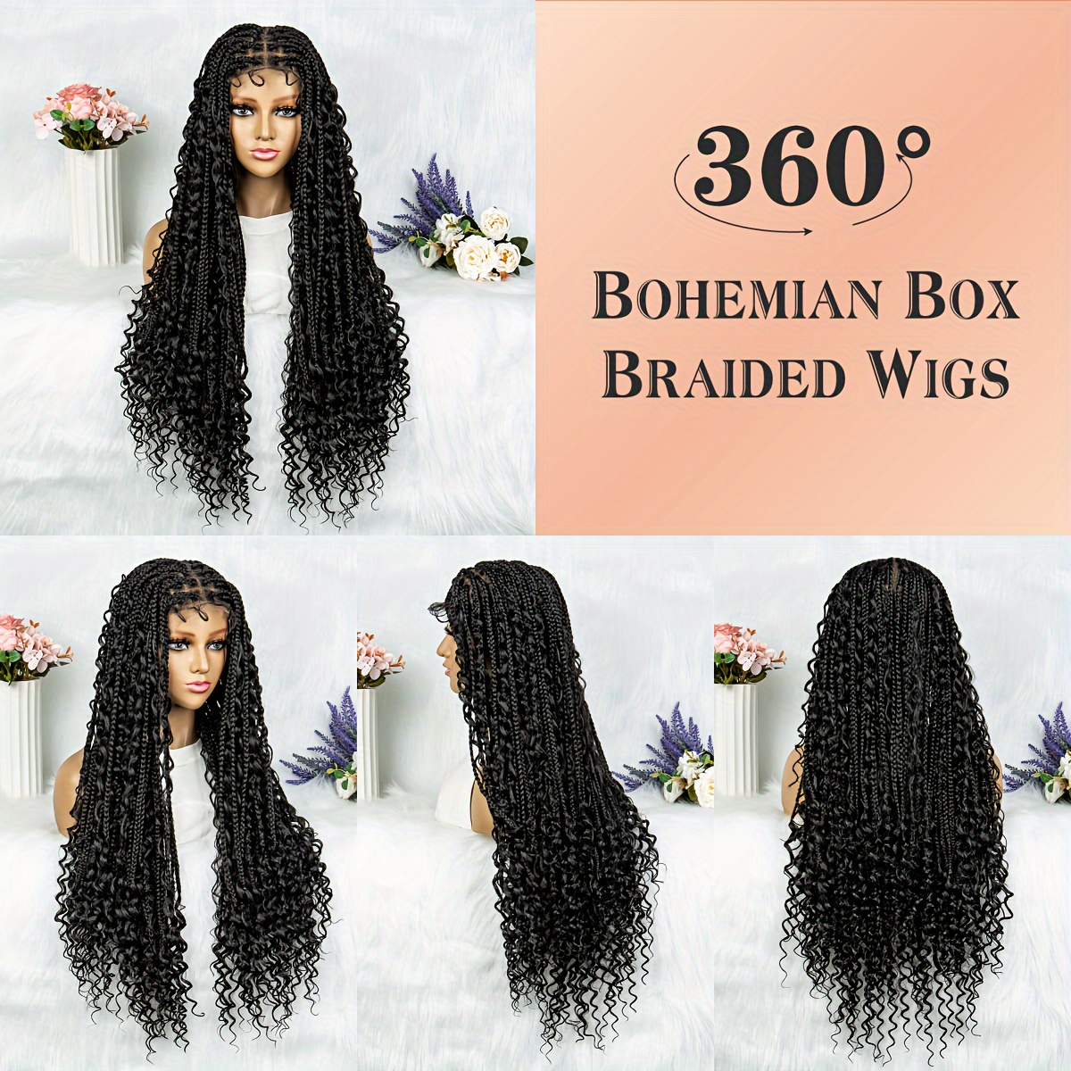 Boho Knotless Braided Wigs for & Men - Double Full Lace Synthetic Hair with Hair, 200% Density Curly Wave, Heat Resistant & Breathable, Unisex Bohemian Box Braids for Everyday & Special Occasions