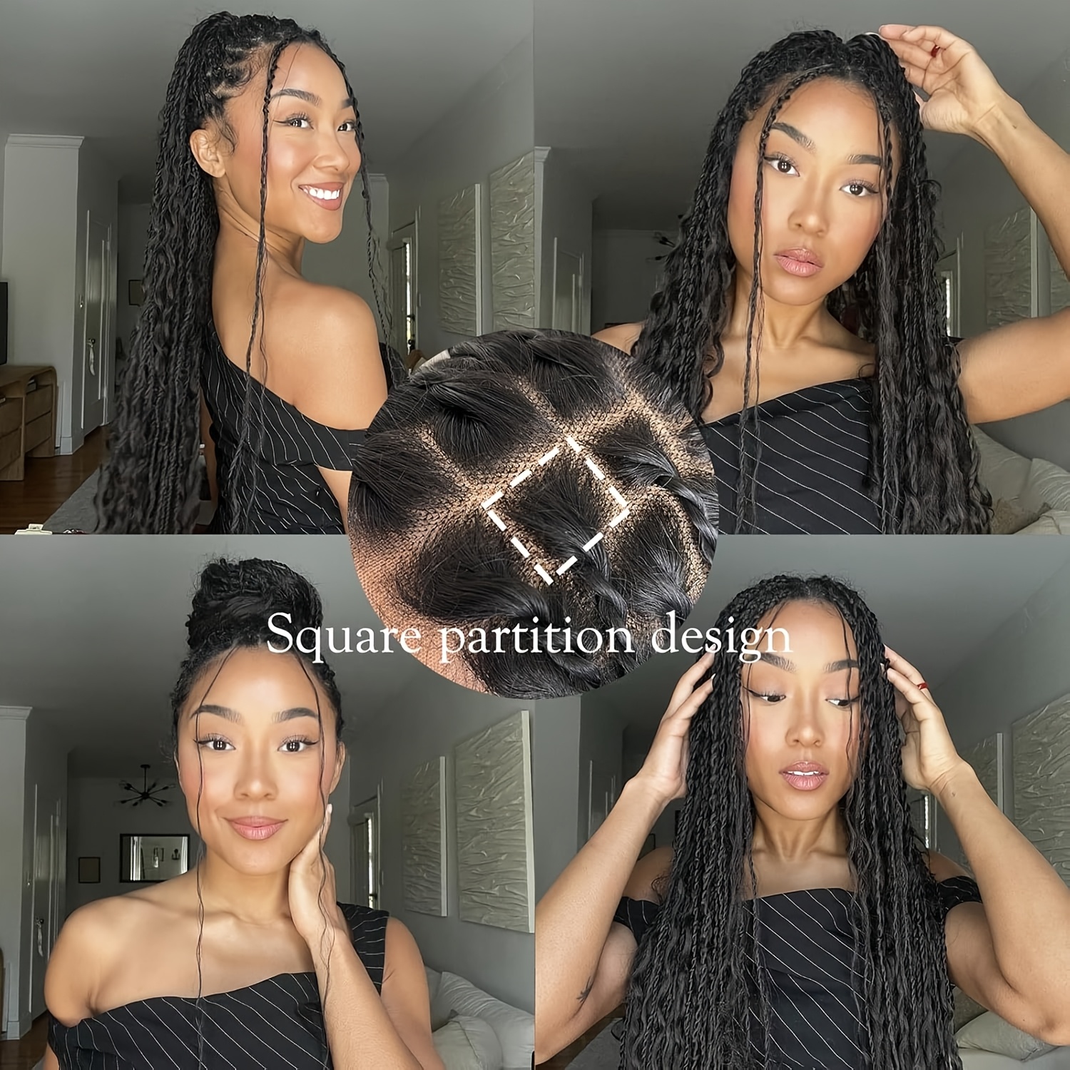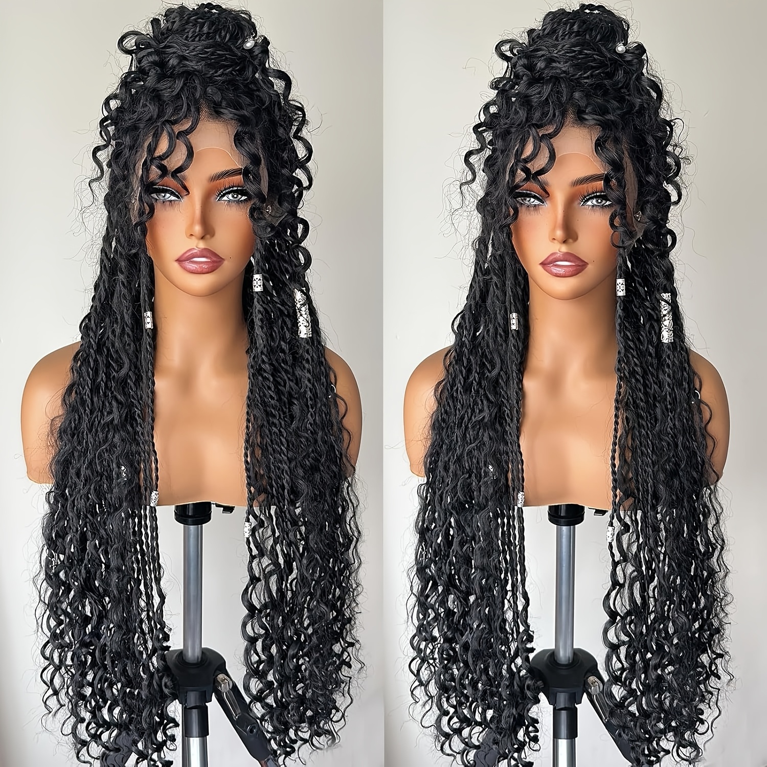 Full Lace Original Braids Wigs, Non-Grafted Knotless Box Braided Wig with Boho Curls Handmade Braids Detachable, Reused, Real like Born Braids Black Wig for Black Women Bohemian Braids 30 Inch