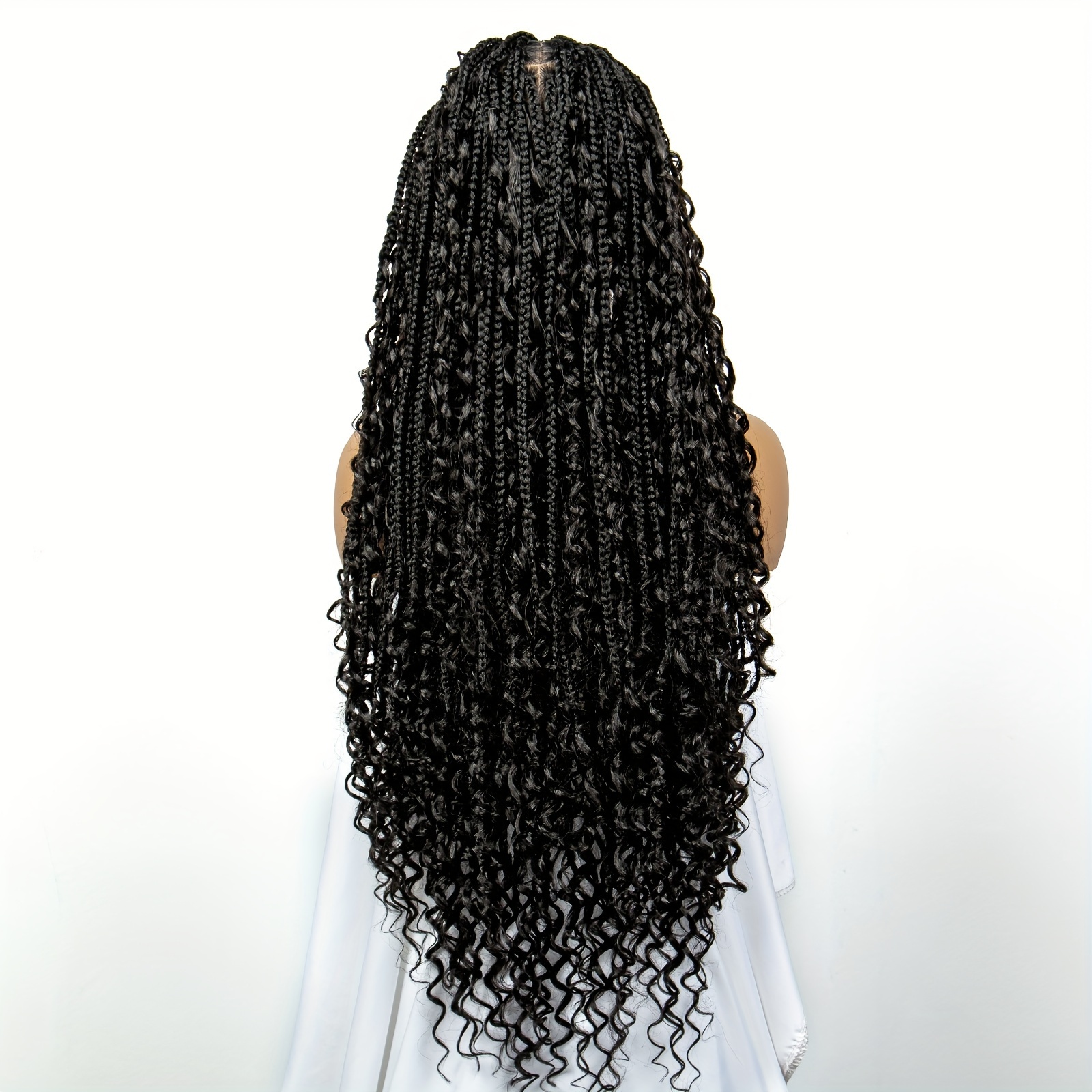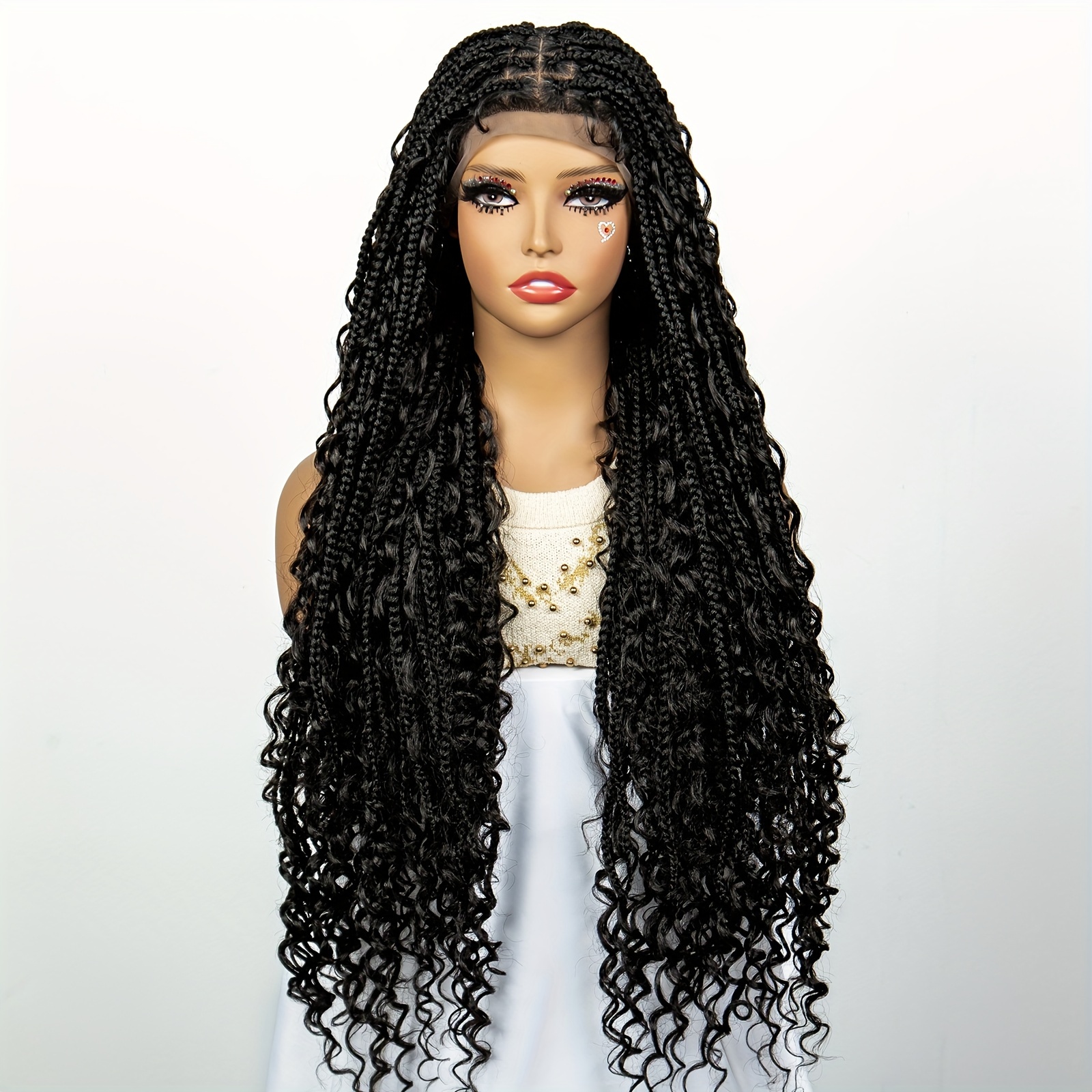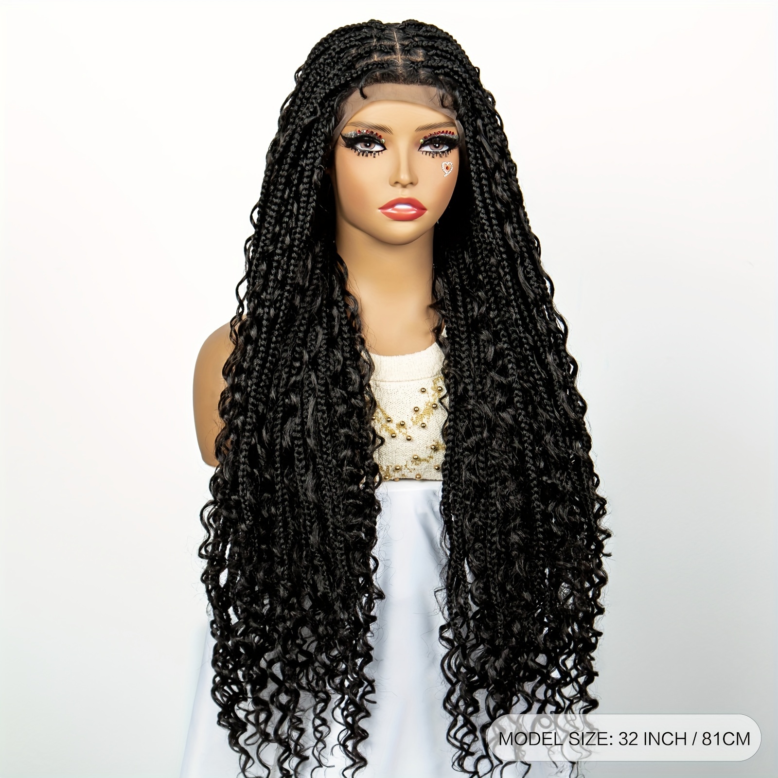 Full Lace Women's Bohemian Knotless Braided Full Lace Wig, Long Goddess Braided Wig, Curly Synthetic Braids With Baby Hair, Synthetic Bohemian Braided Wig