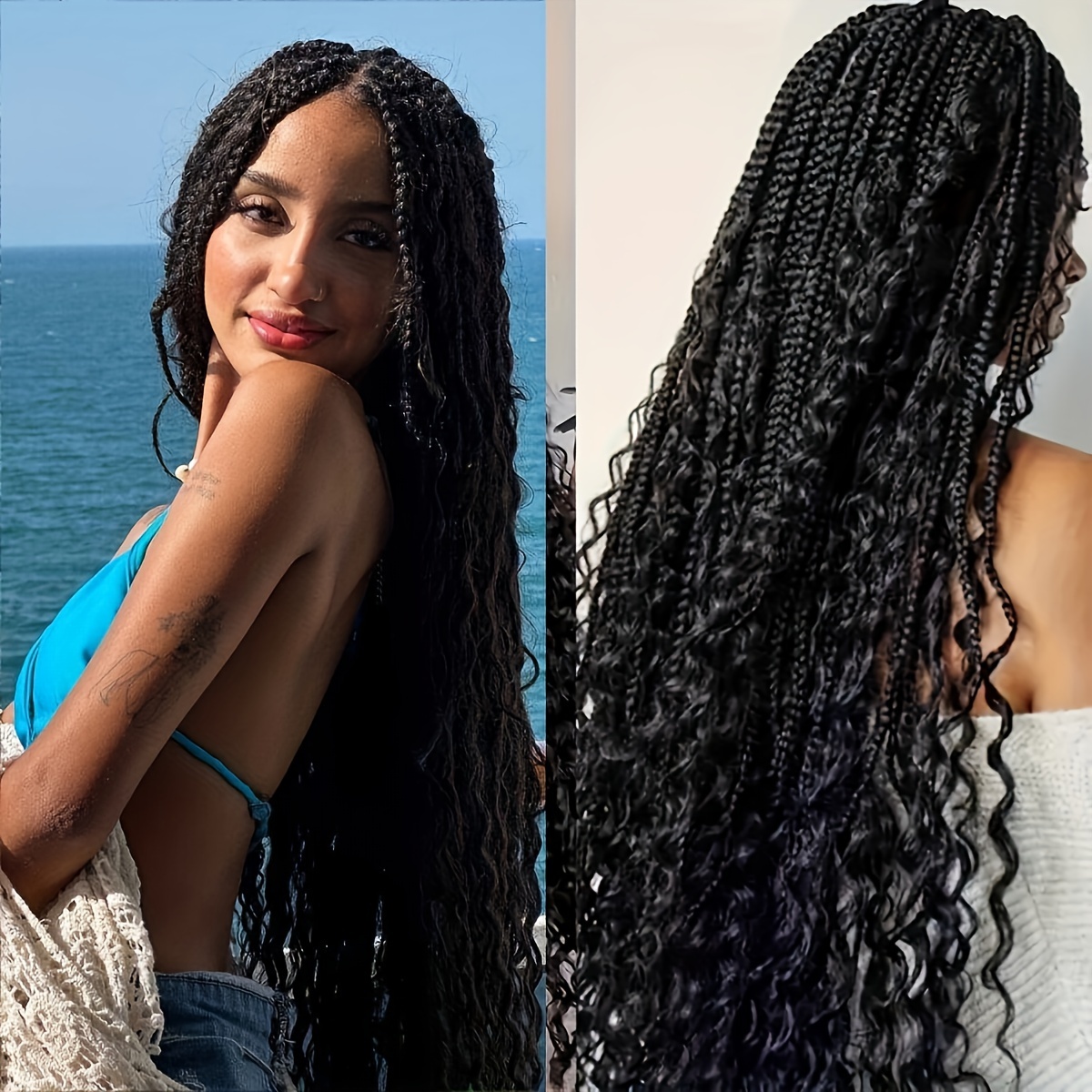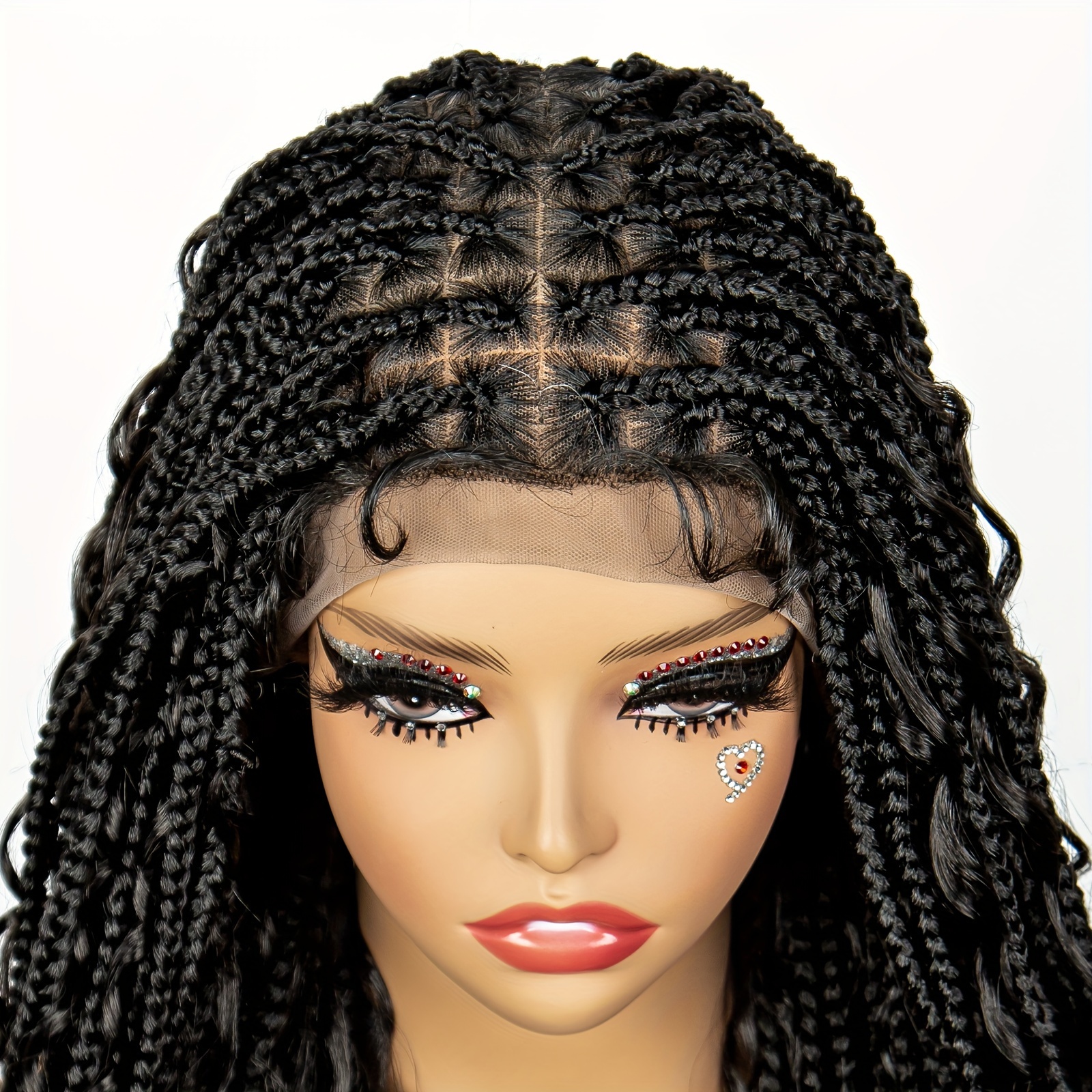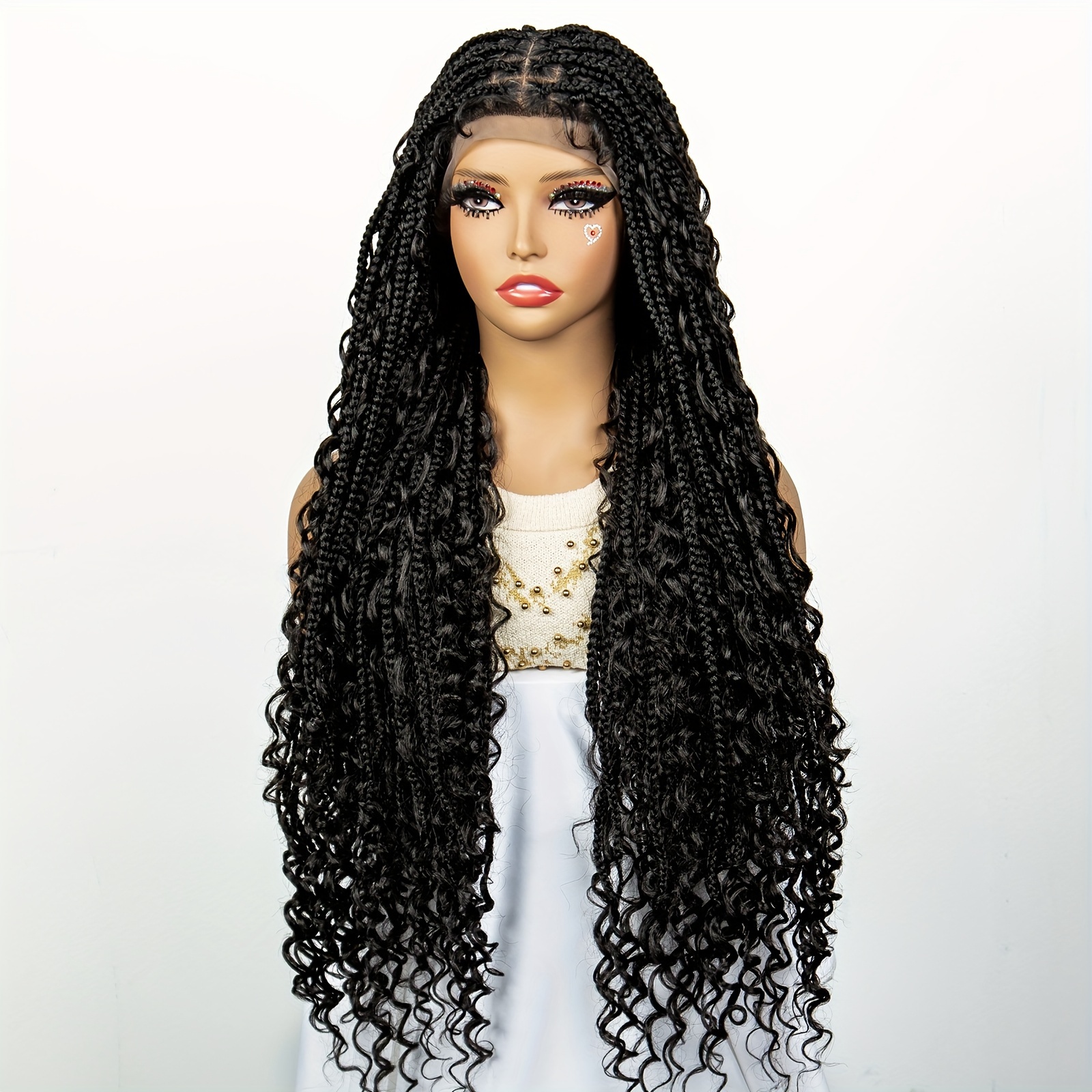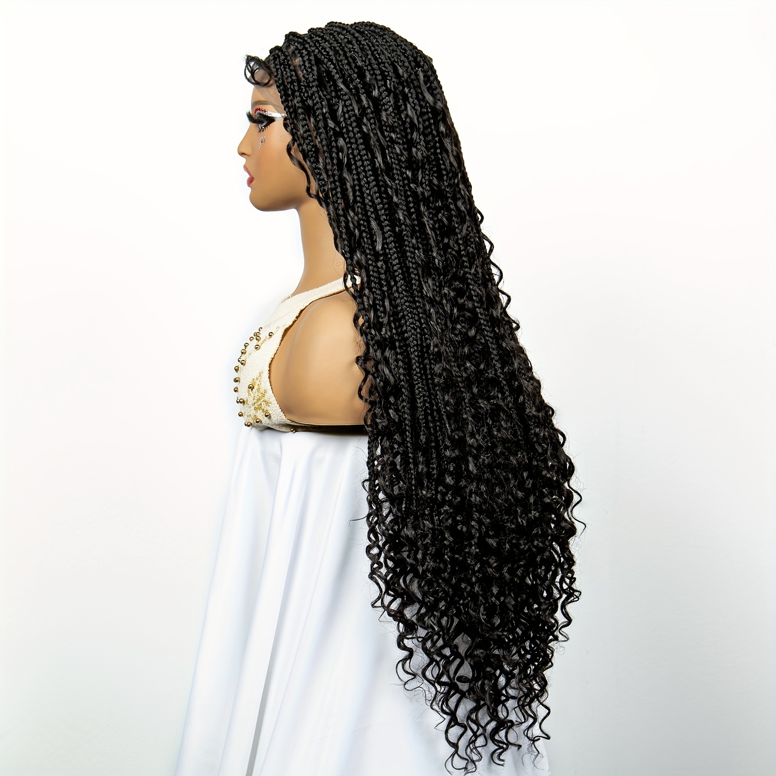 Full Lace Women's Bohemian Knotless Braided Full Lace Wig, Long Goddess Braided Wig, Curly Synthetic Braids With Baby Hair, Synthetic Bohemian Braided Wig